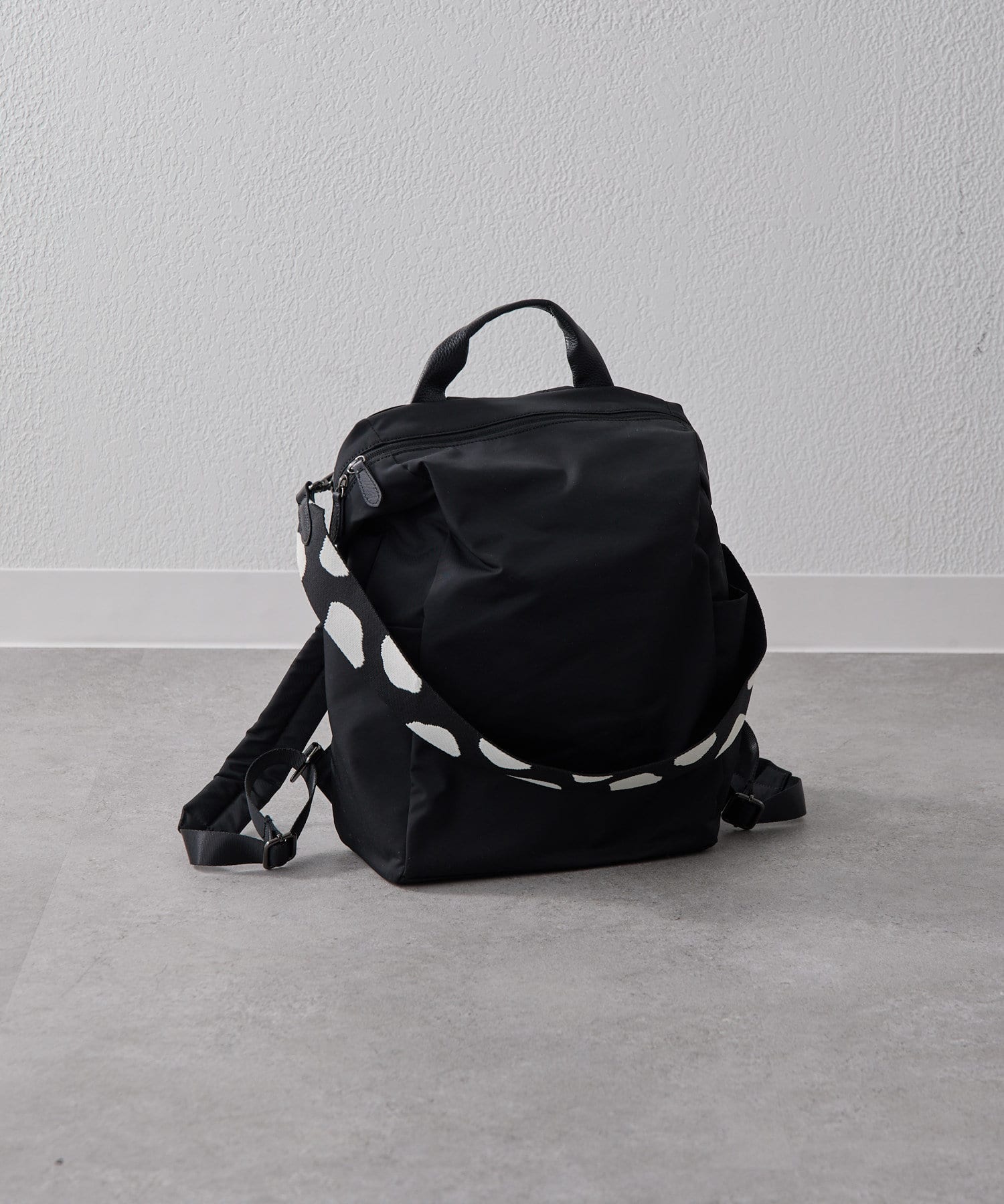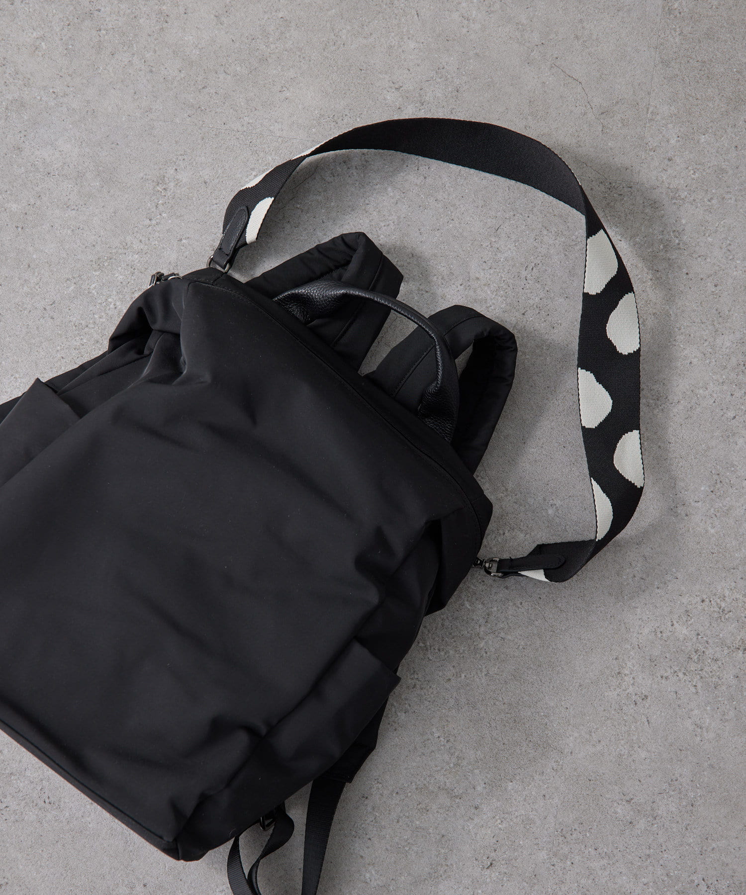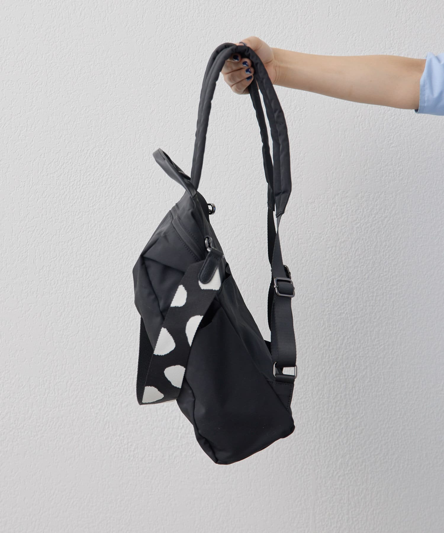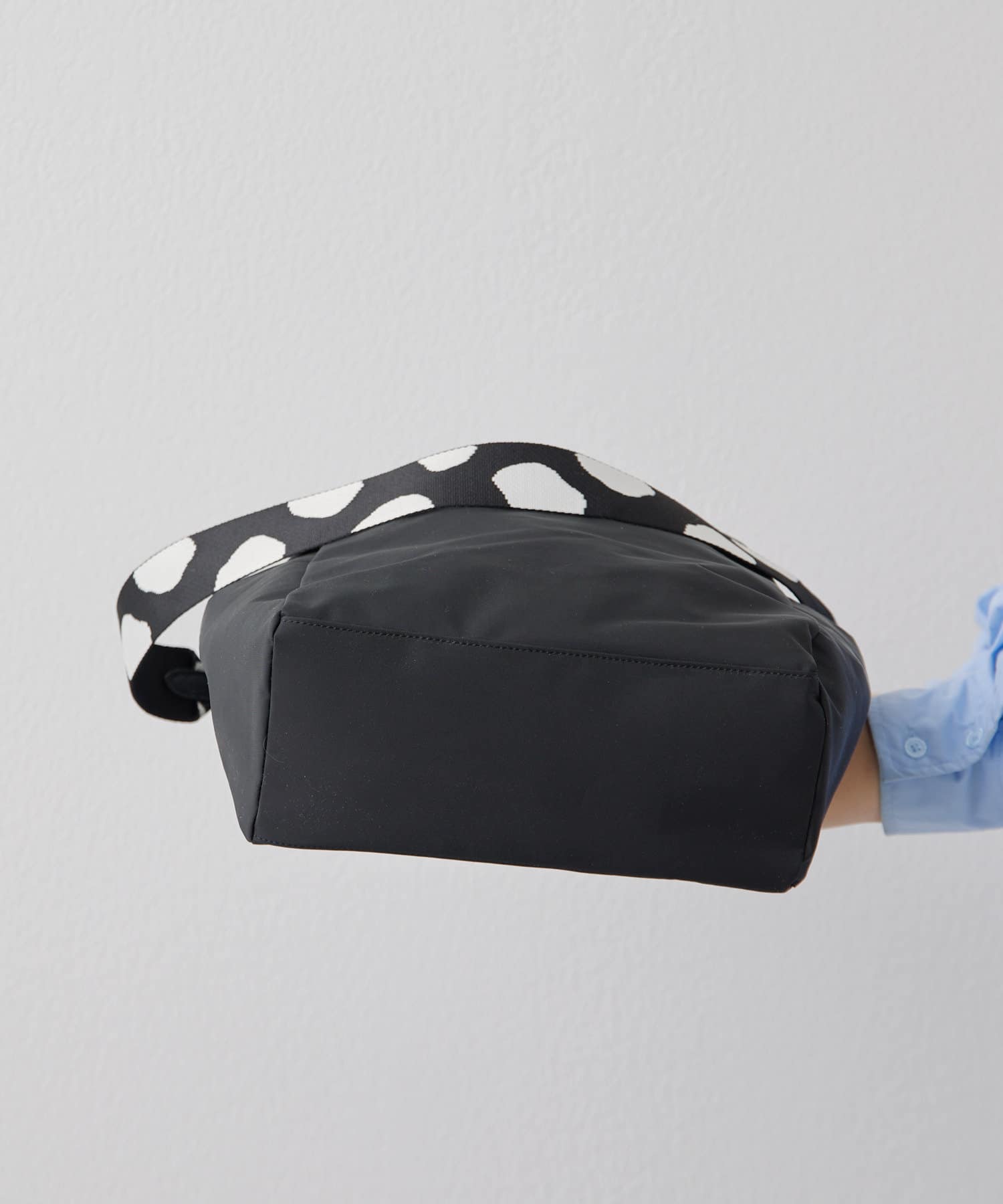 ・ダルメシアン柄のワイドテープショルダーがアクセント