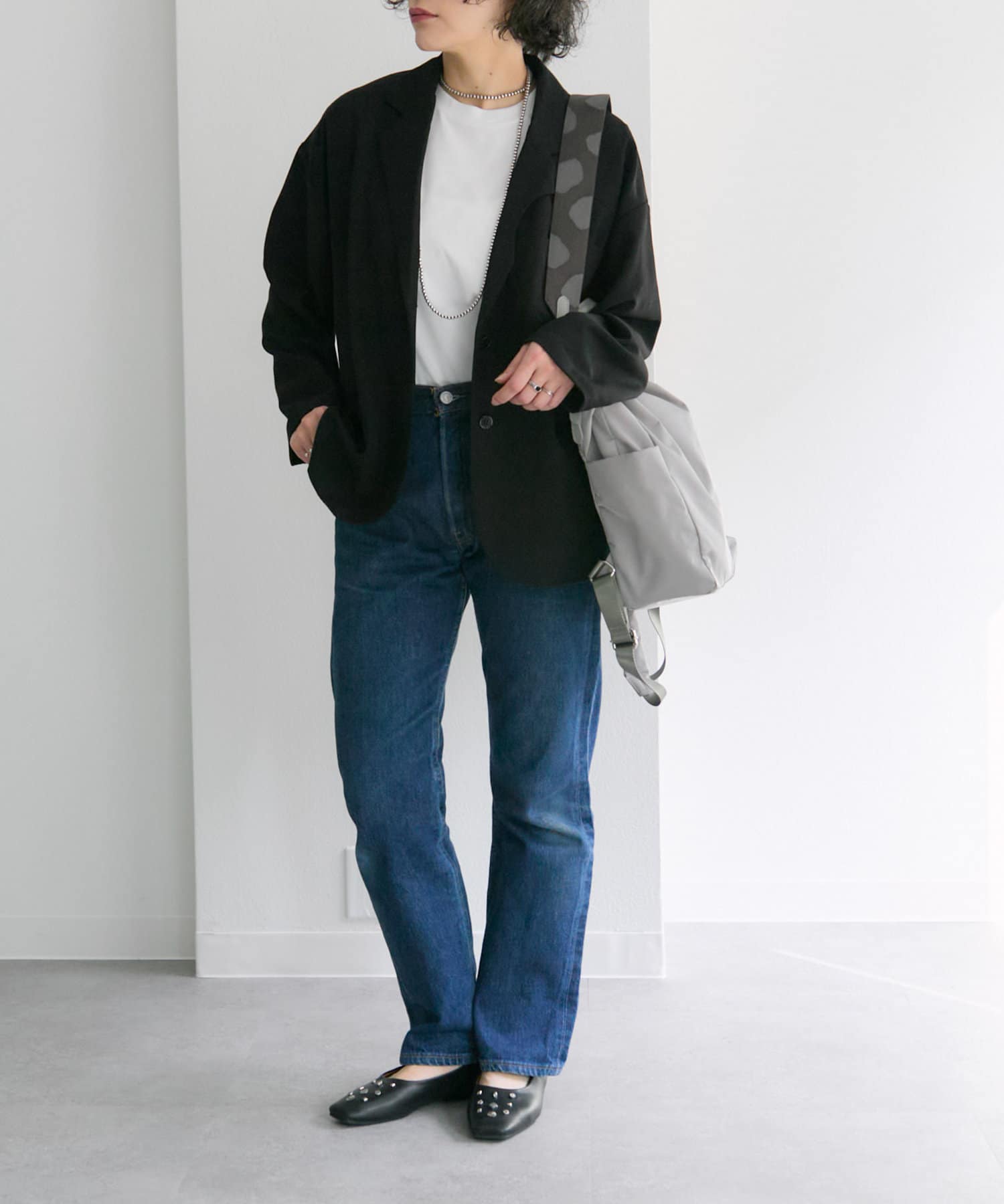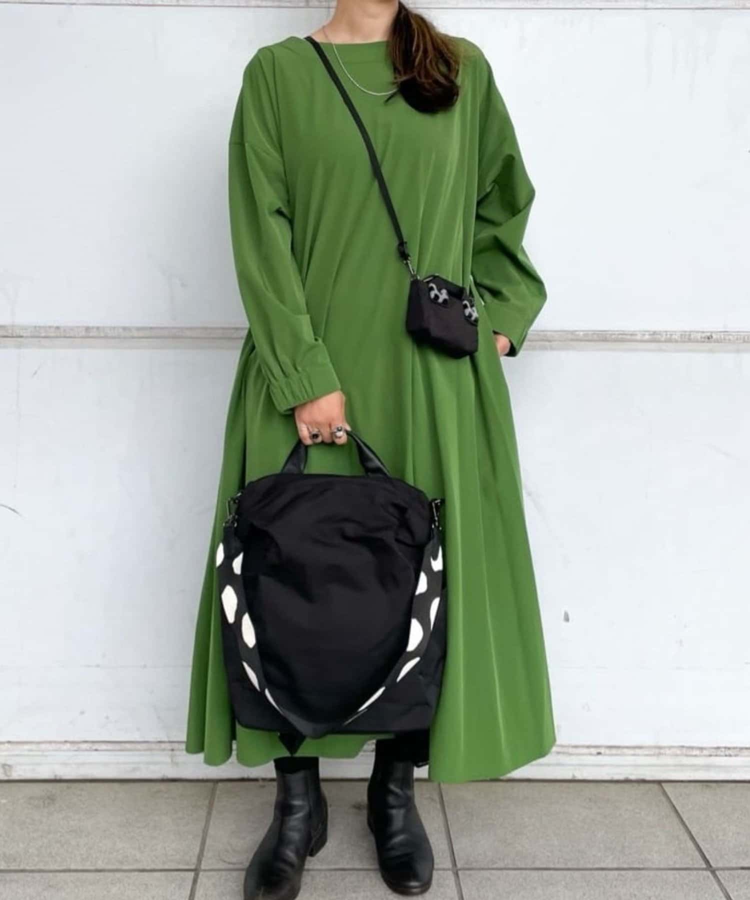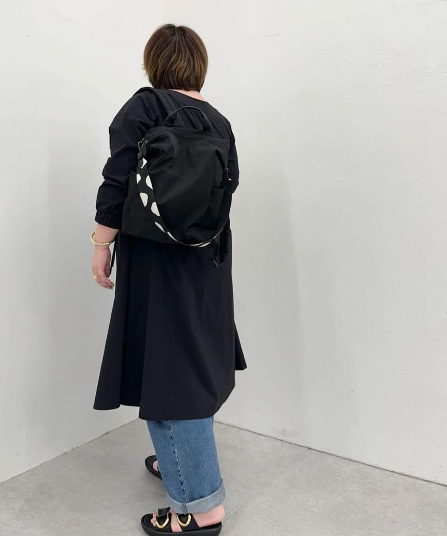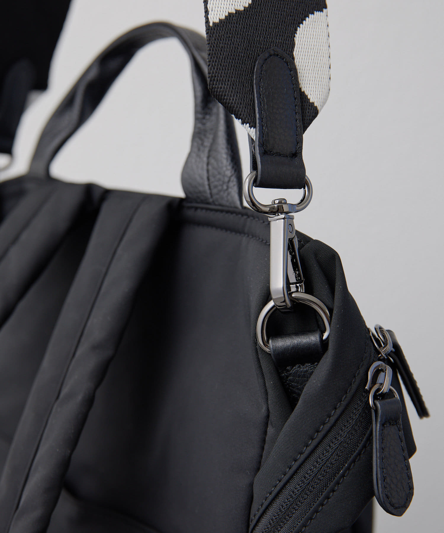 ・ダルメシアン柄のワイドテープショルダーがアクセント
