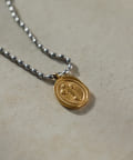 ・十字架模様のコインが印象的な、バイカラーネックレス