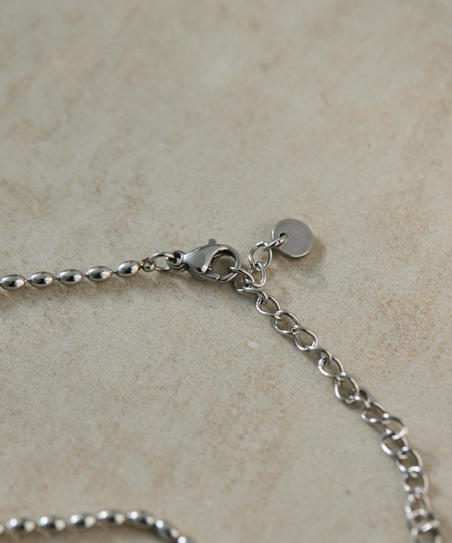 珍しいオーバル型のボールチェーンとの組み合わせも、さりげない個性を演出。