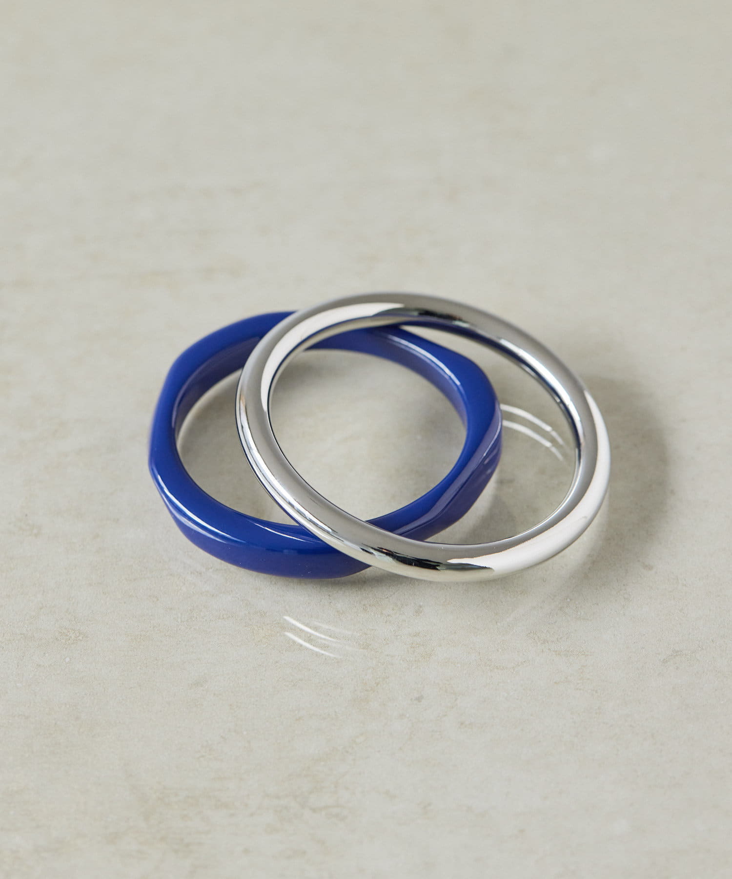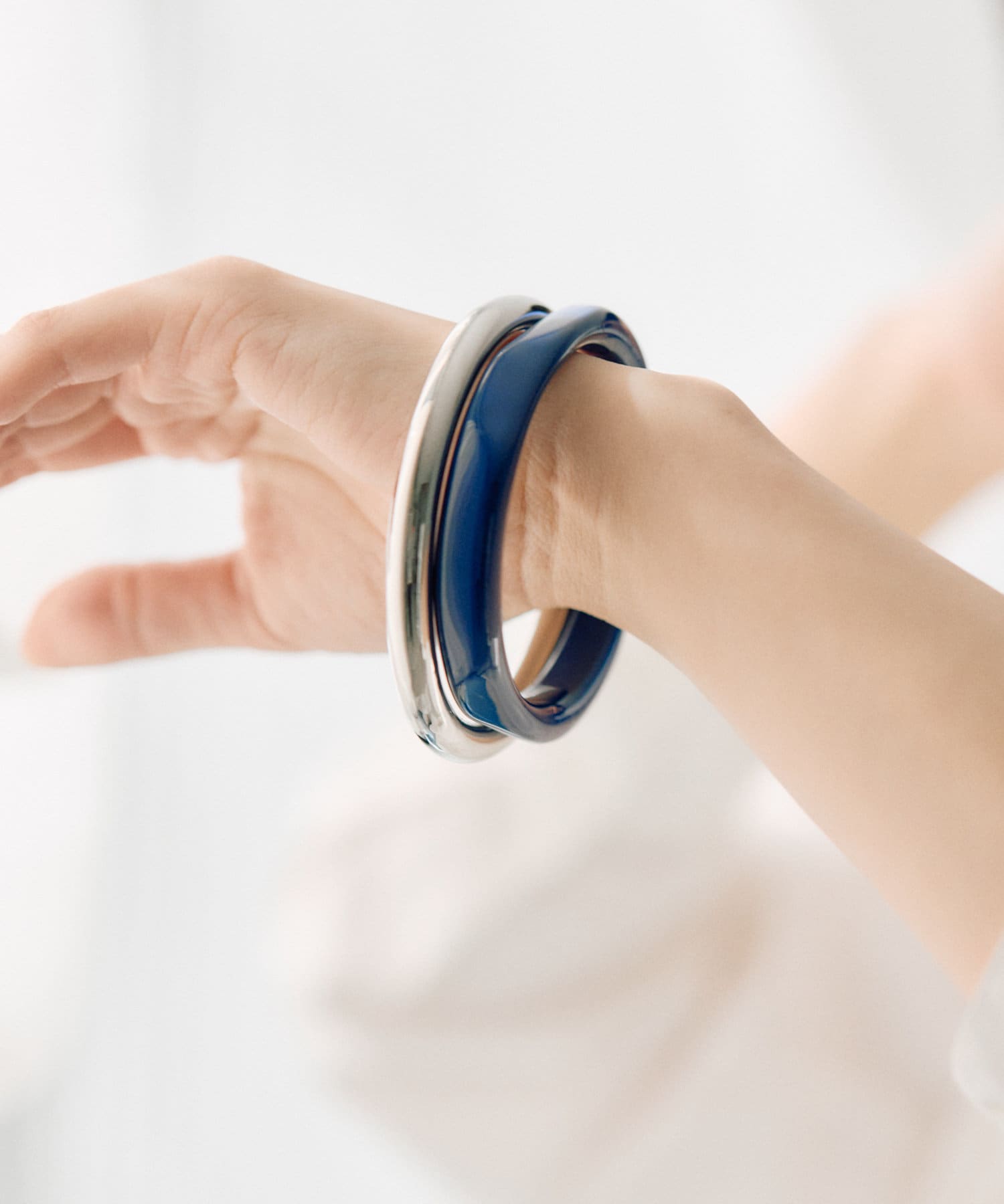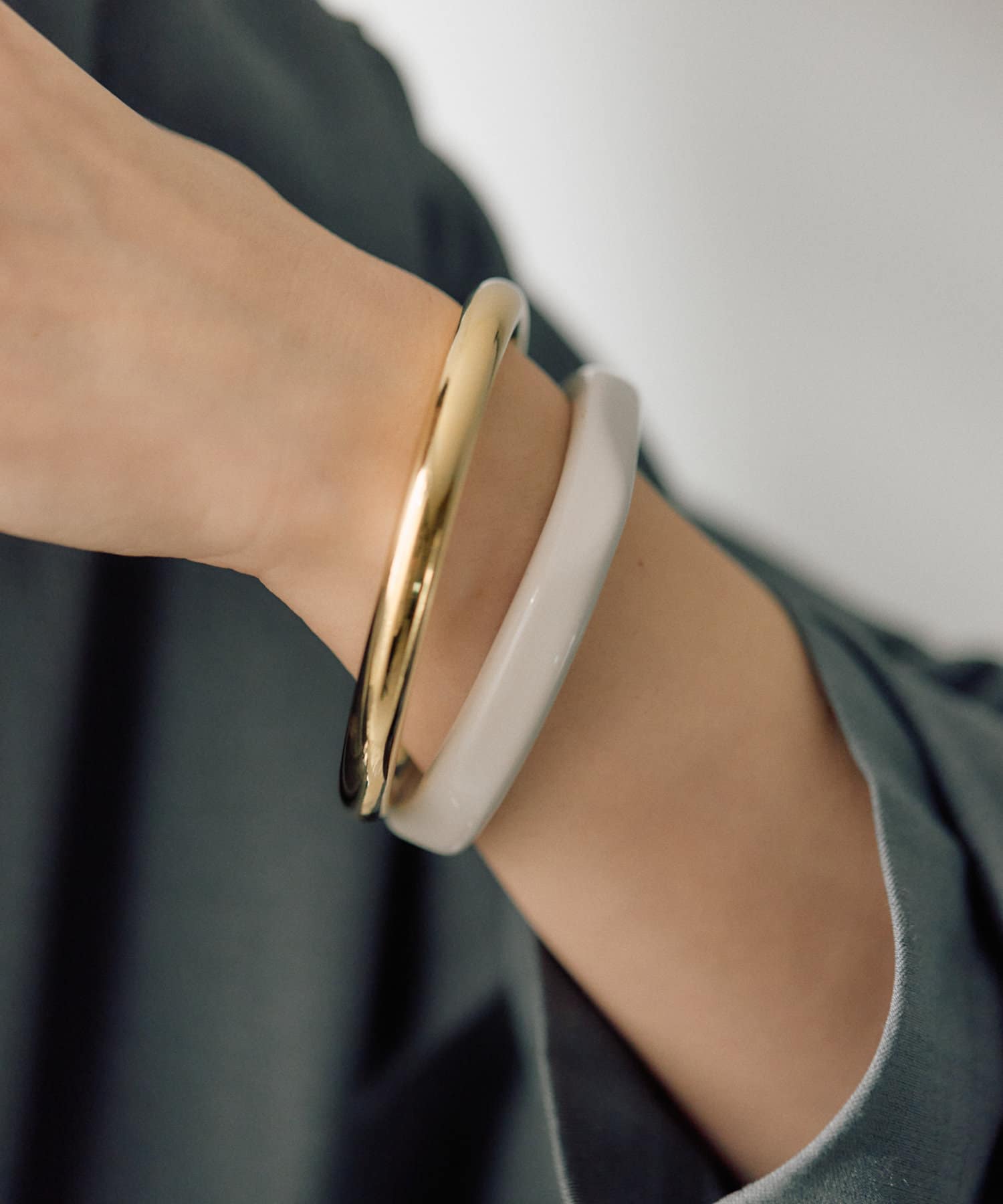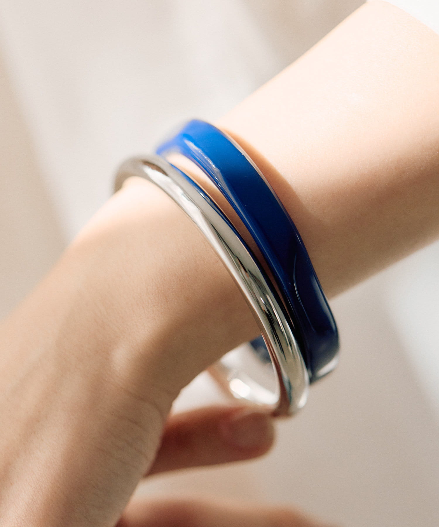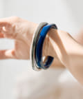 ・カラーリングの美しい樹脂とシンプルなメタルのセットバングル