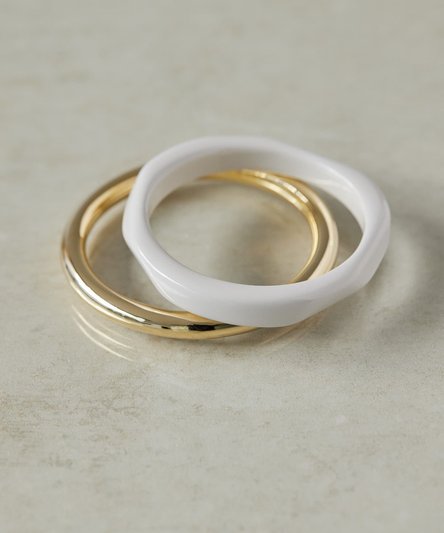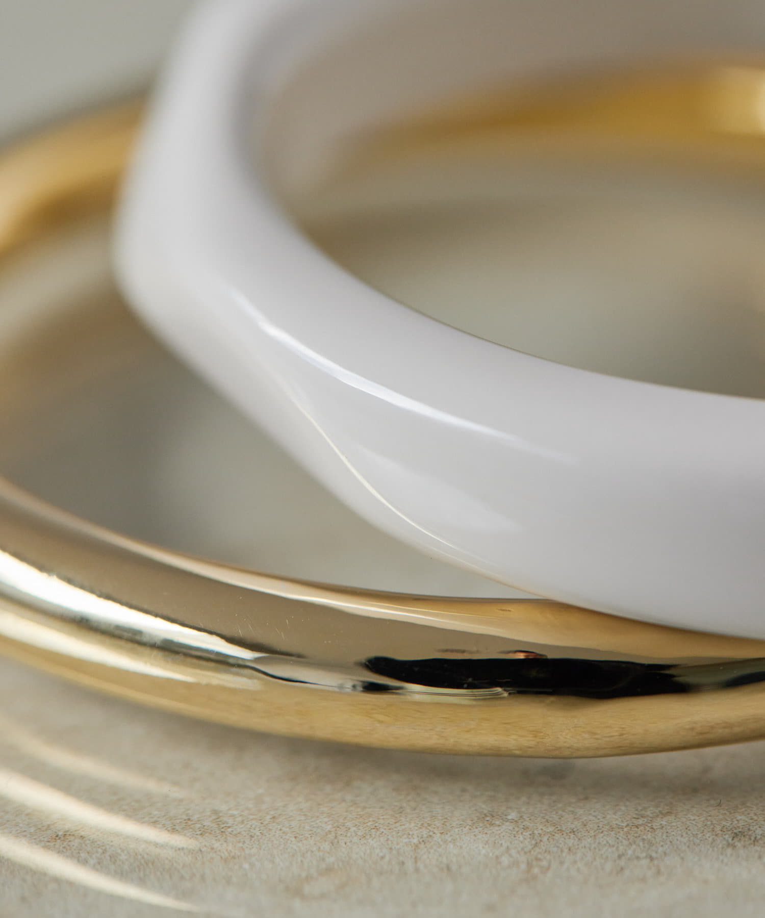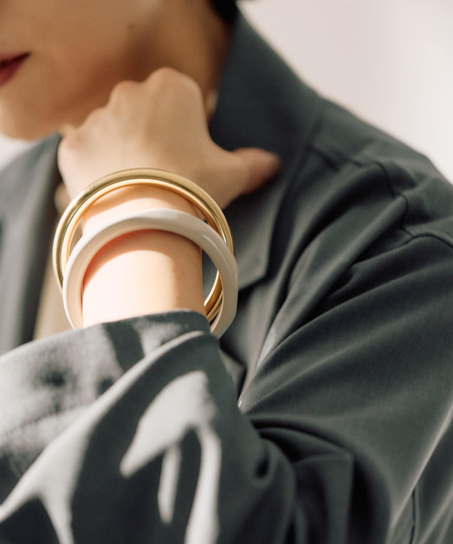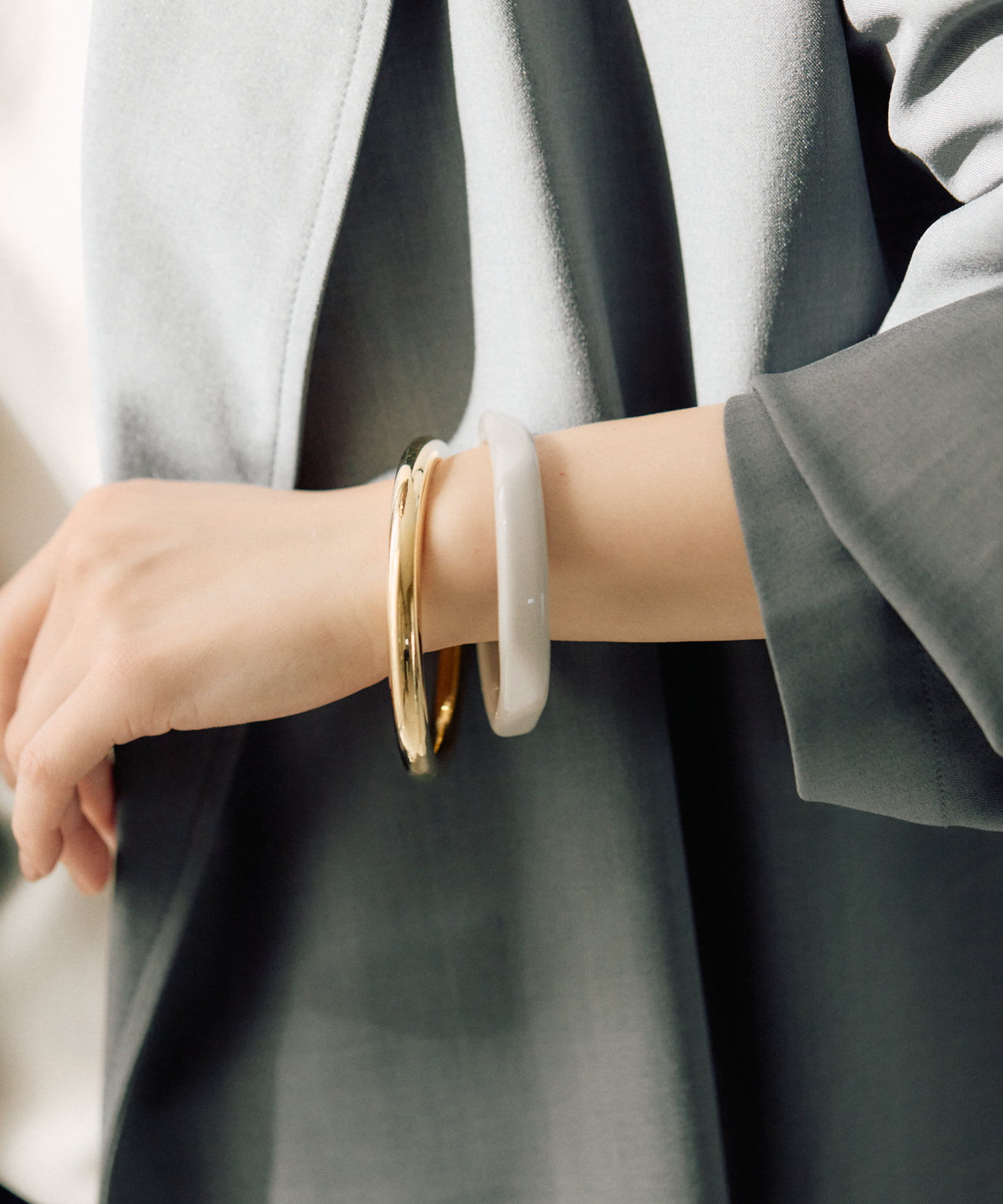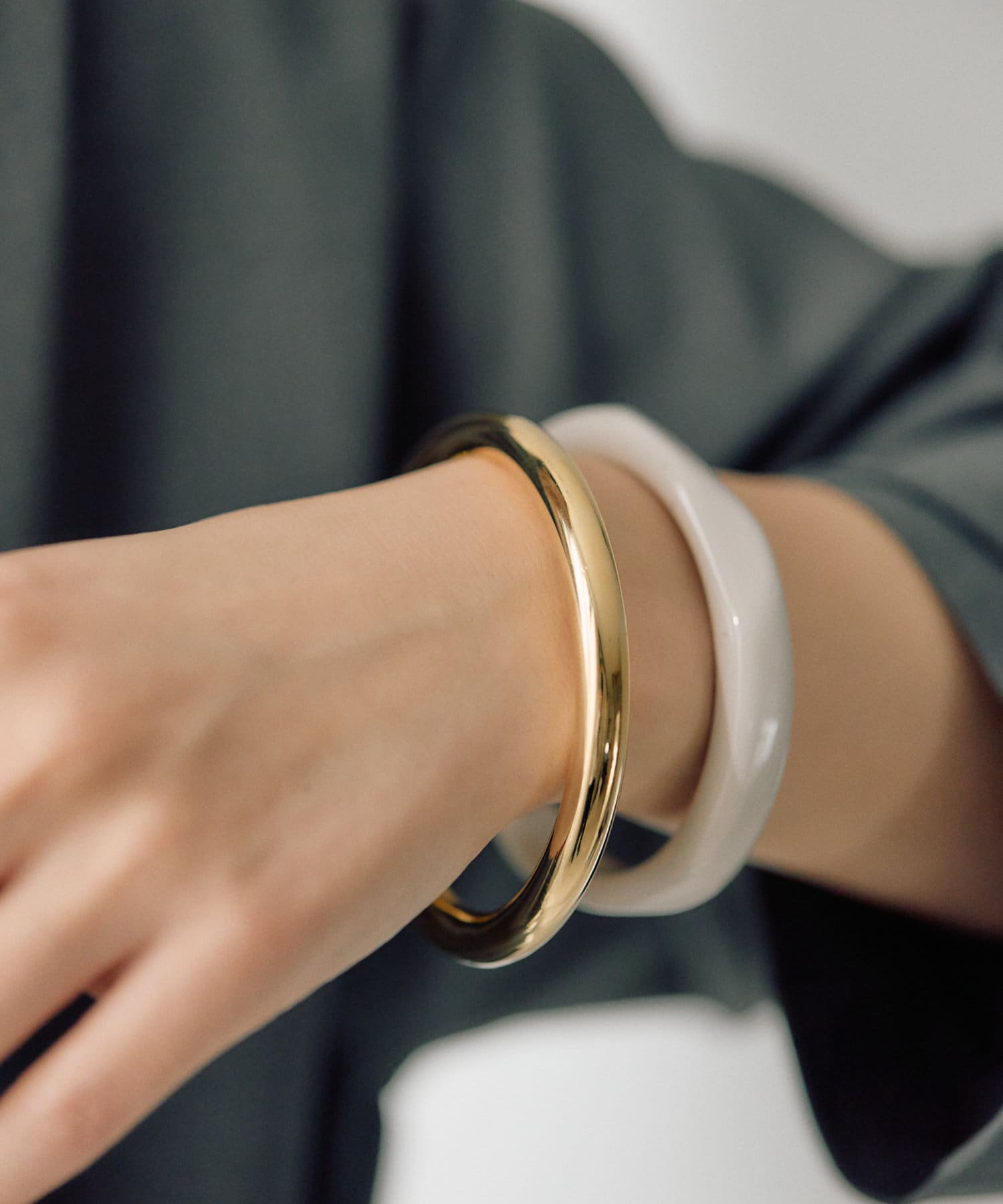・カラーリングの美しい樹脂とシンプルなメタルのセットバングル