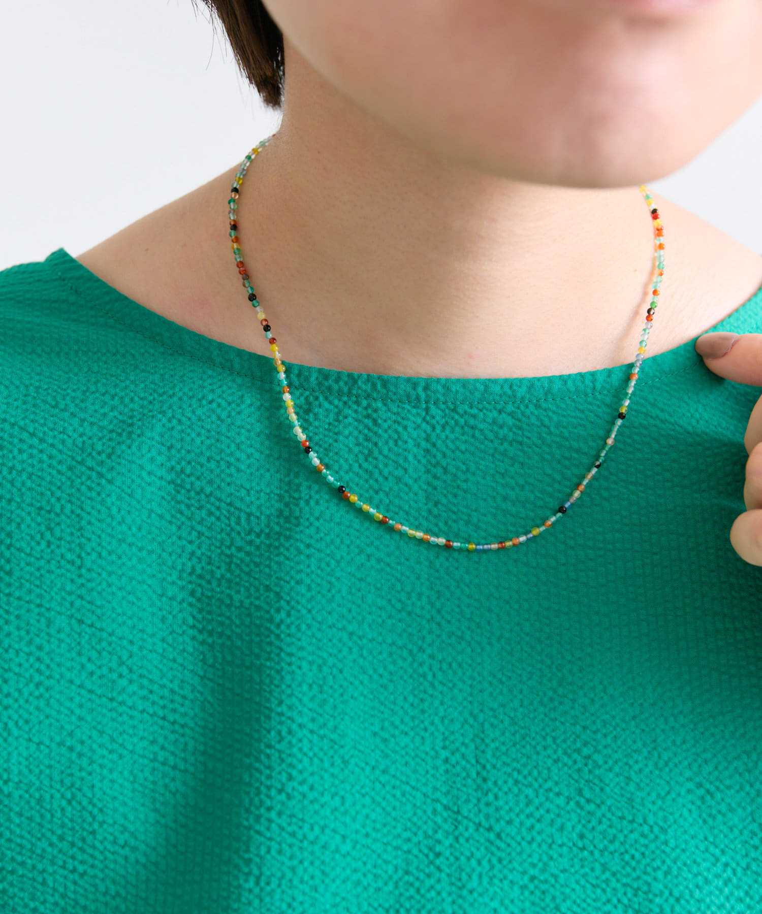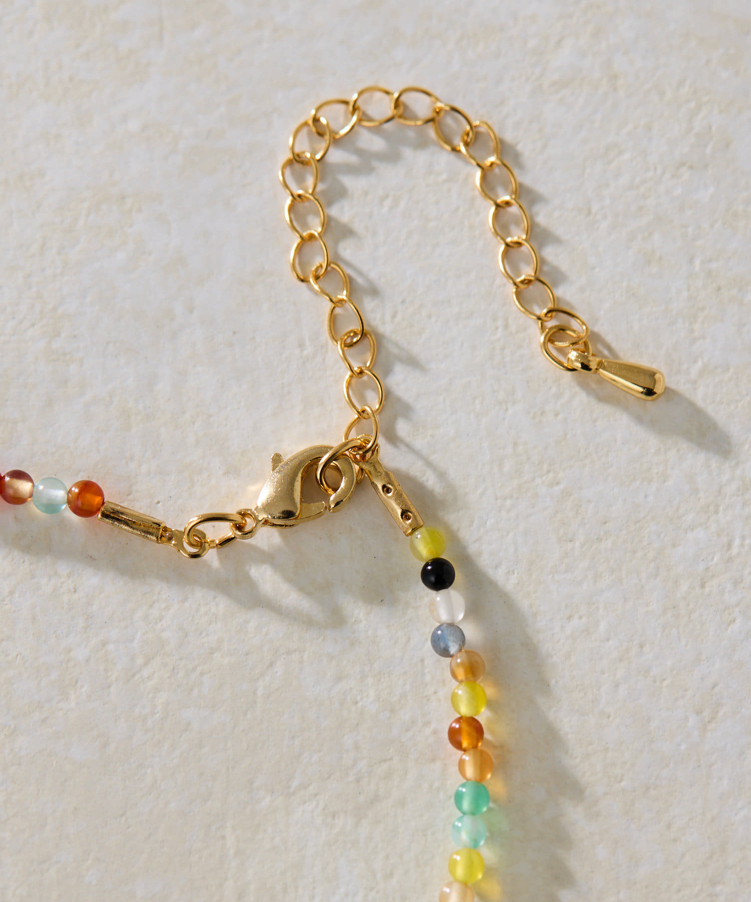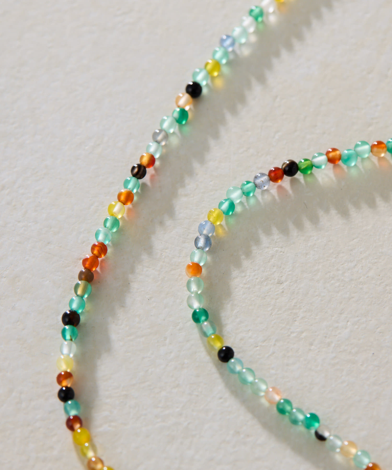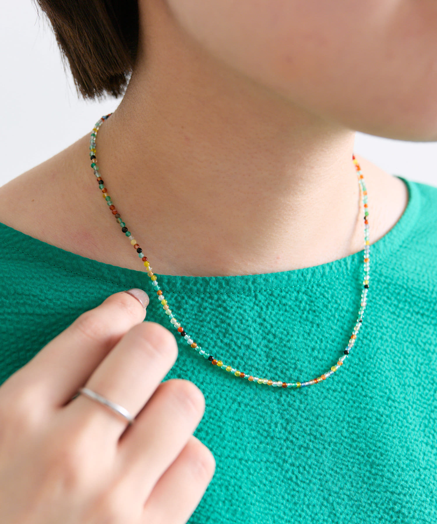 ・マルチカラーの小粒の天然石を通したショートネックレス