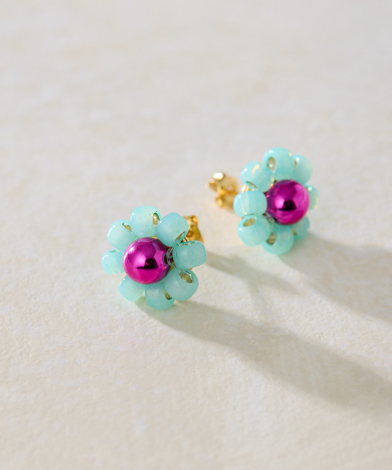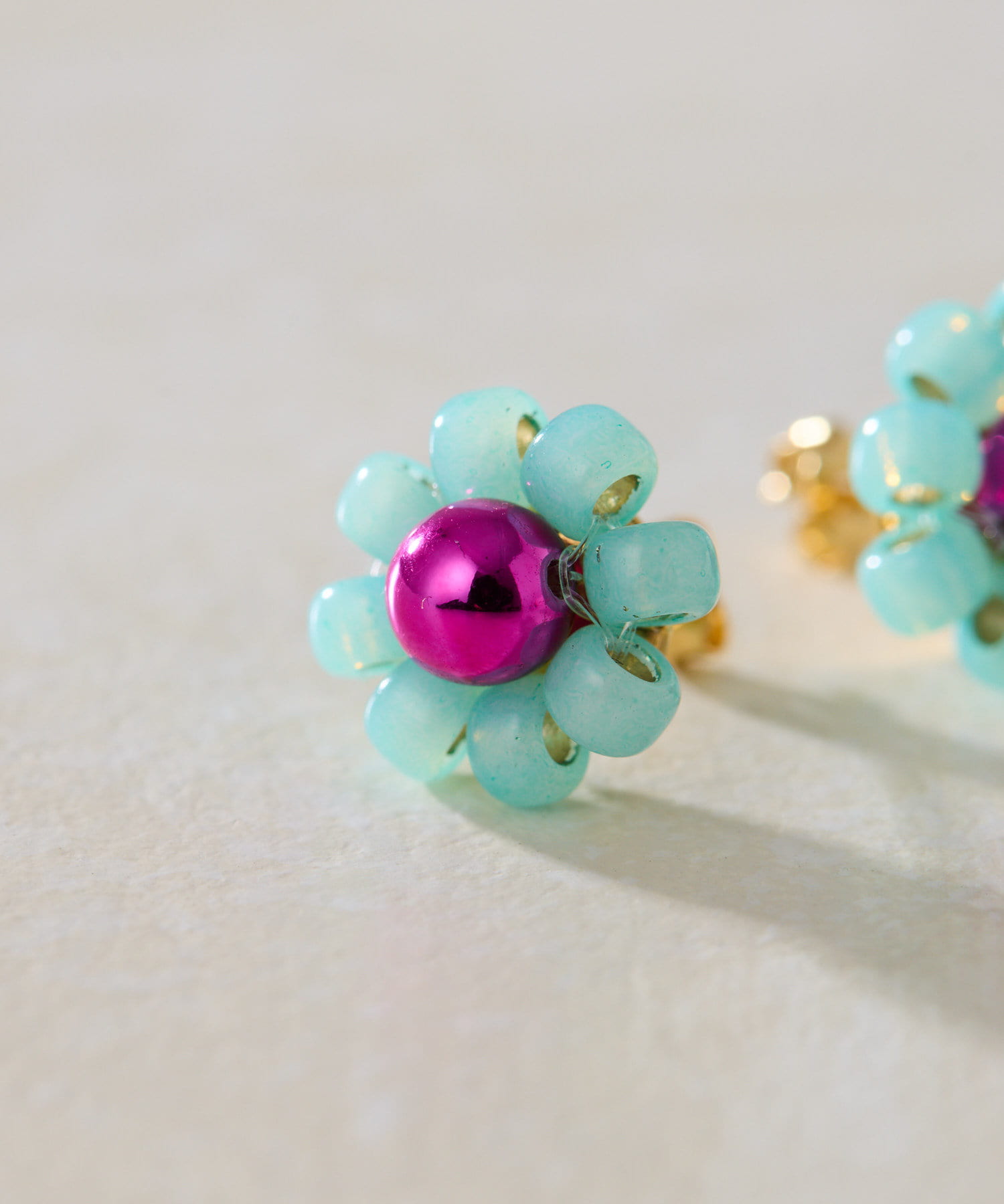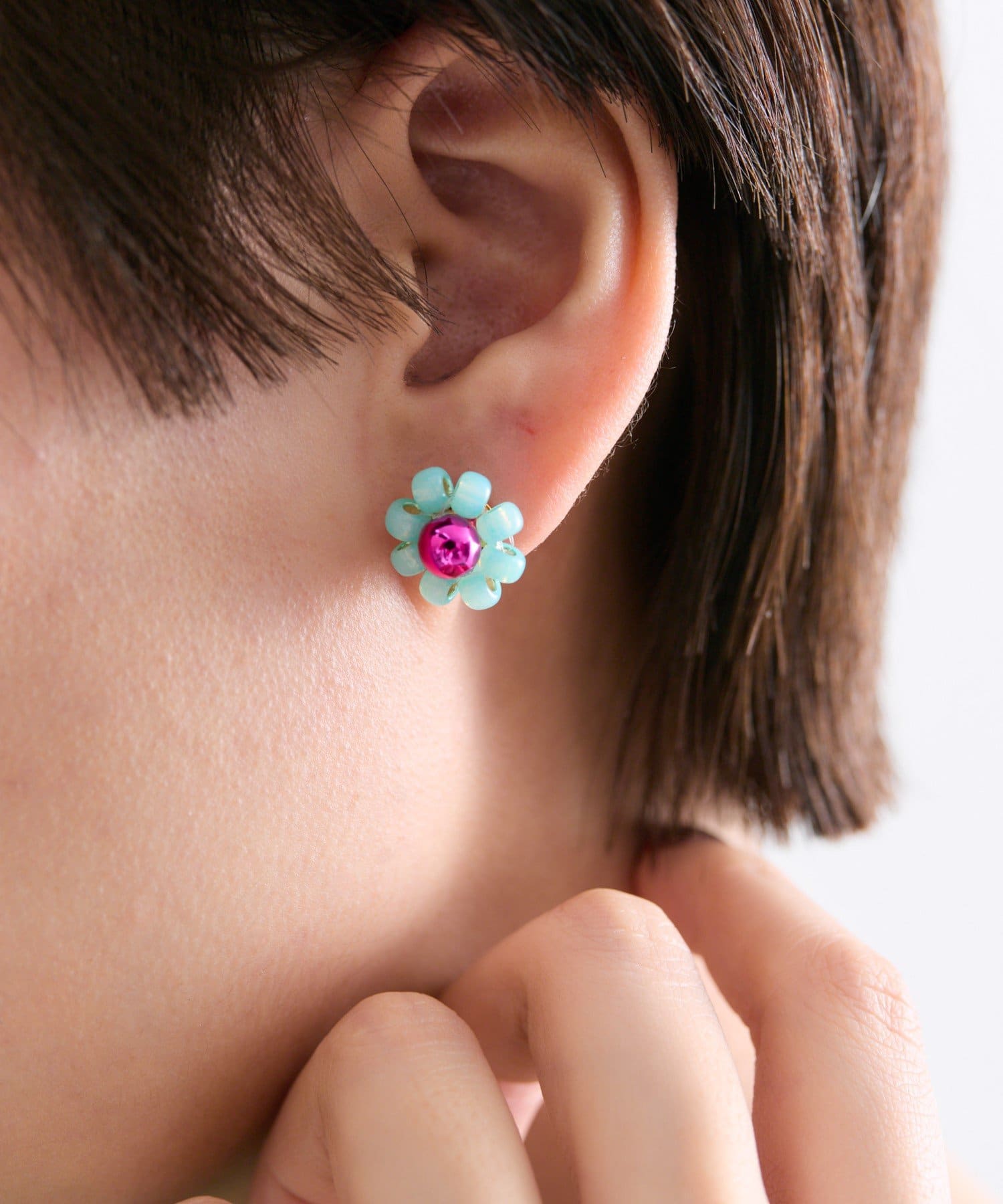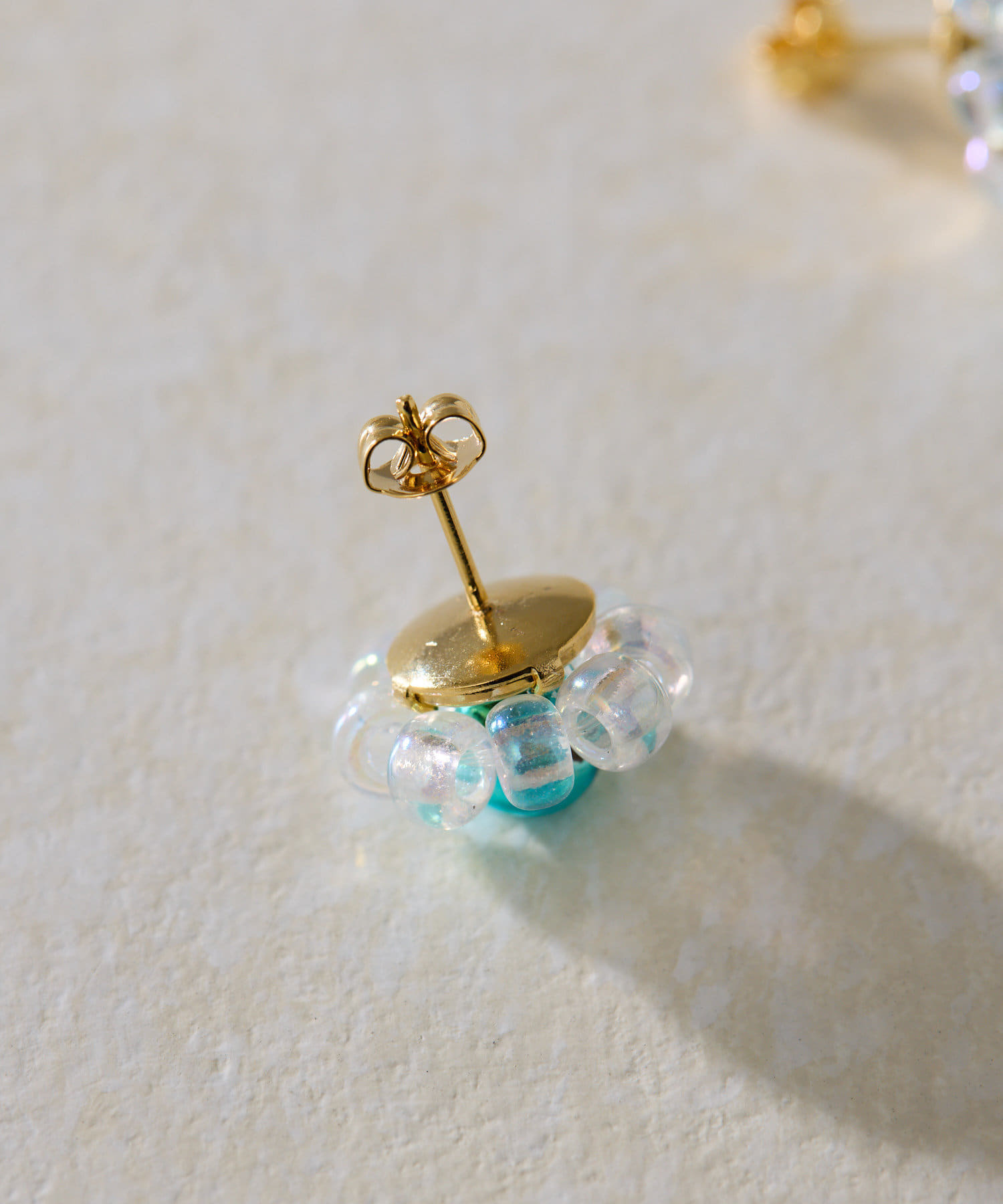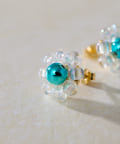 ・ビーズを花形に編んだ、繊細な作りのポストピアス