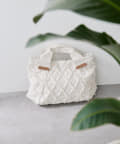 幅広の持ち手で手に持ちやすく、ワンポイントで本革を使用しており