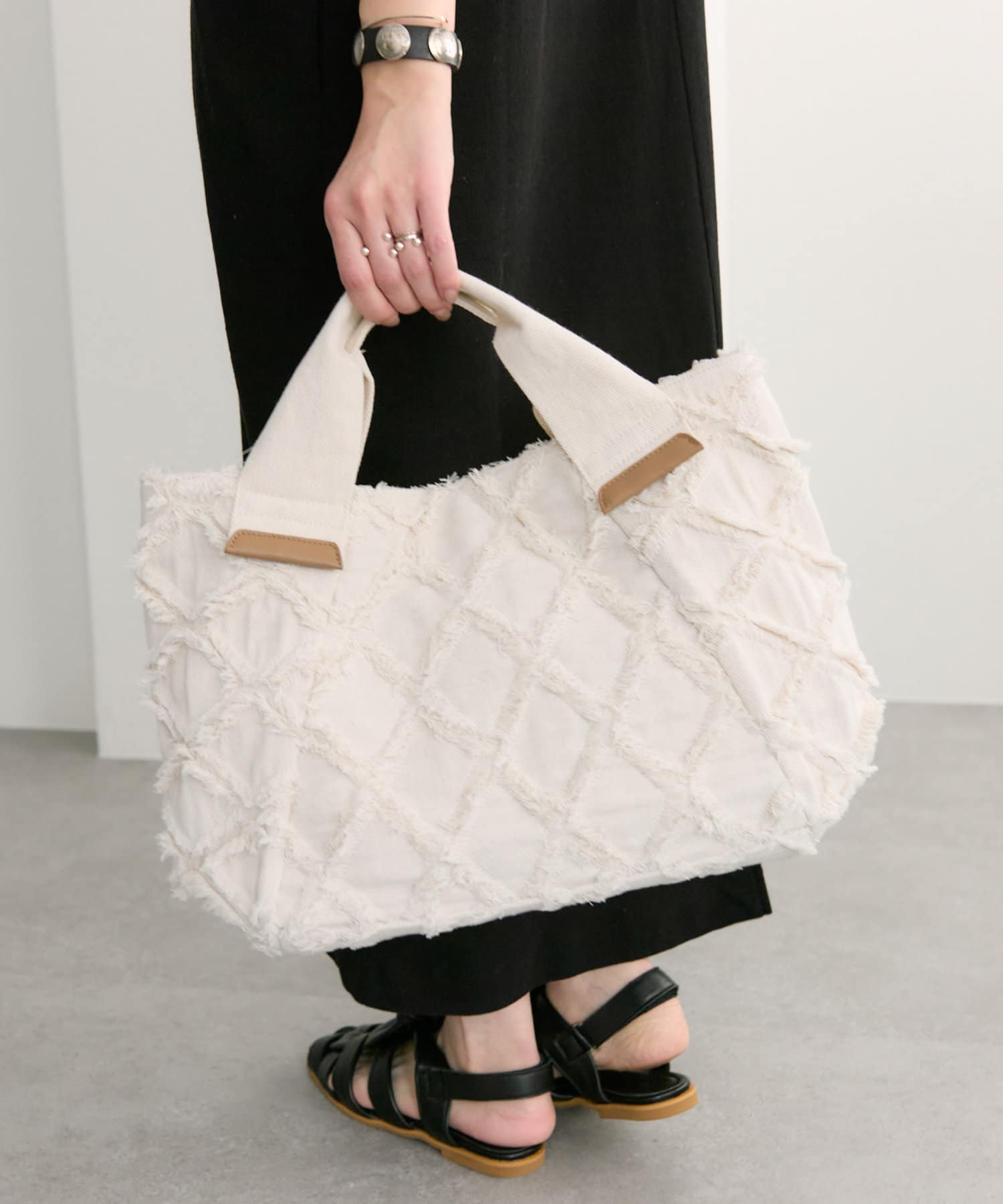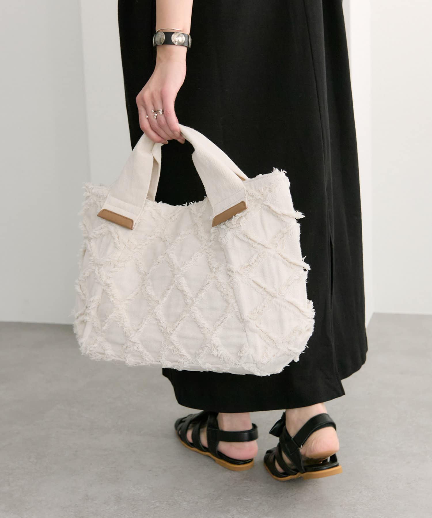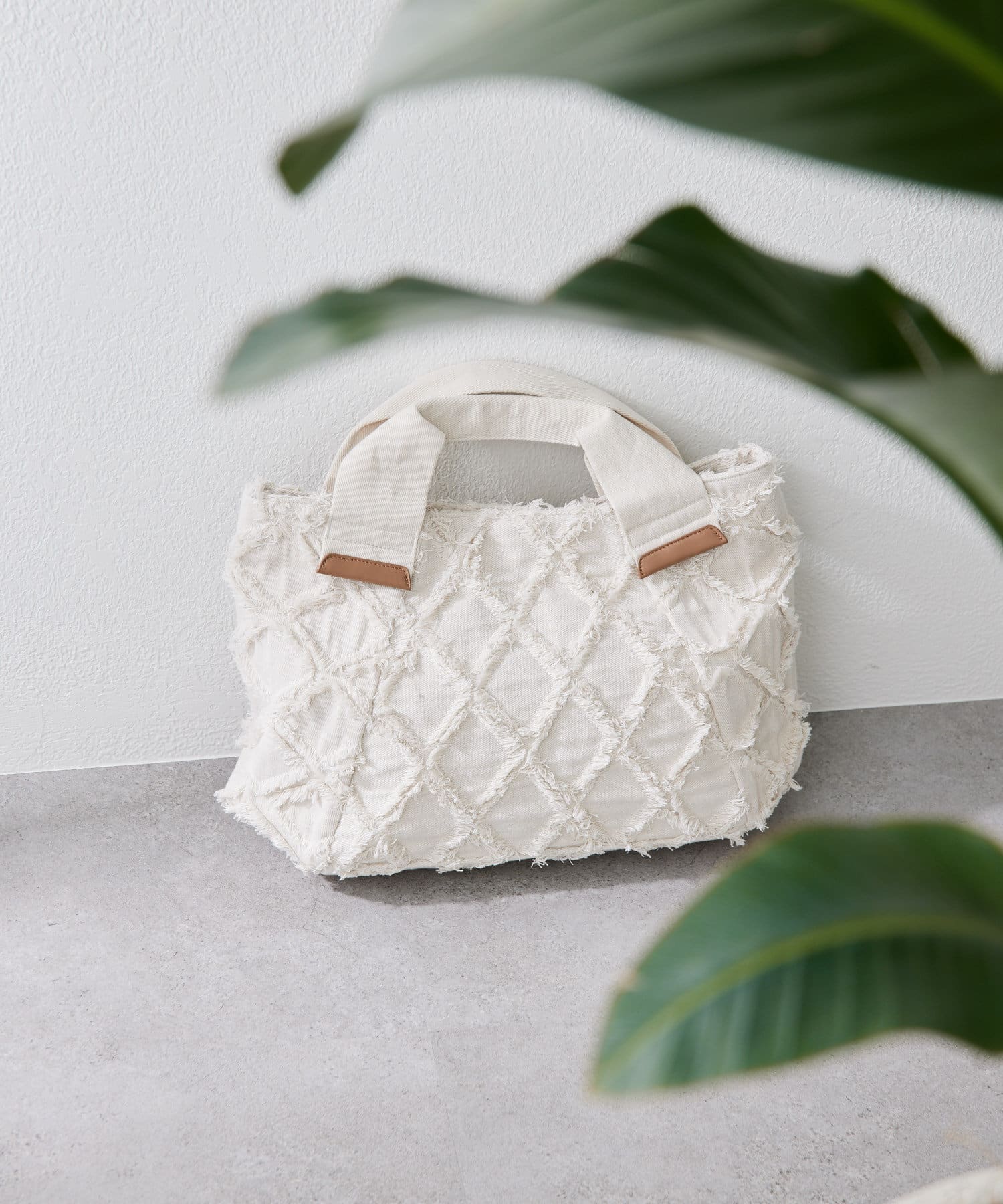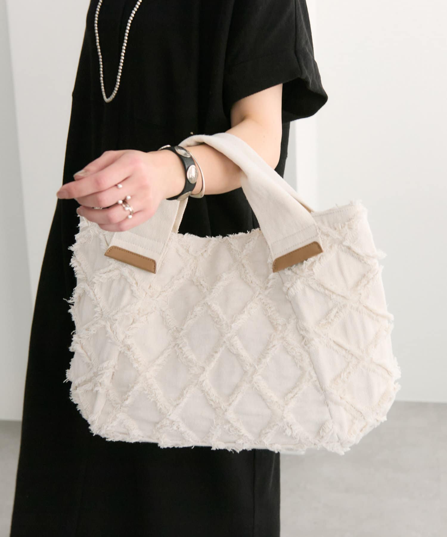 ・ショートフリンジのダイヤ柄とランダムストライプ柄の2色展開