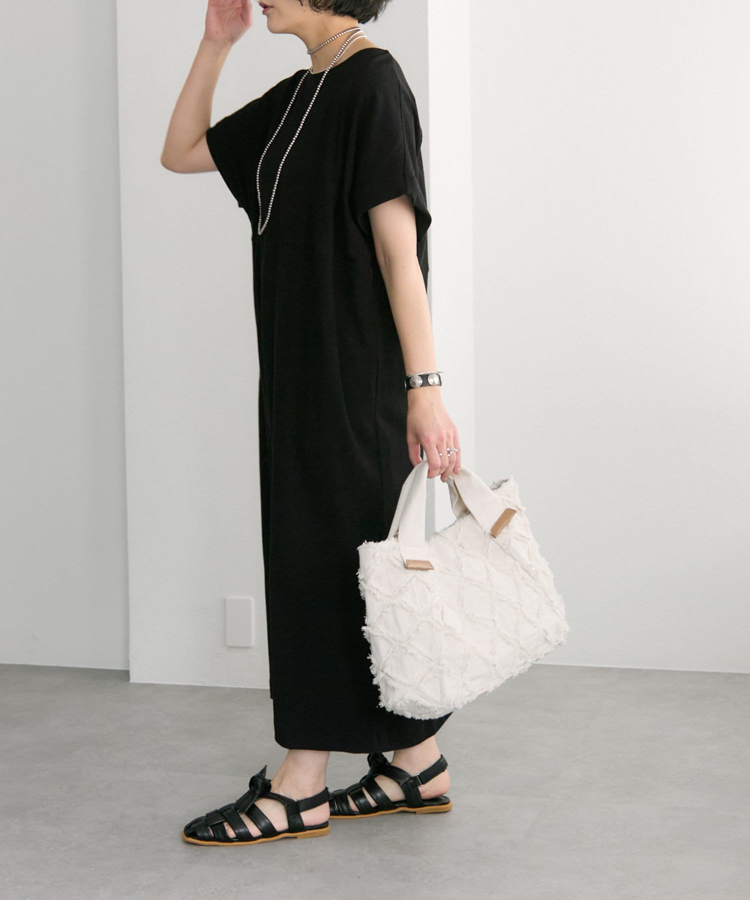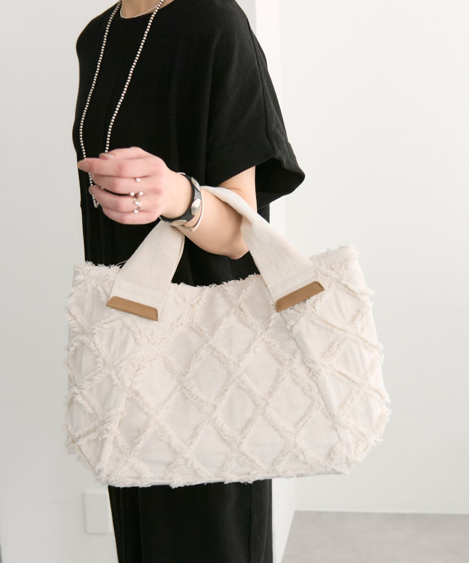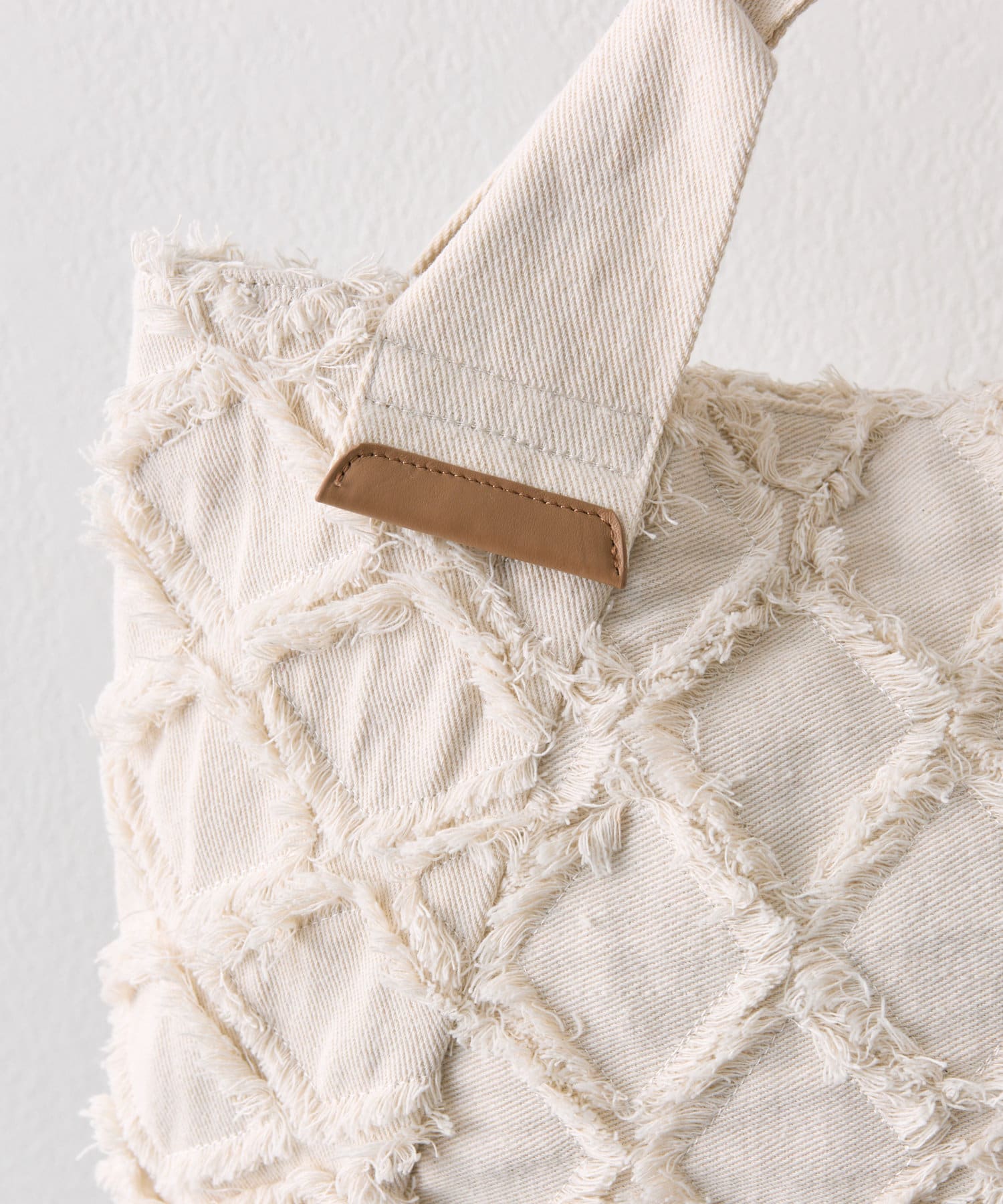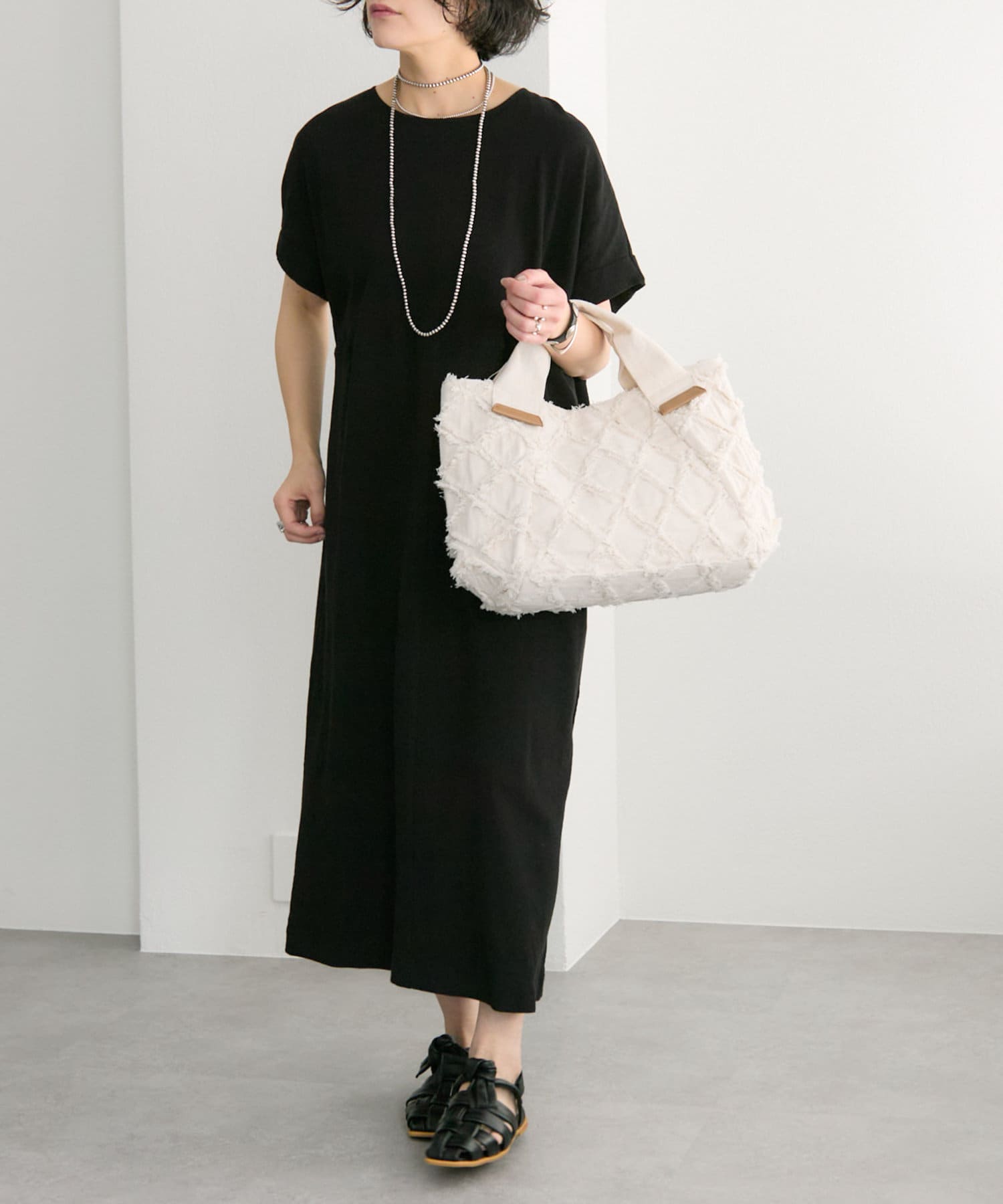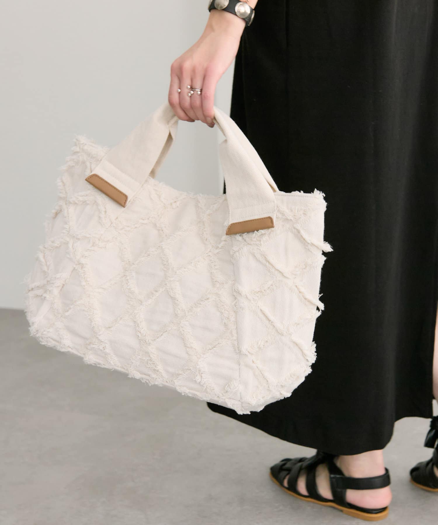 予めご了承ください。また、切りっぱなし部分と本体の縫製部分で止まるためそれ以上はほつれてはきません。