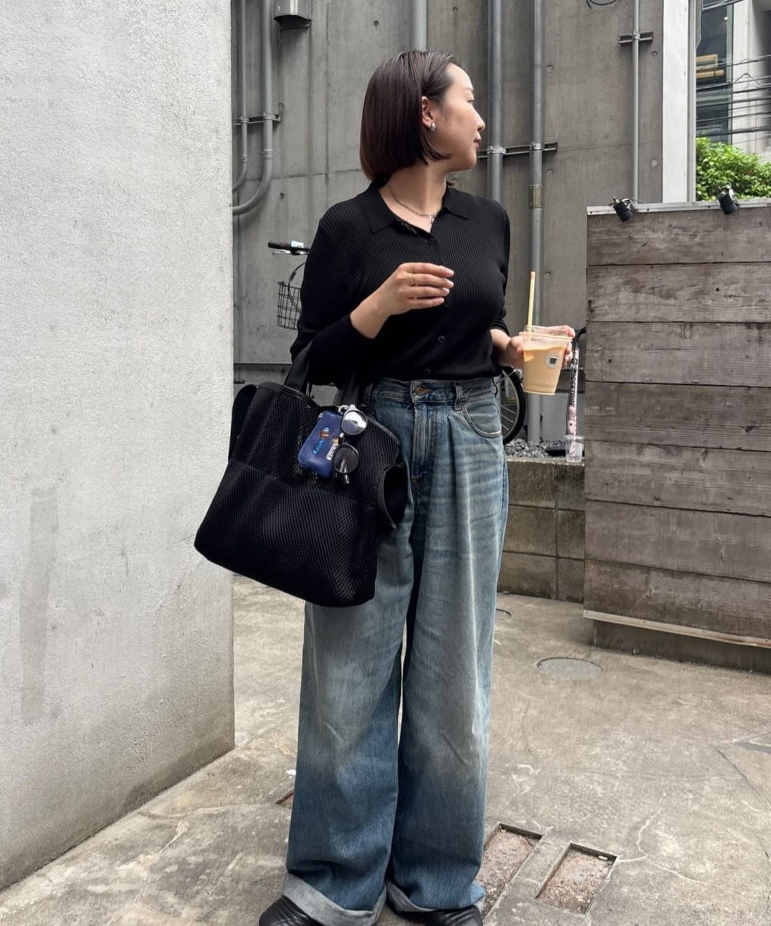 購入場所:パルクローゼットメッシュなので、これからの季節に黒でも重たくなく重宝しそうなこと間違いなしです。