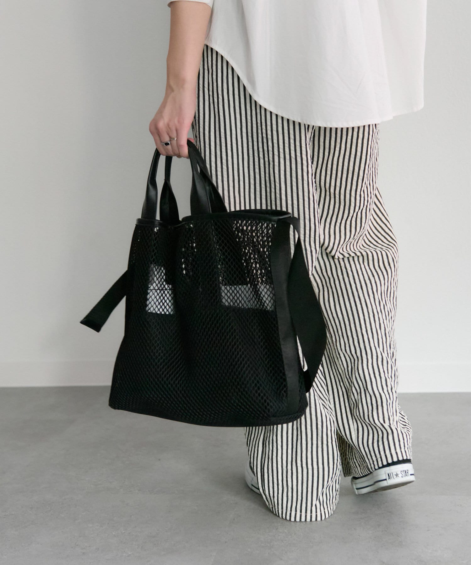 パイピングを効かせた夏にぴったりメッシュバッグ
