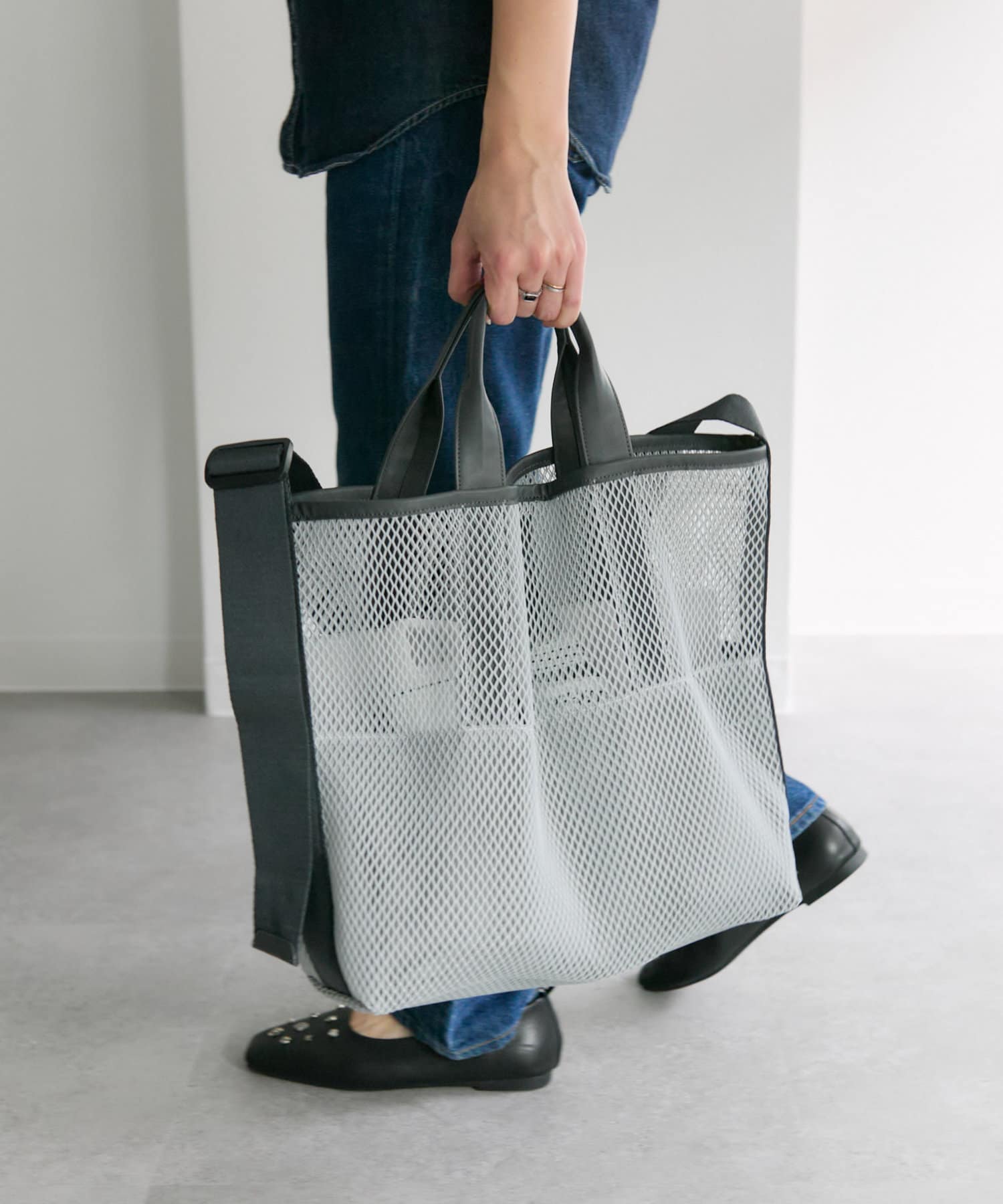 《ブラックのみ追加決定!》ダイヤメッシュ2WAYトートバッグ/軽量
