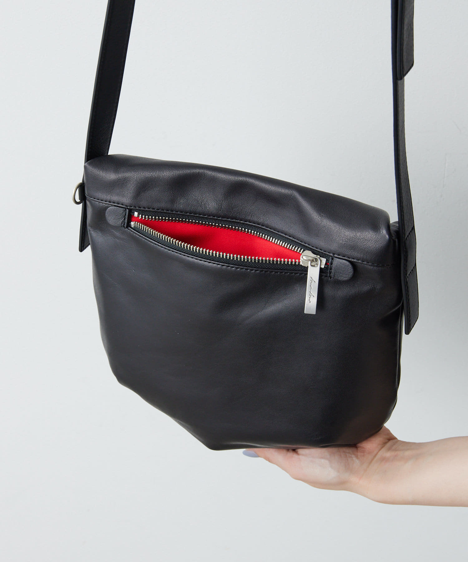 スタイリッシュなデザインとユニークな形状の斜め掛けスタイルはコーディネートのアクセントになります。