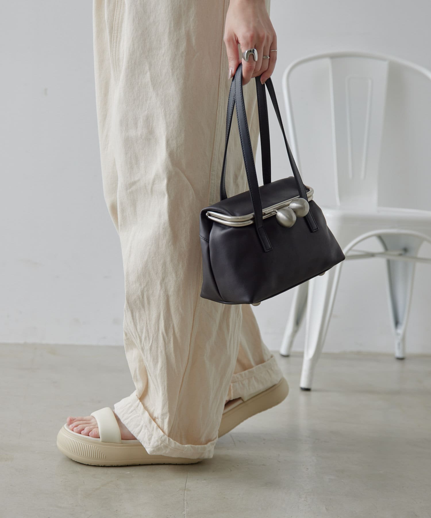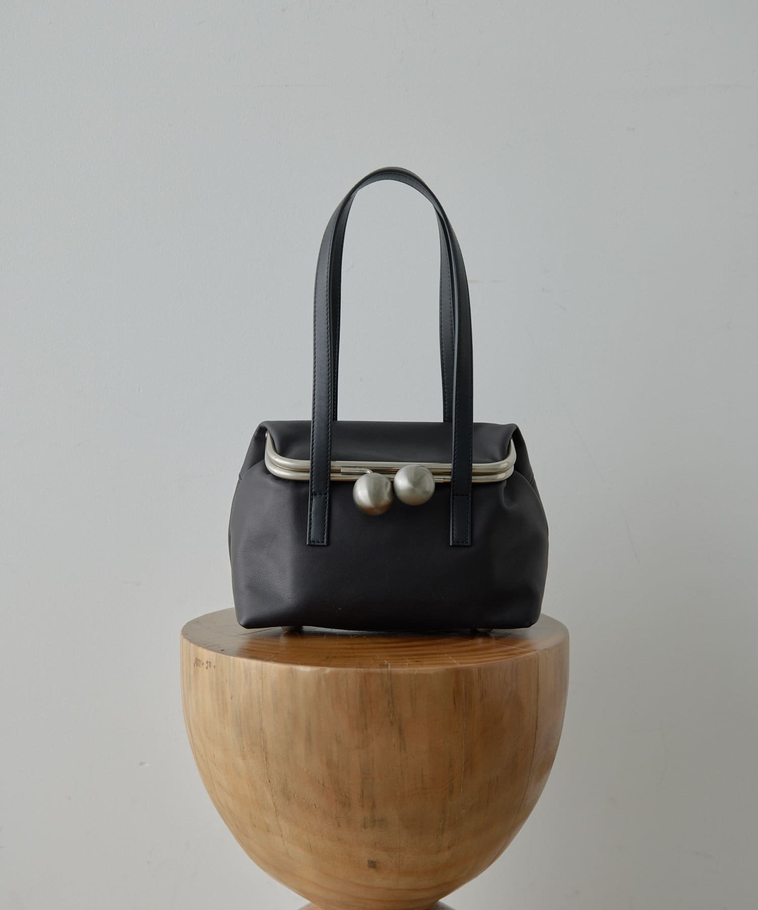 kawa-kawaのアイコンとなっている「大きな口金」を使用したスクエアフォルムのトートバッグで