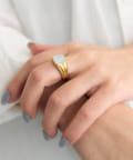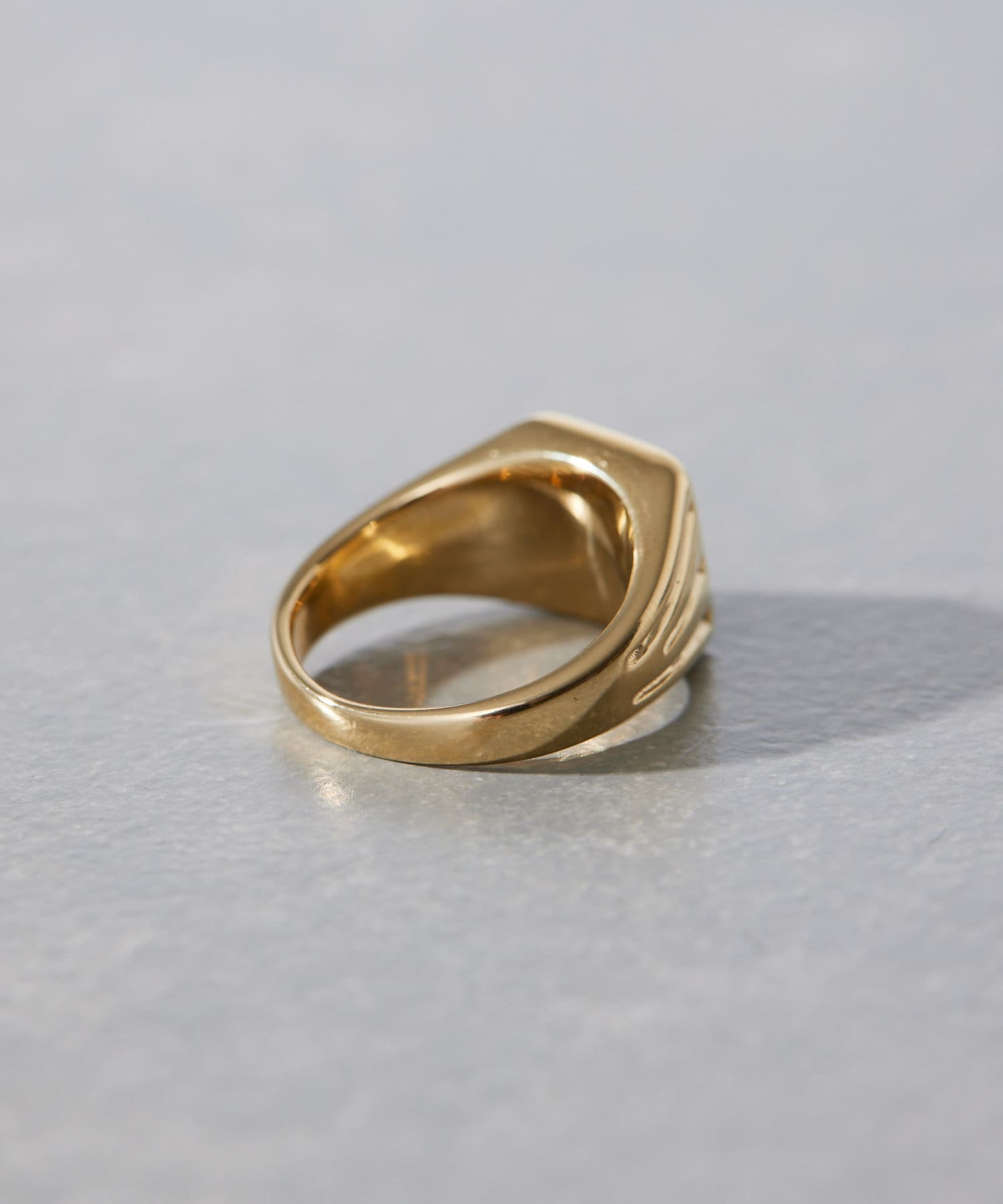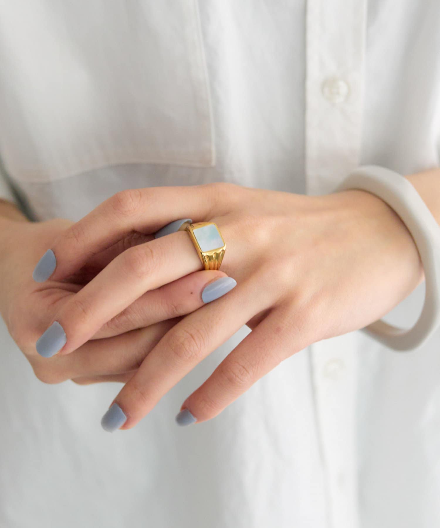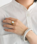 シンプルなデザインながらも、存在感のあるリングは、普段のコーディネートにプラスするだけで洗練された雰囲気に。