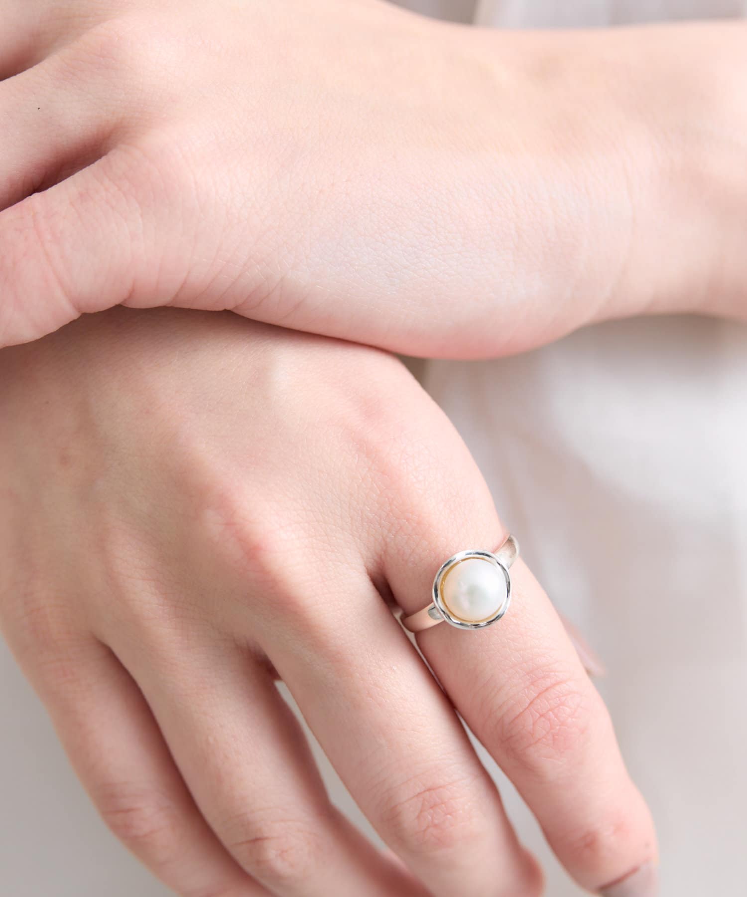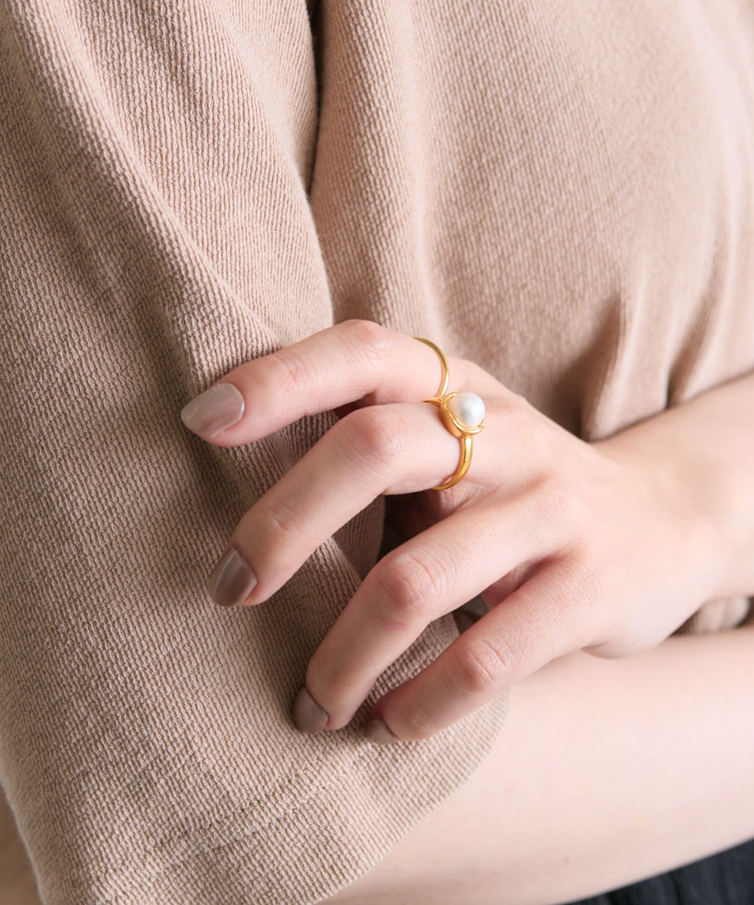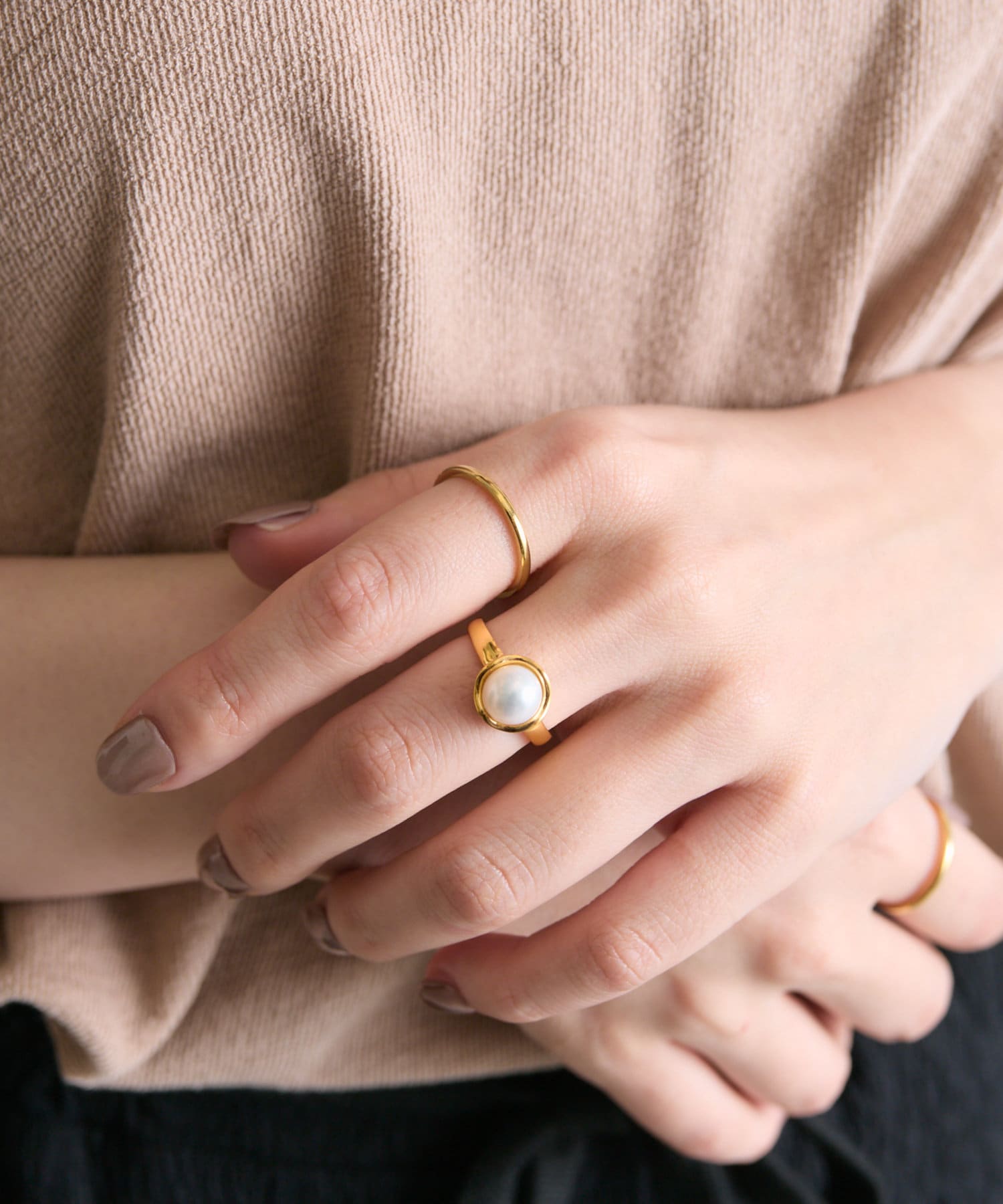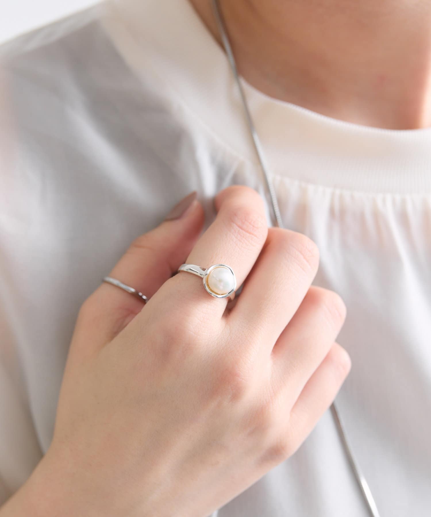 ・淡水パールのやわらかな光沢が、やさしい雰囲気のリング