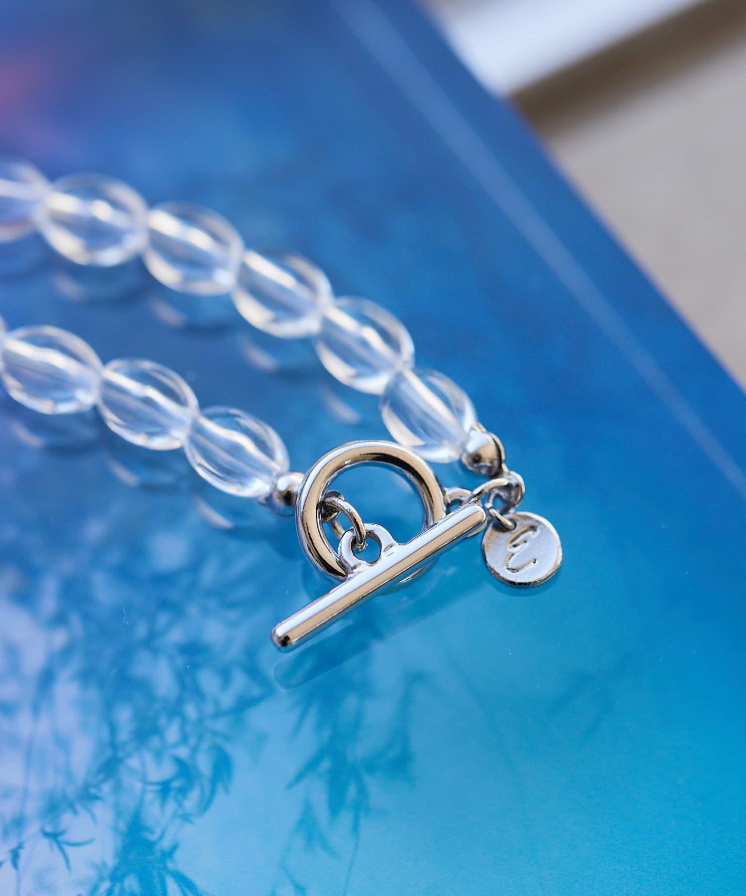 クリアアクリルビーズが光を受けてきらめき、さりげない存在感を放ちます。