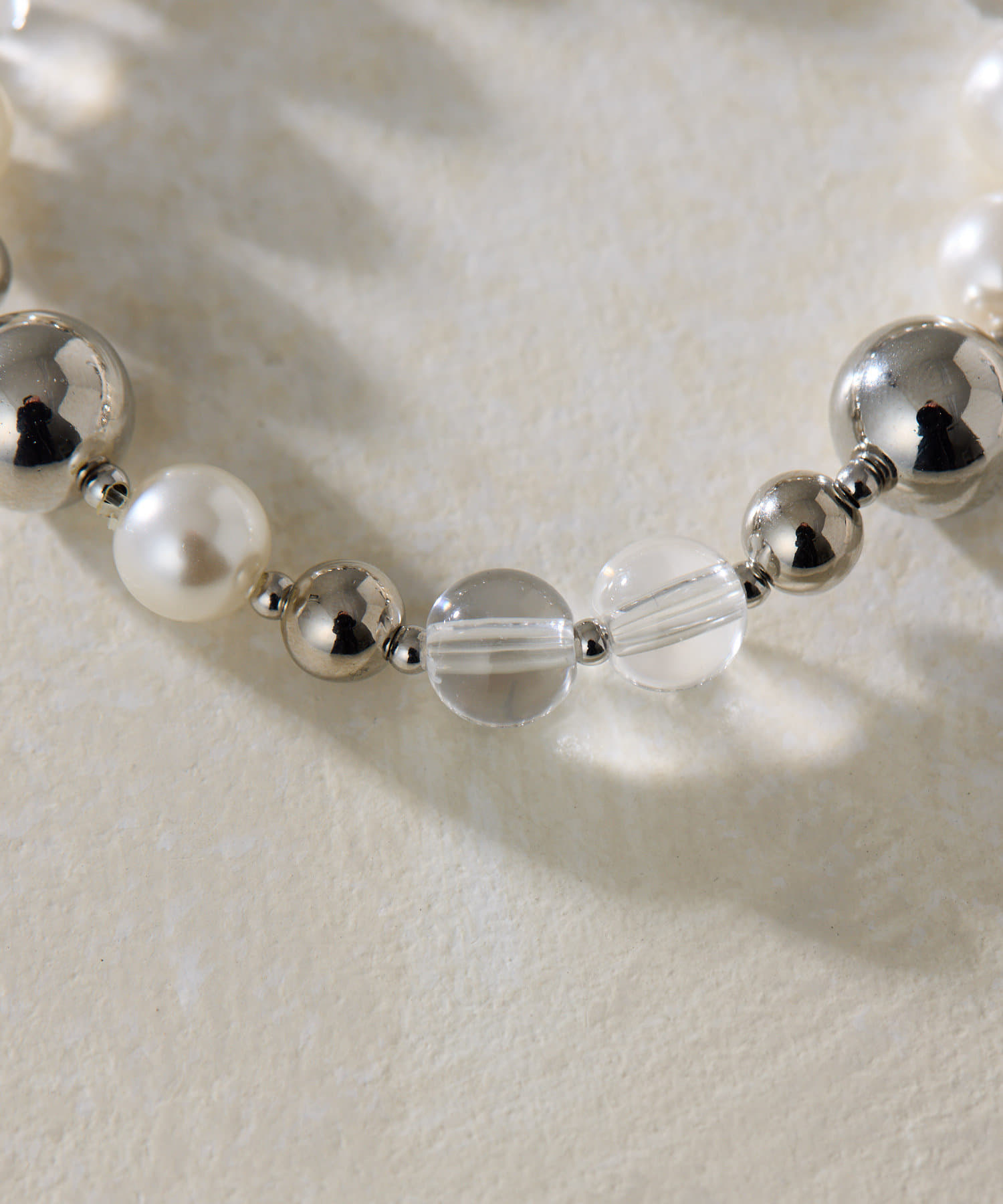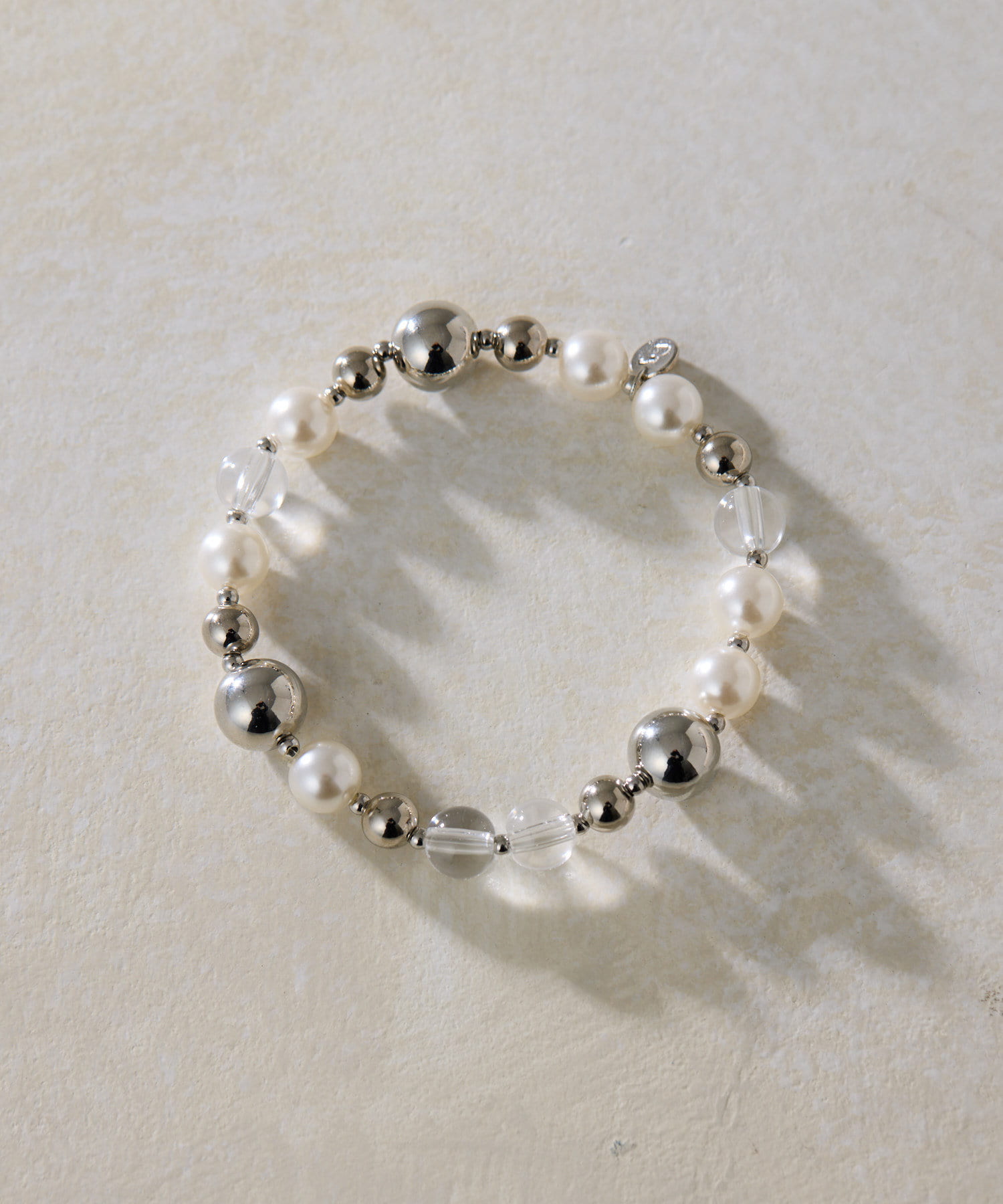 手元に上品な輝きをプラスする、パールフリーブレスレット。