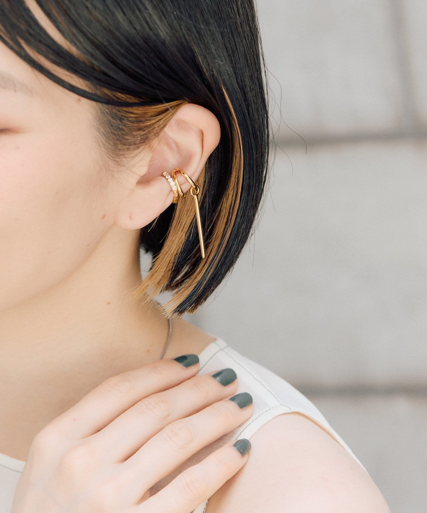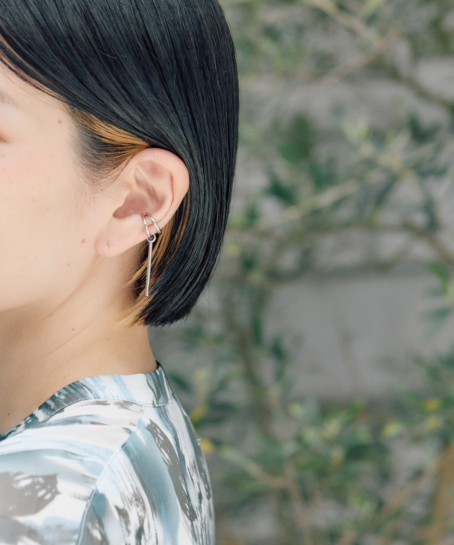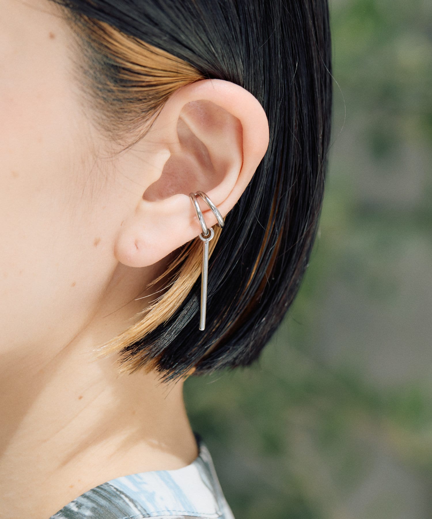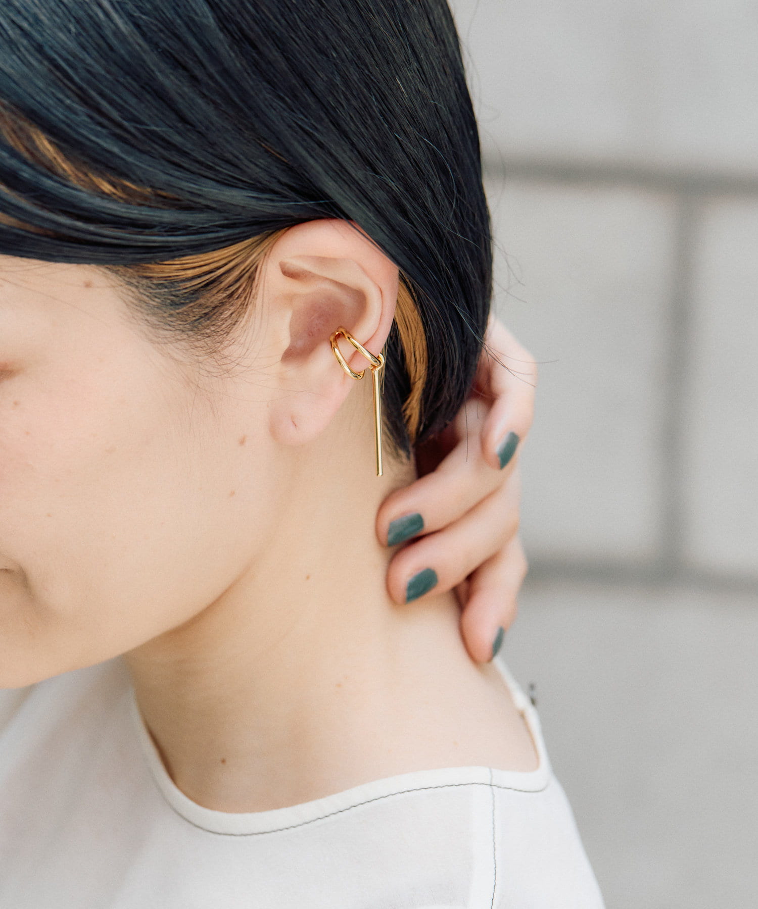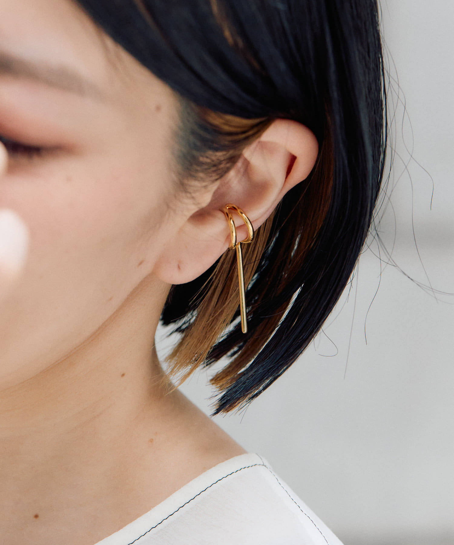 長めのバーが揺れるシンプルバーイヤーカフは、あなたの耳元をスタイリッシュに彩るアイテム。