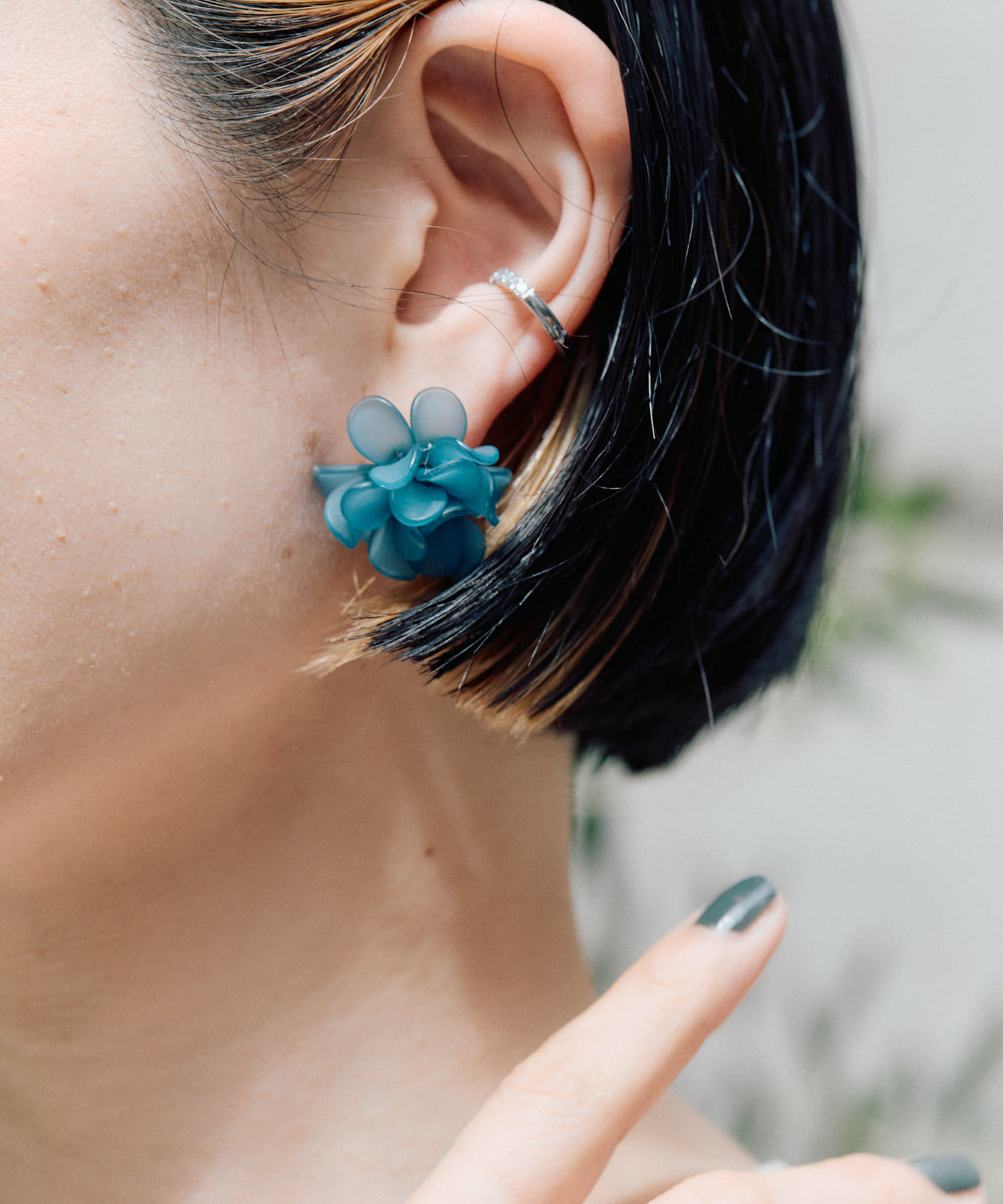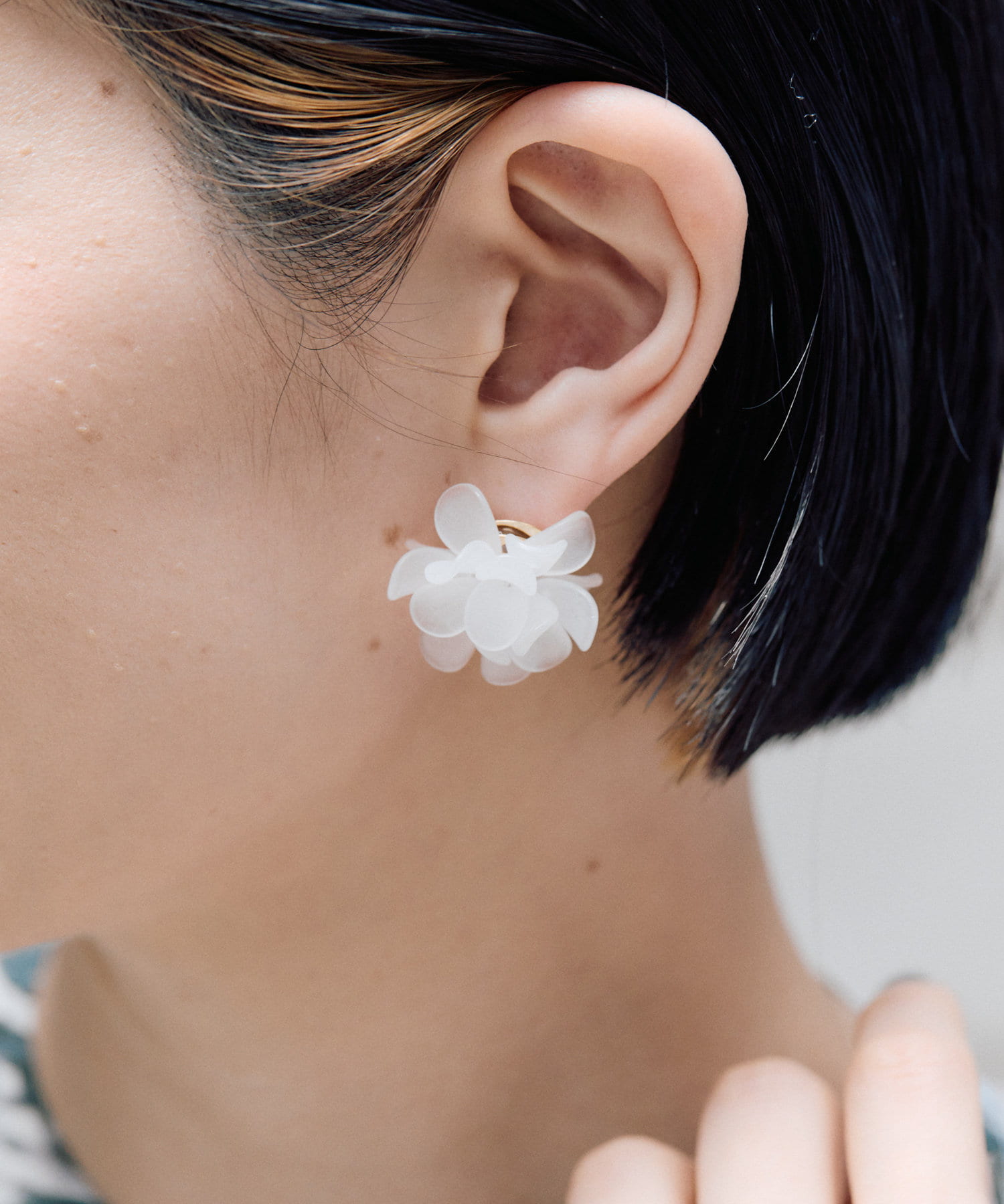 ・マットな仕様が凍った花びらのような、涼し気なお花型ピアス