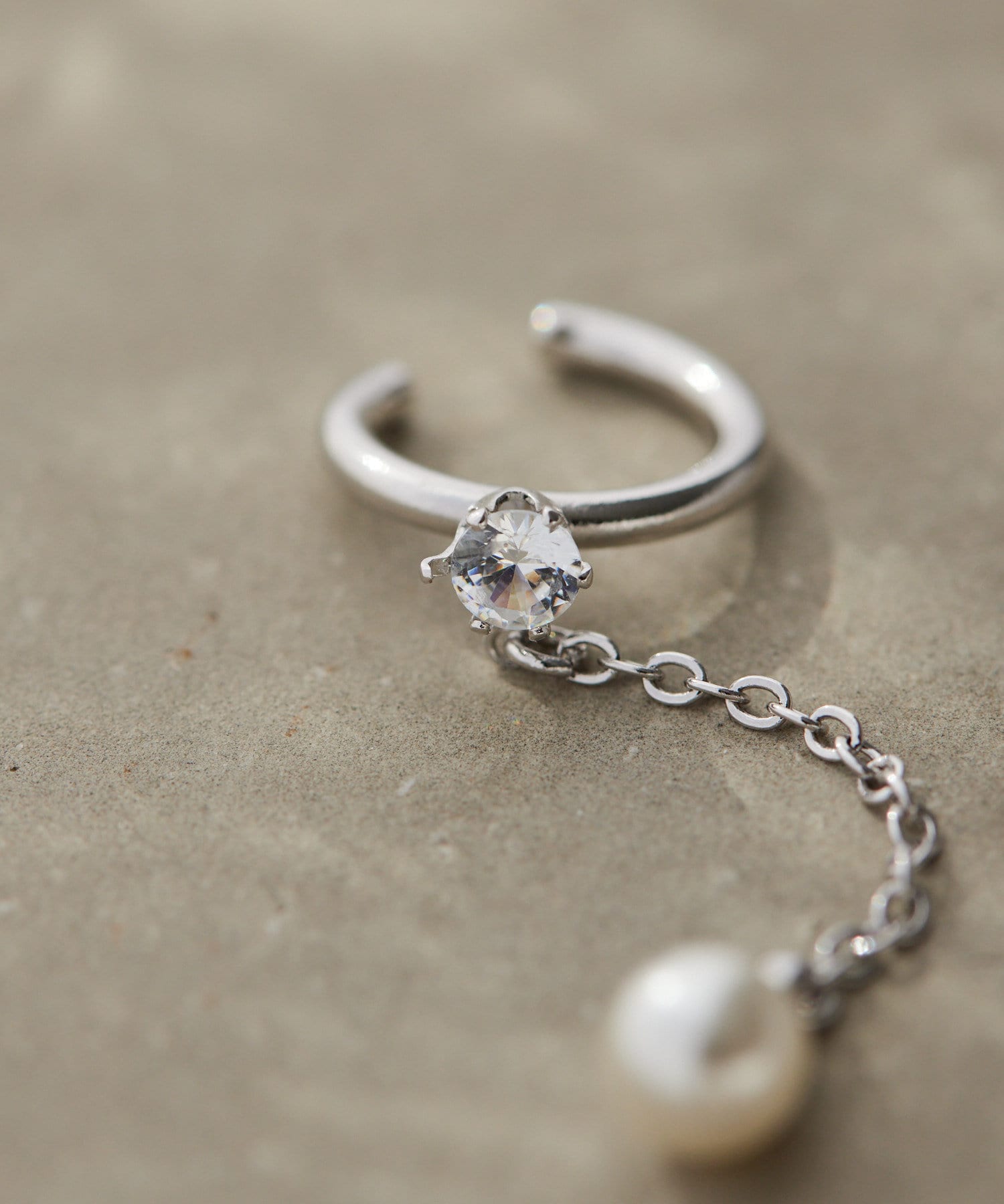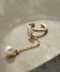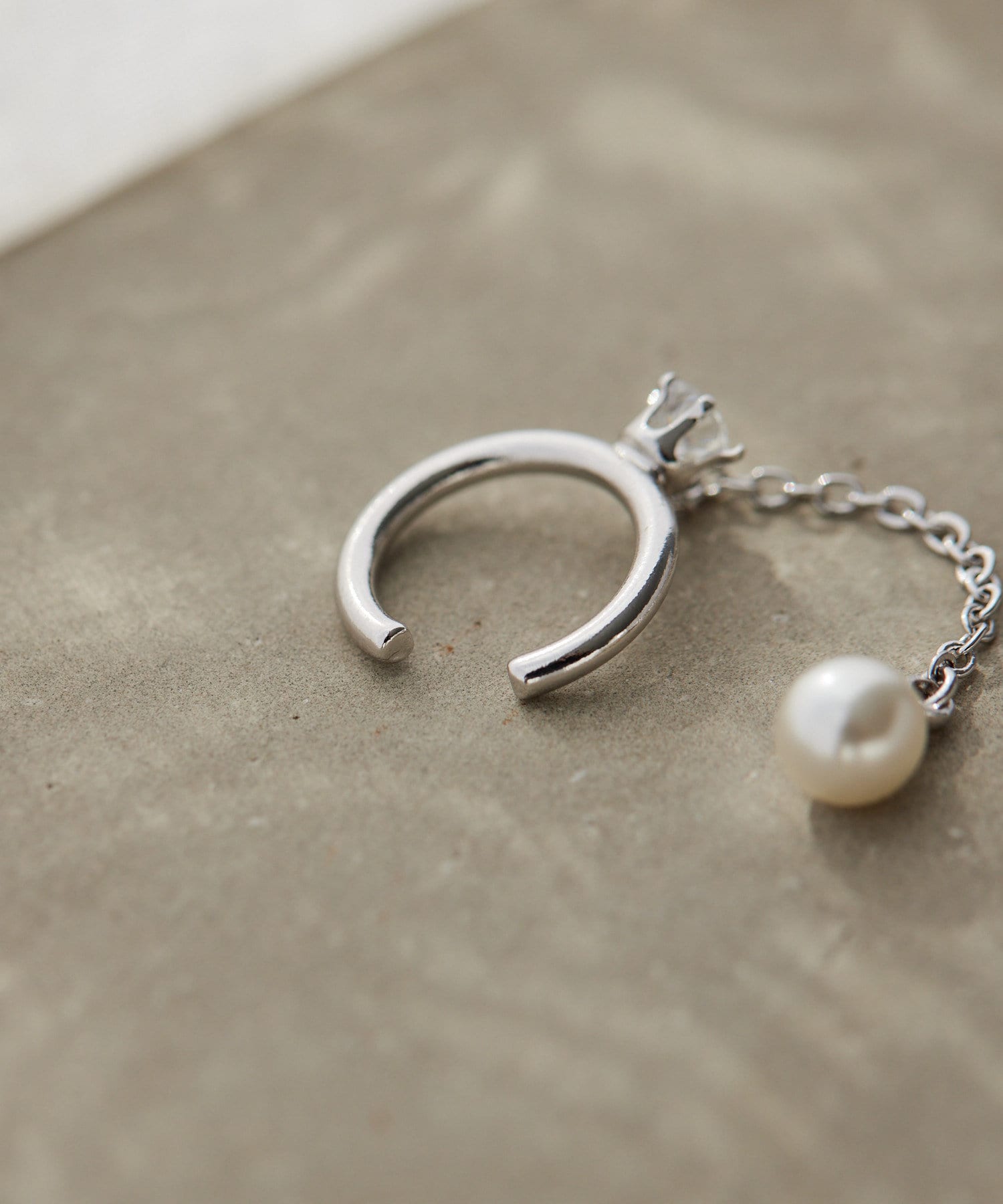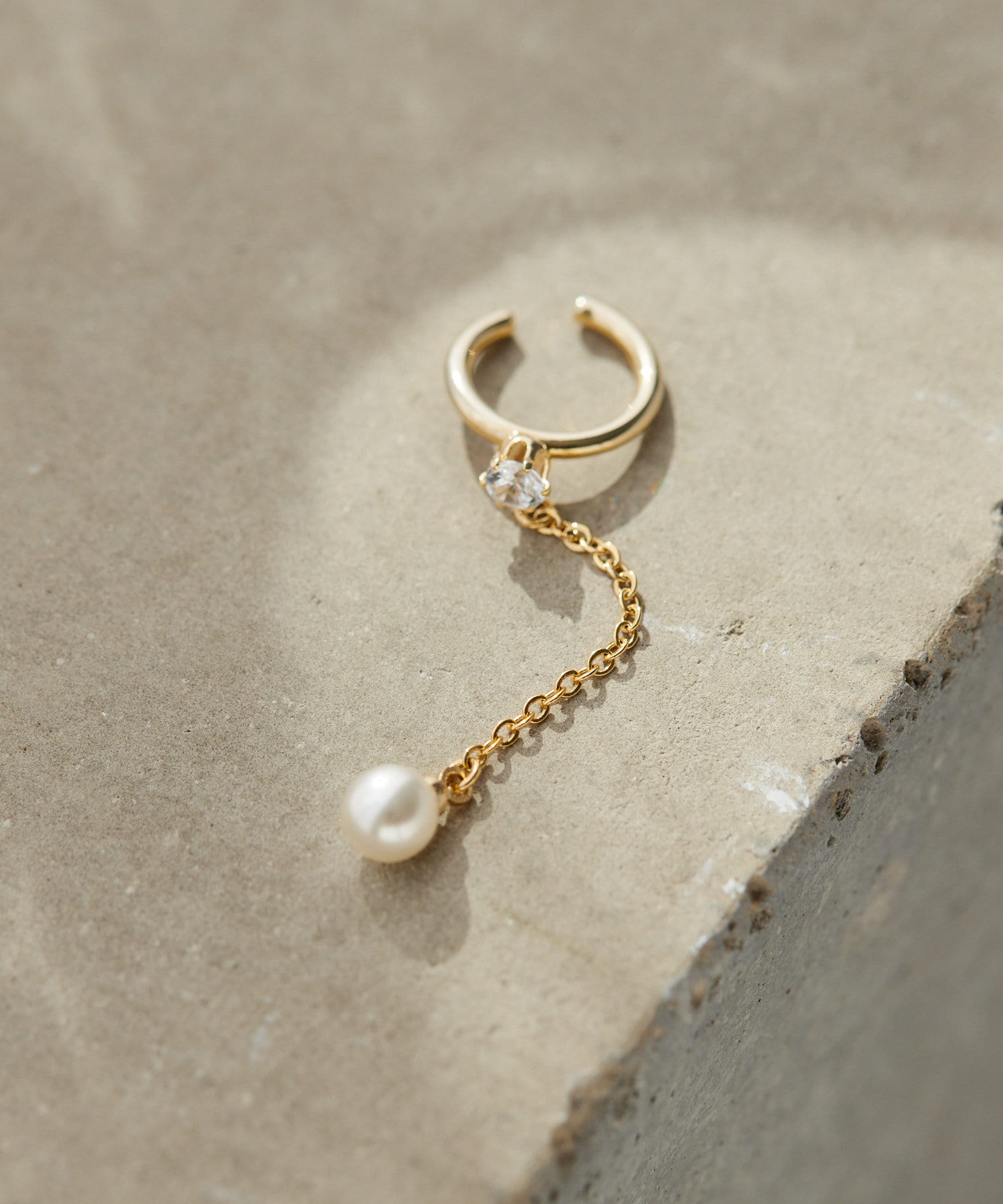 耳元で優雅に揺れる、ロングチェーンのパールイヤーカフ。