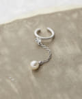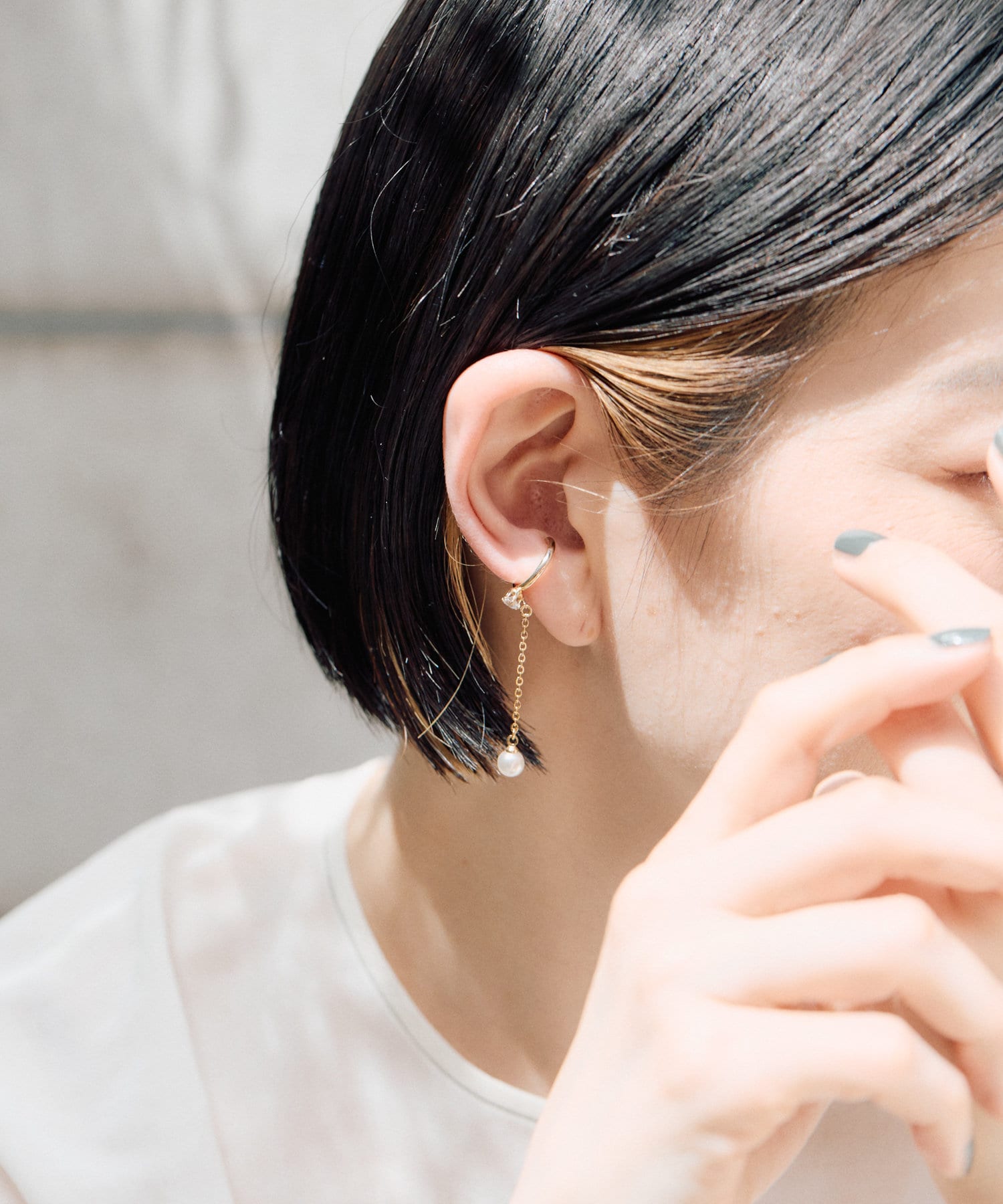 ・スイングするパールが目を引く、ロングチェーンイヤカフ