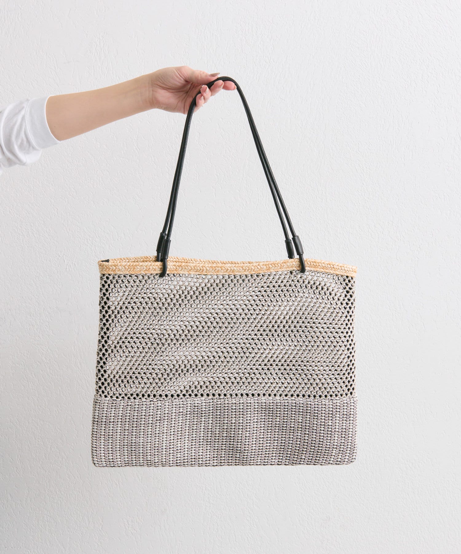 さりげない切り替えデザインでオシャレを楽しめる雑材トート