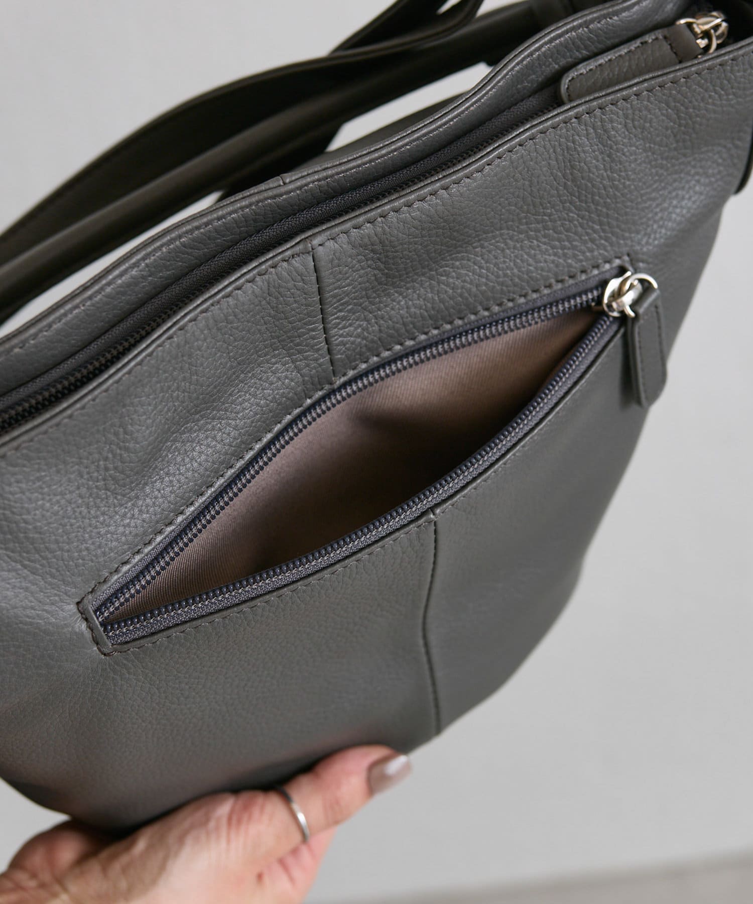 • 背面には貴重品の収納も安心のファスナー付きポケット