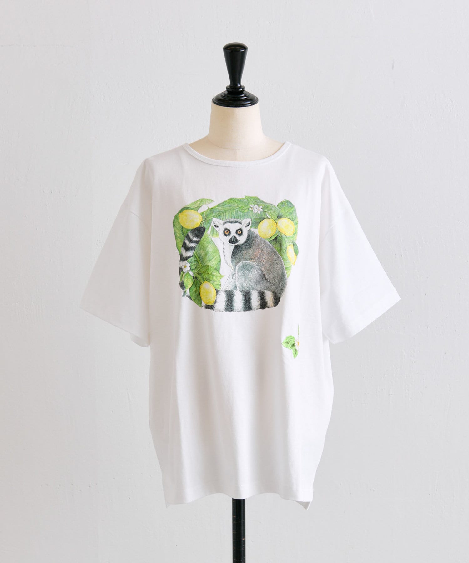 【ear PAPILLONNER】ワオキツネザル/刺しゅうTシャツ