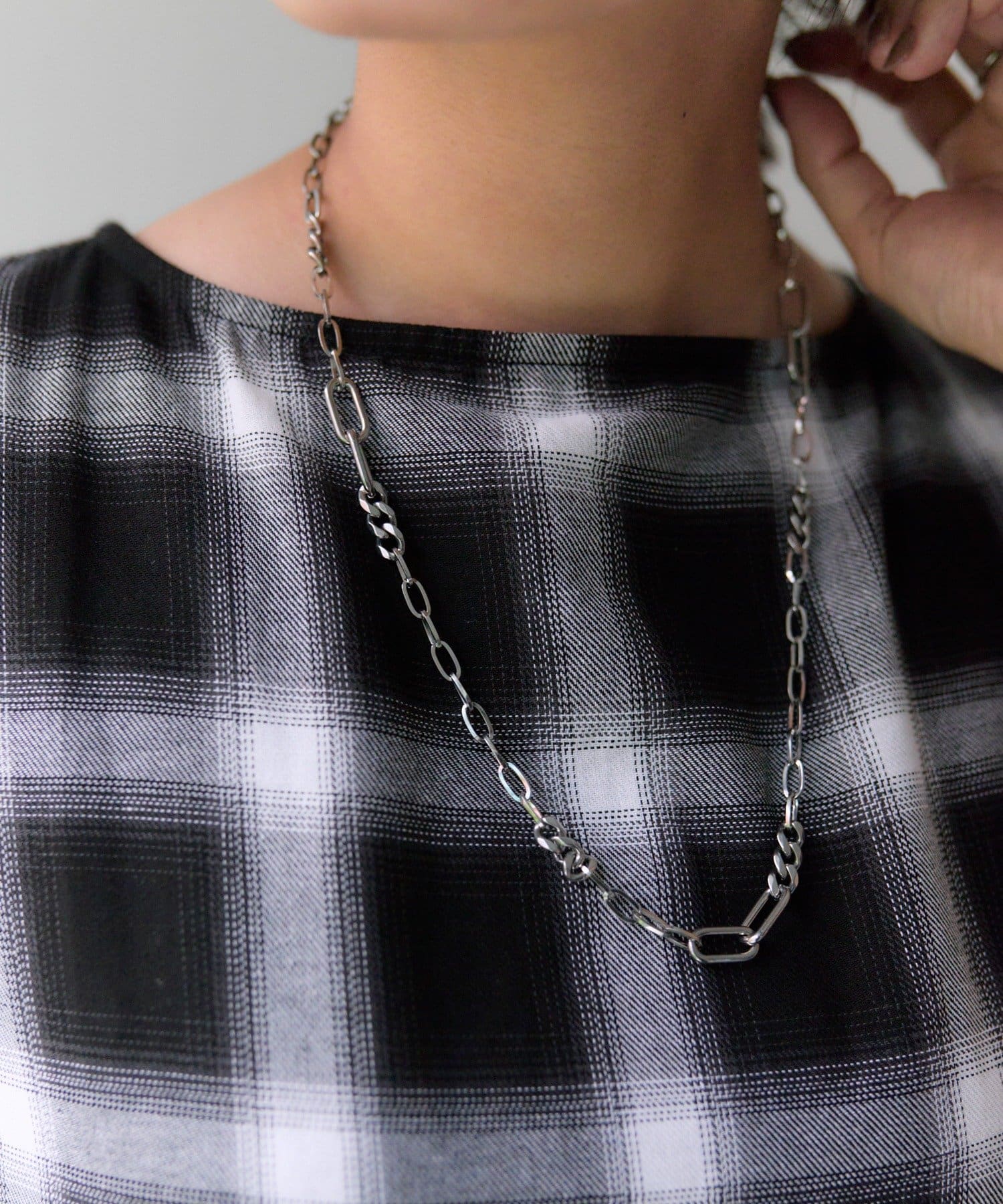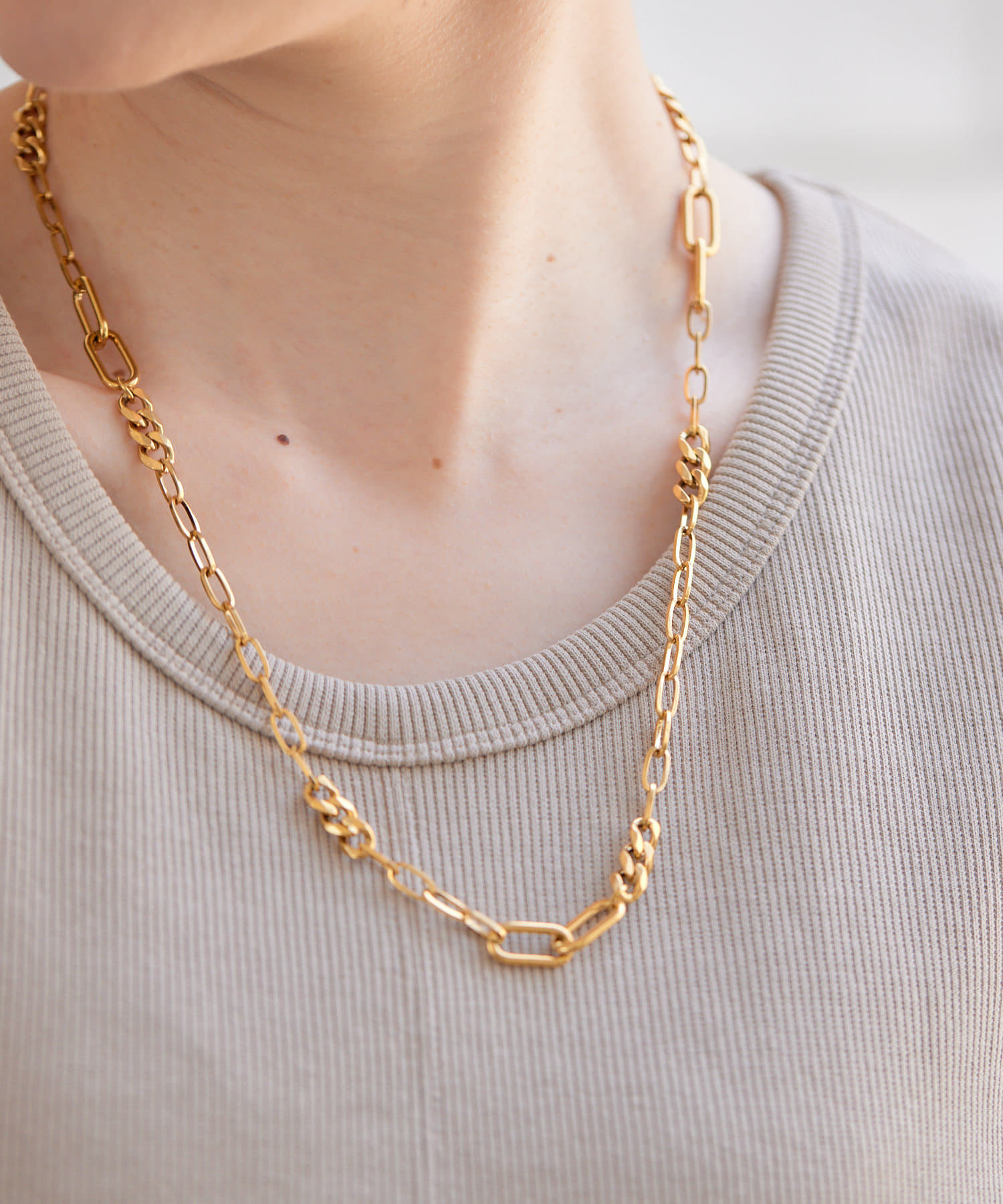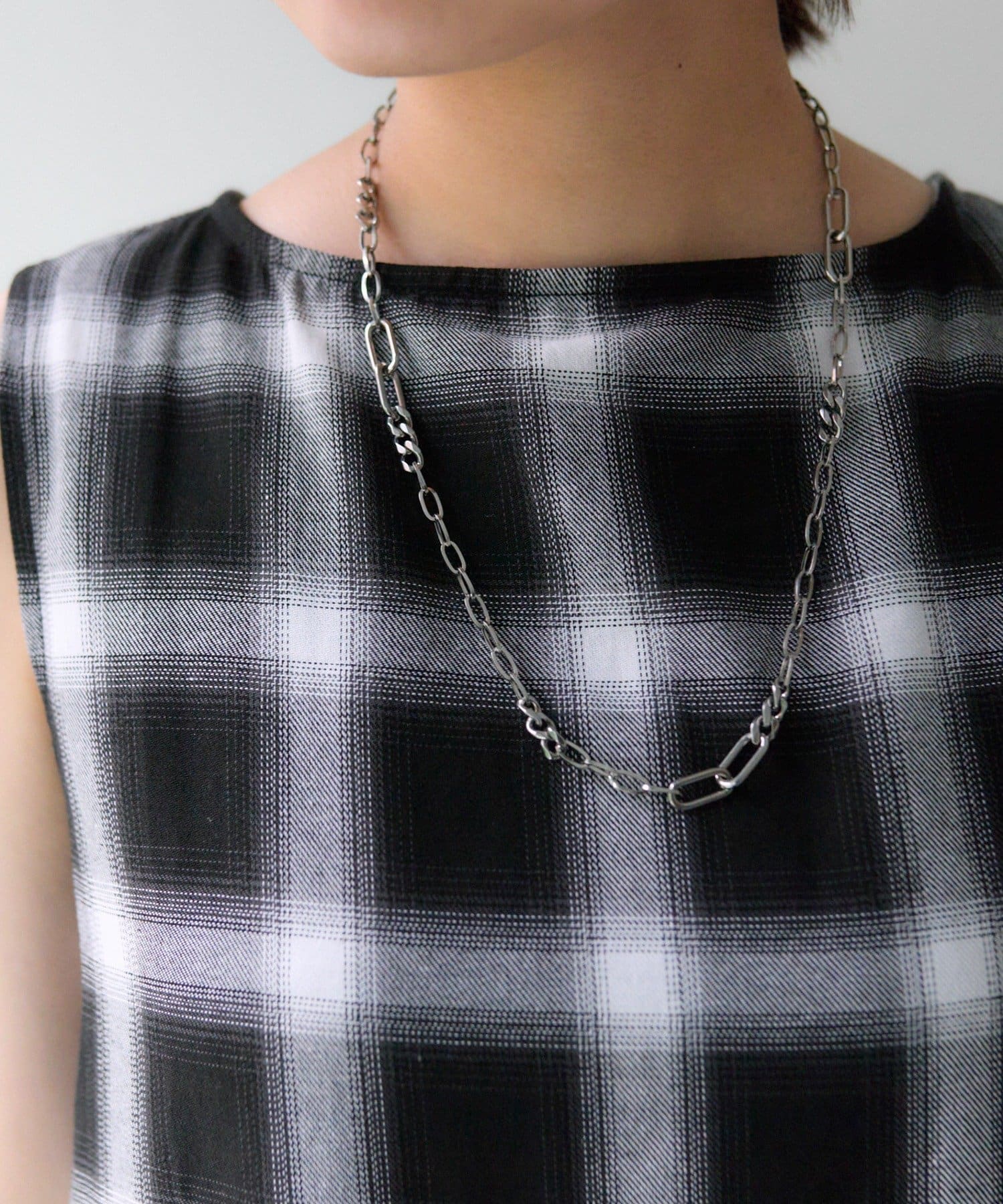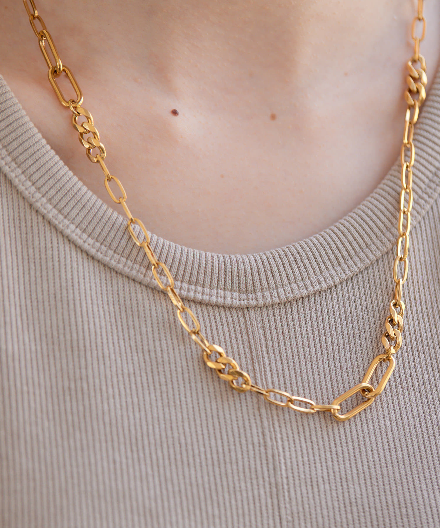 ・色々なデザインチェーンが組み合わされた、立体感のあるチェーンネックレス