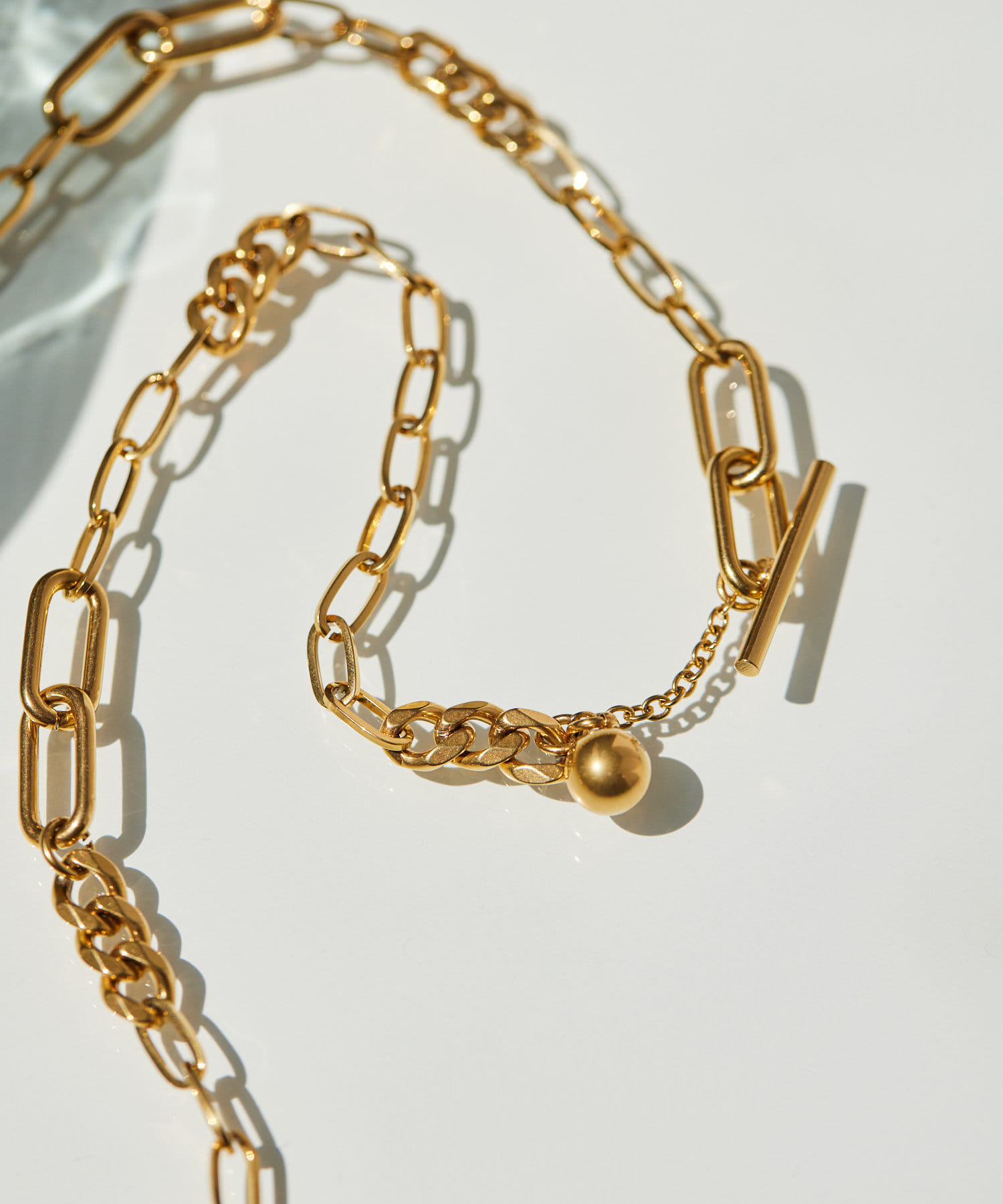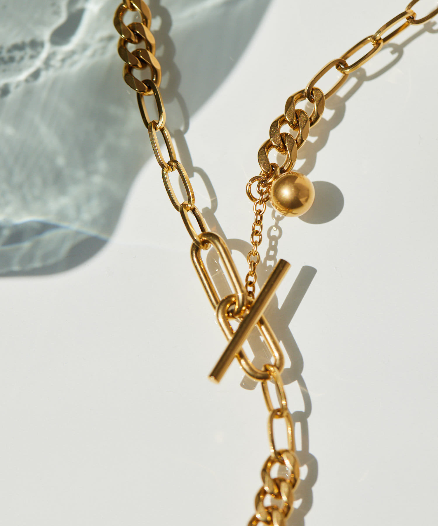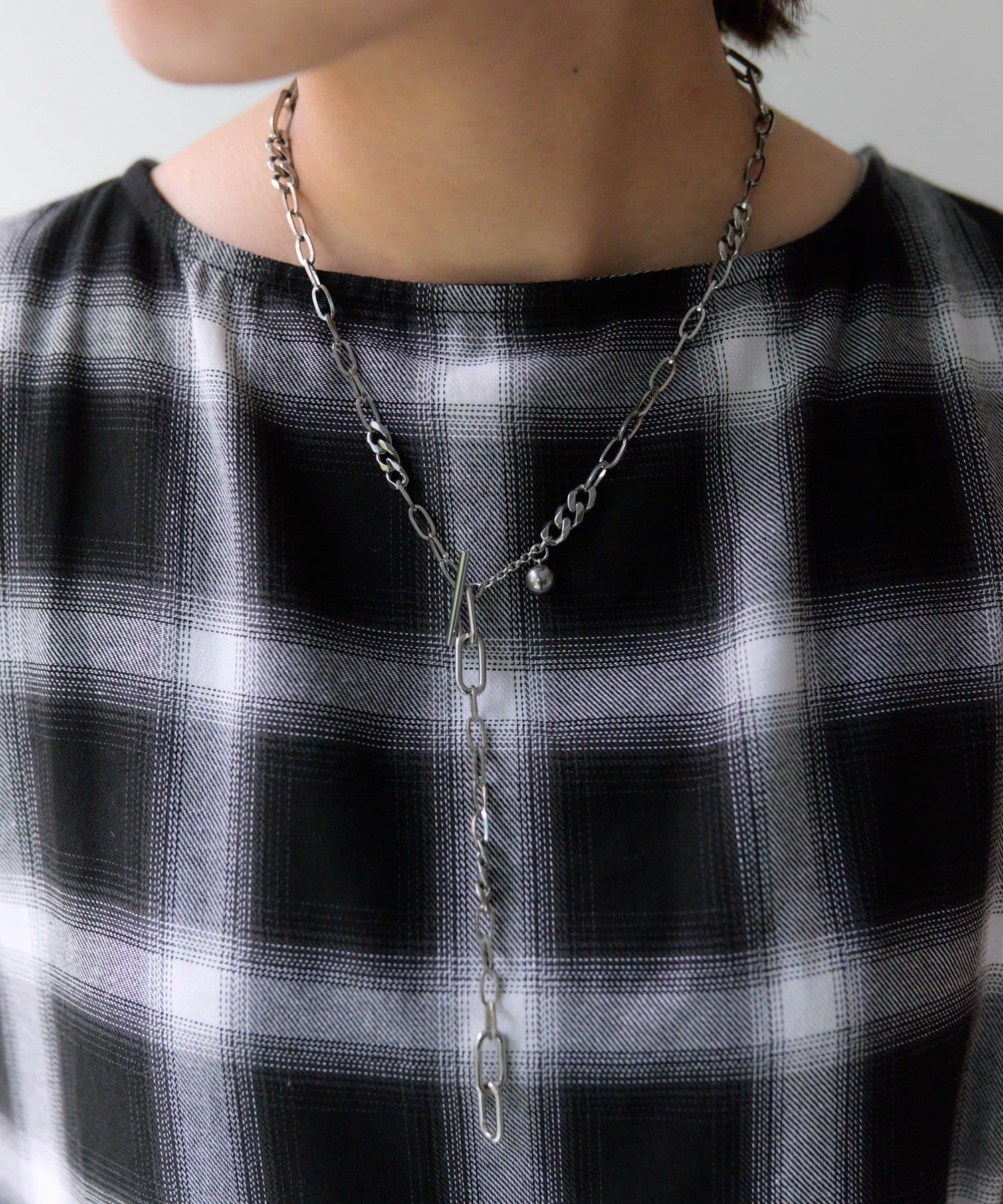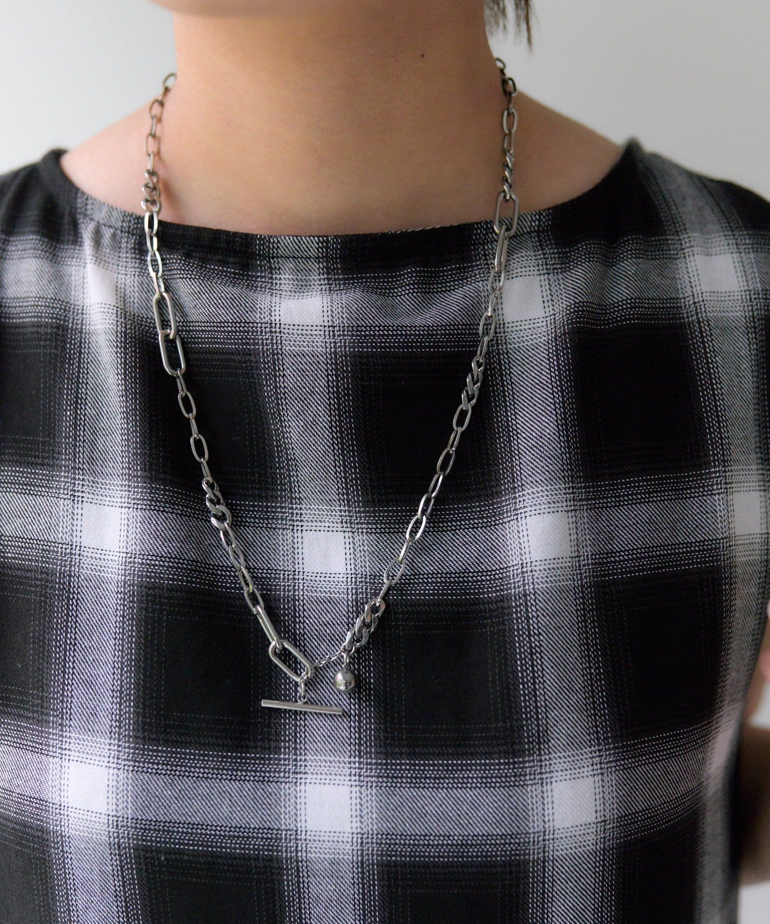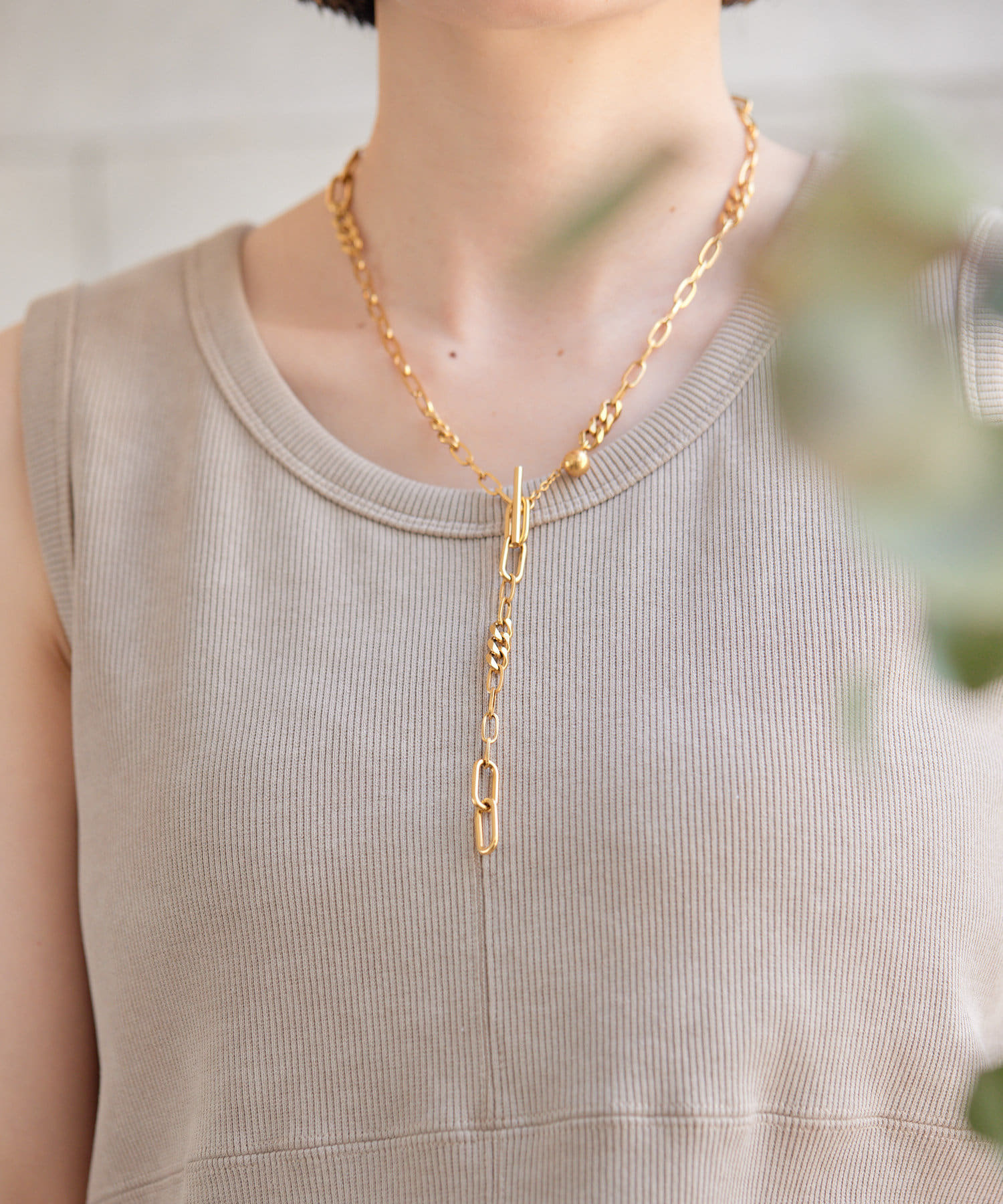 ・色々なデザインチェーンが組み合わされた、立体感のあるチェーンネックレス