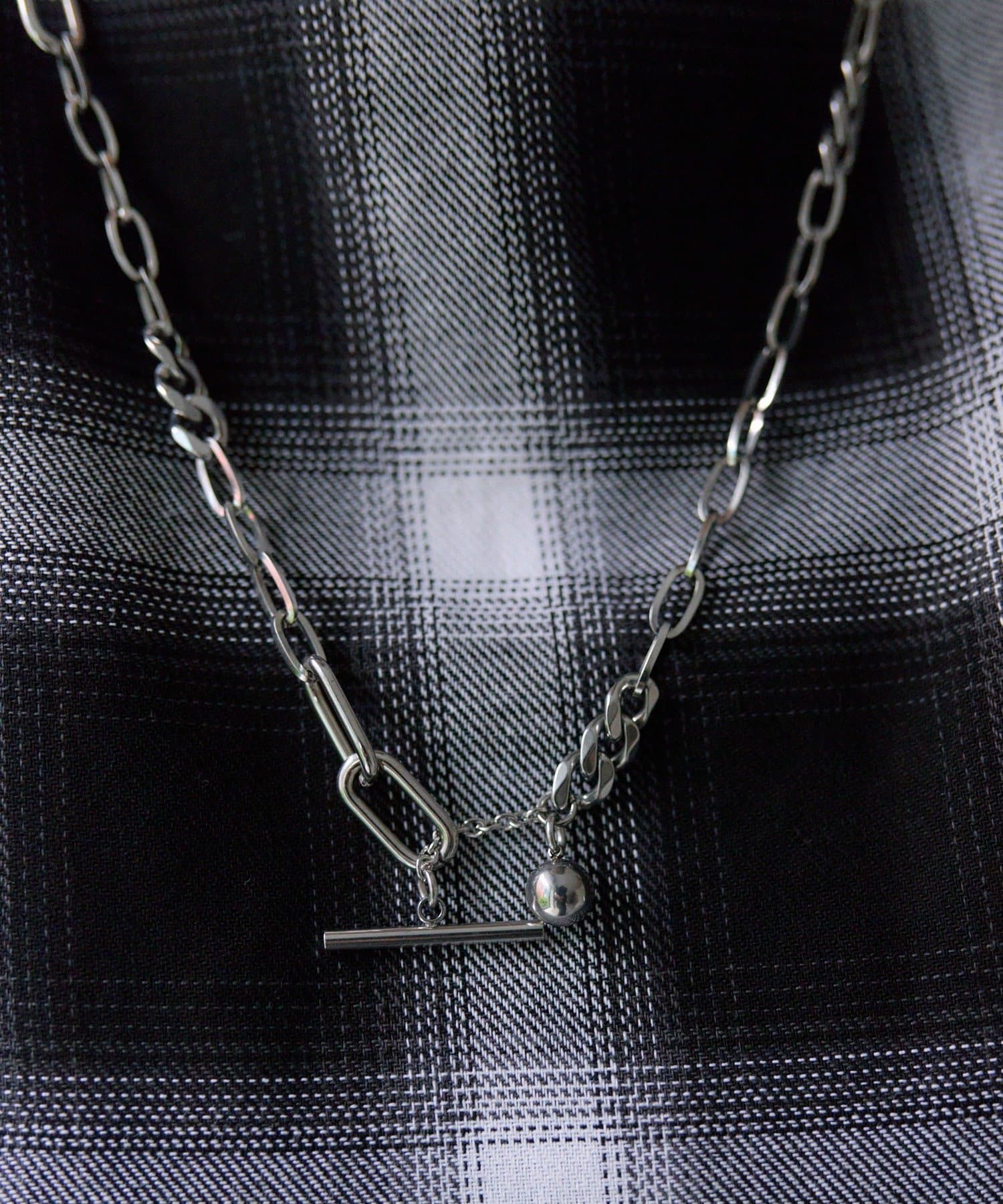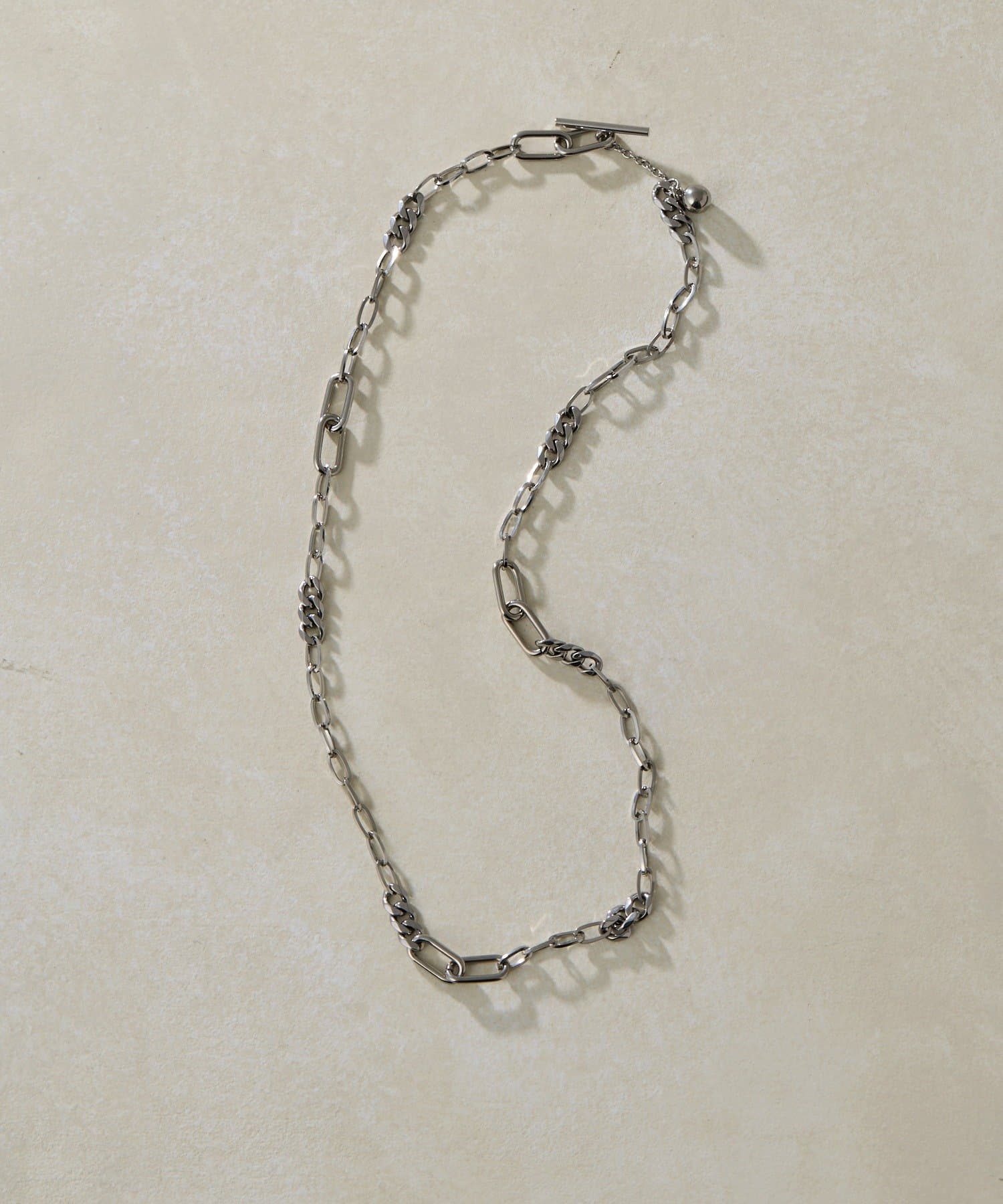 様々なデザインチェーンを組み合わせた、こだわりの詰まったネックレスです。