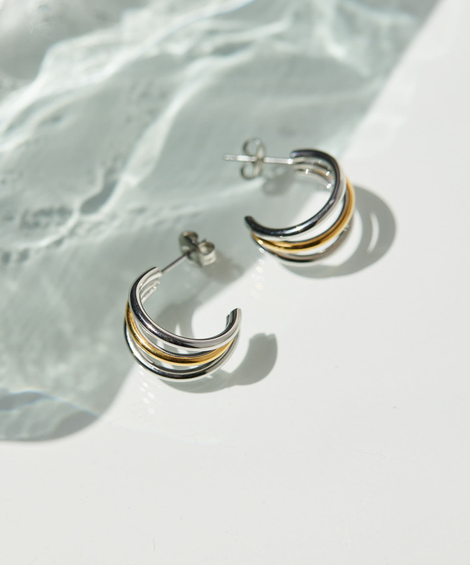 ear PAPILLONNER(イア パピヨネ) 《金属アレルギー対応/ステンレス》バイカラースリーフープピアス