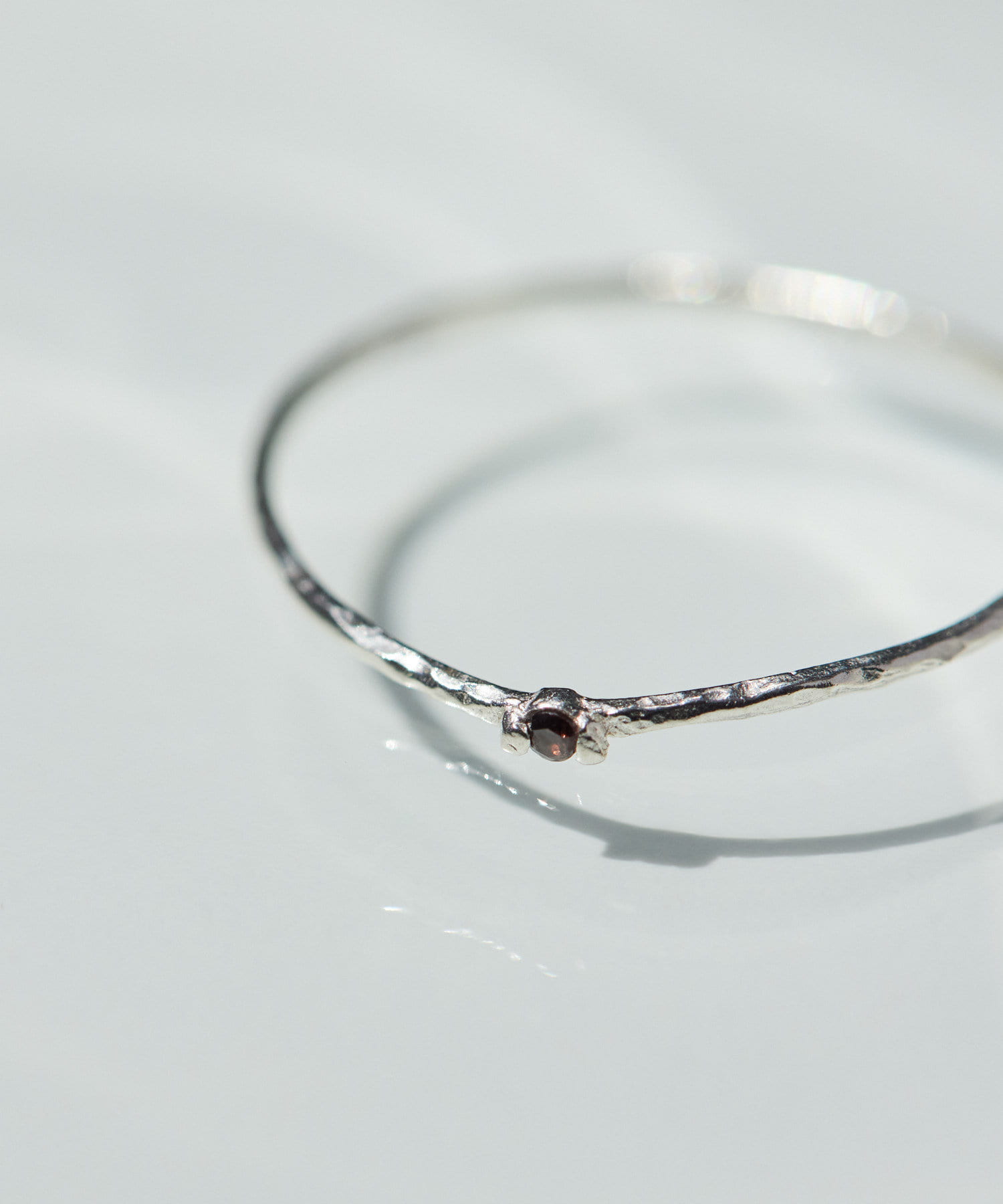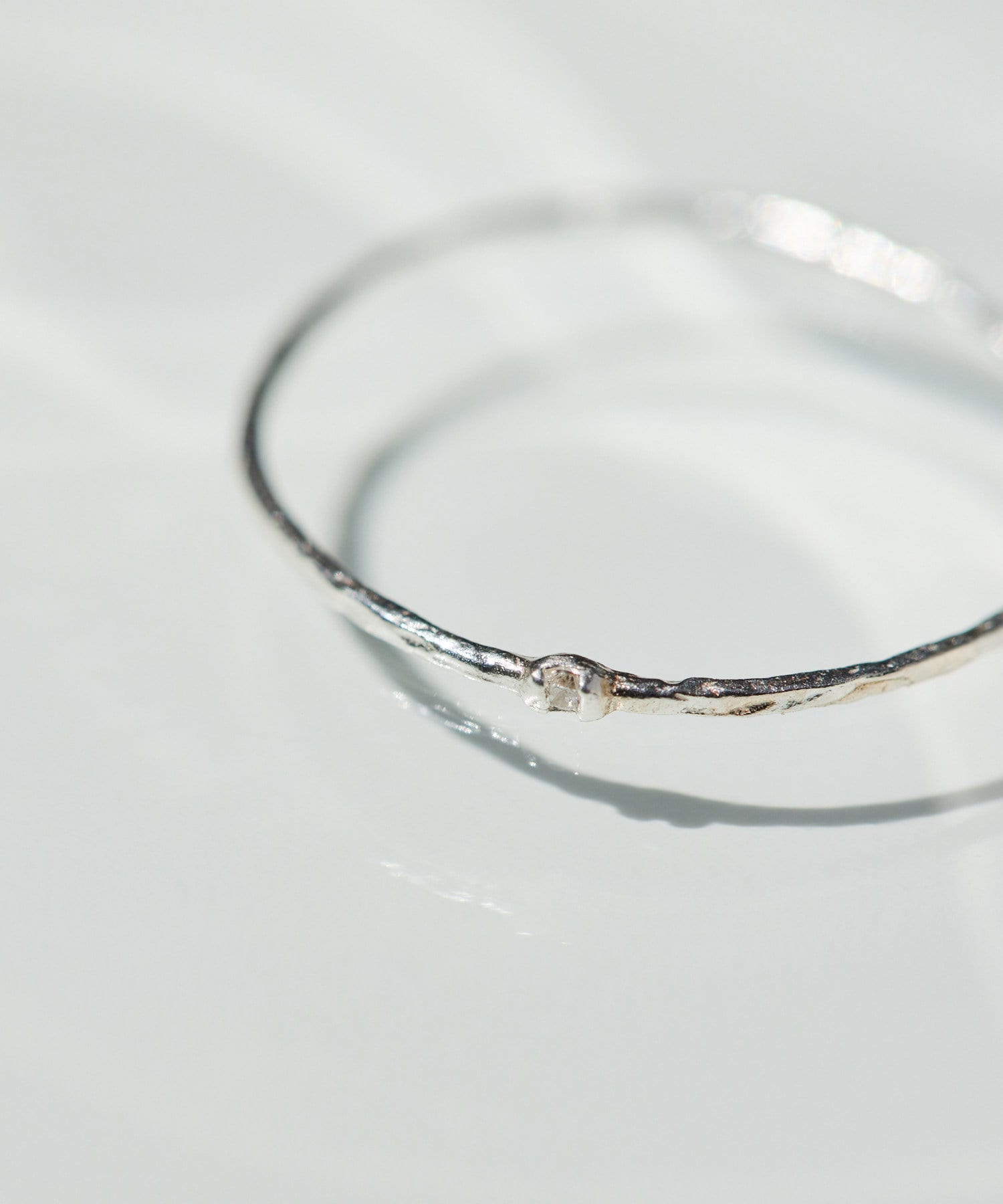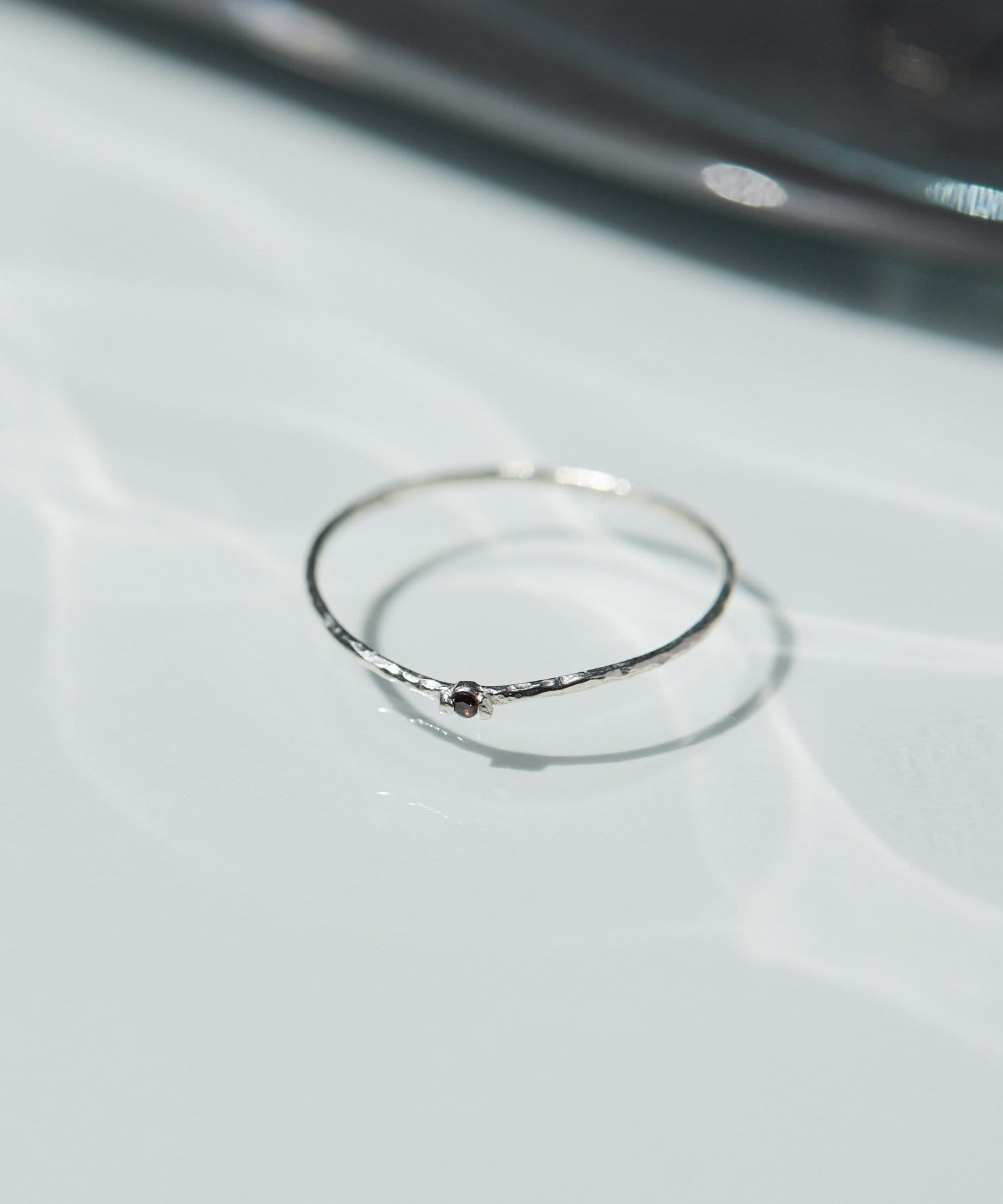 極細のスターリングシルバーリングの中央に、小さなガラスストーンをあしらった繊細なデザイン。