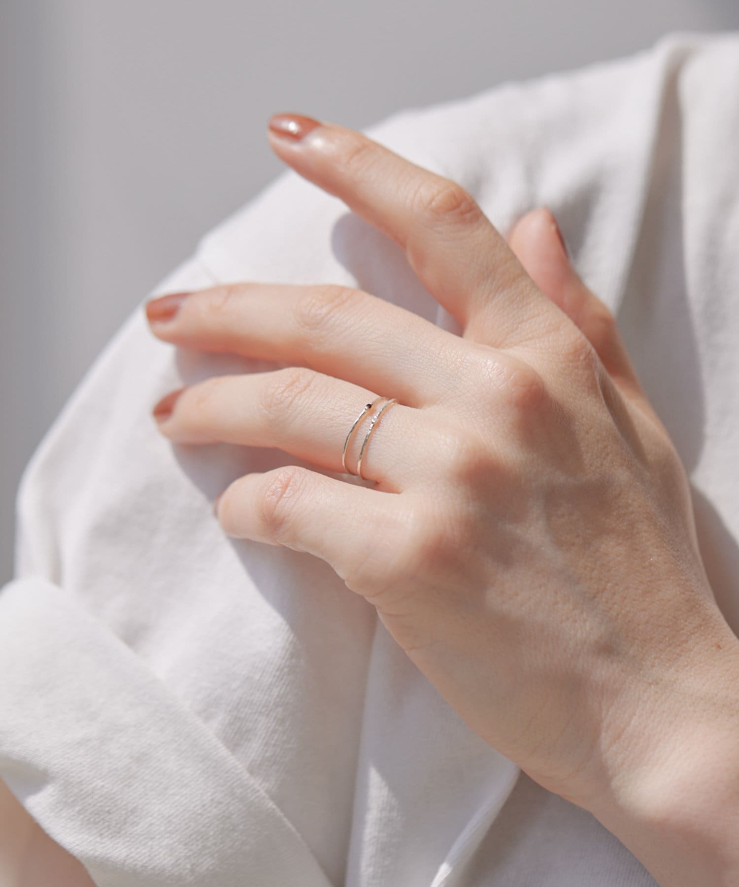 お手持ちのリングとの重ね付けで、さらにアレンジを楽しめます。