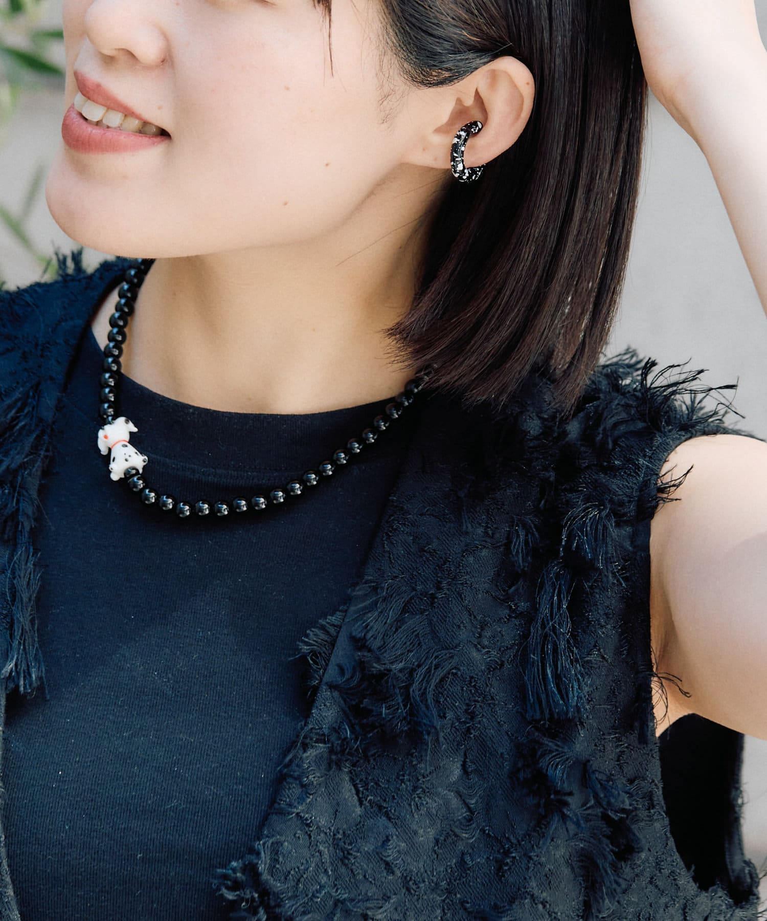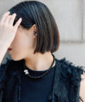 お手持ちのメタルのイヤーカフと重ね付けすれば、さらにエッジの効いたスタイルに。
