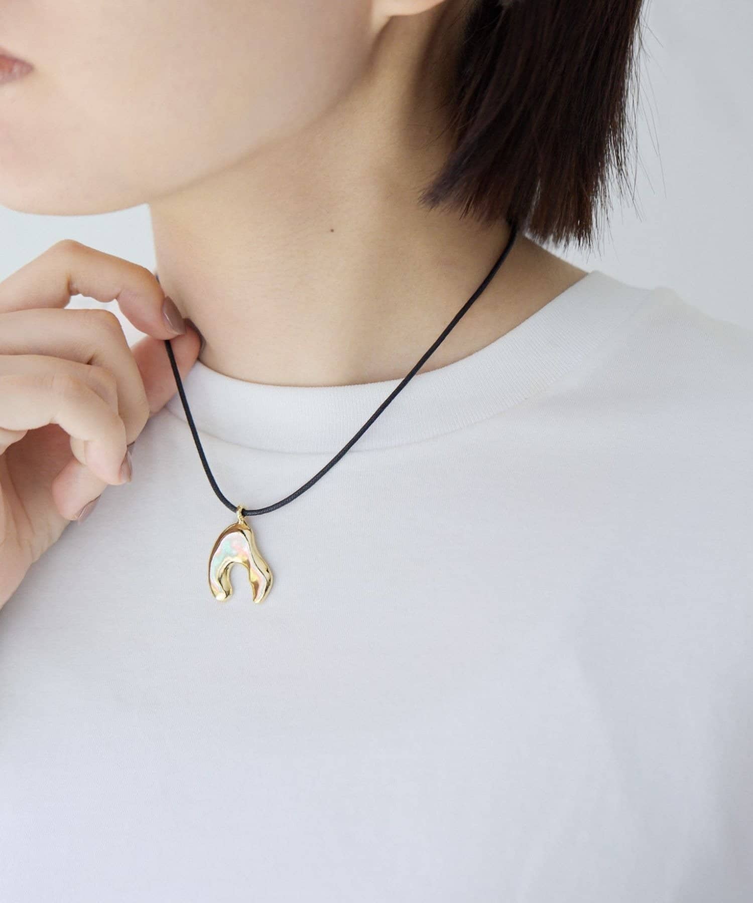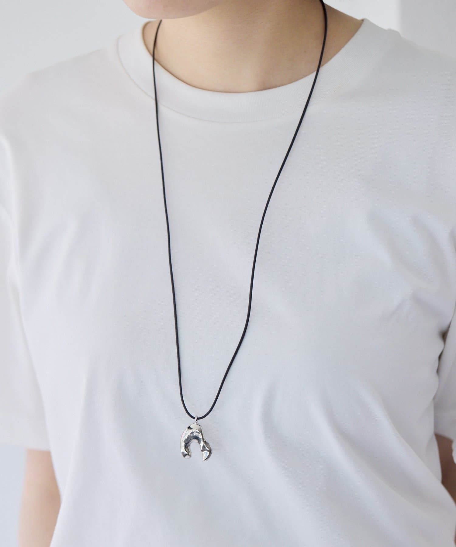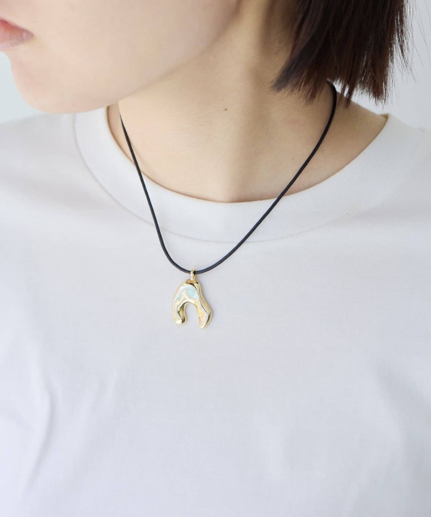 目を引くメタルトップが、胸元に個性をプラスするスライド式ネックレス。