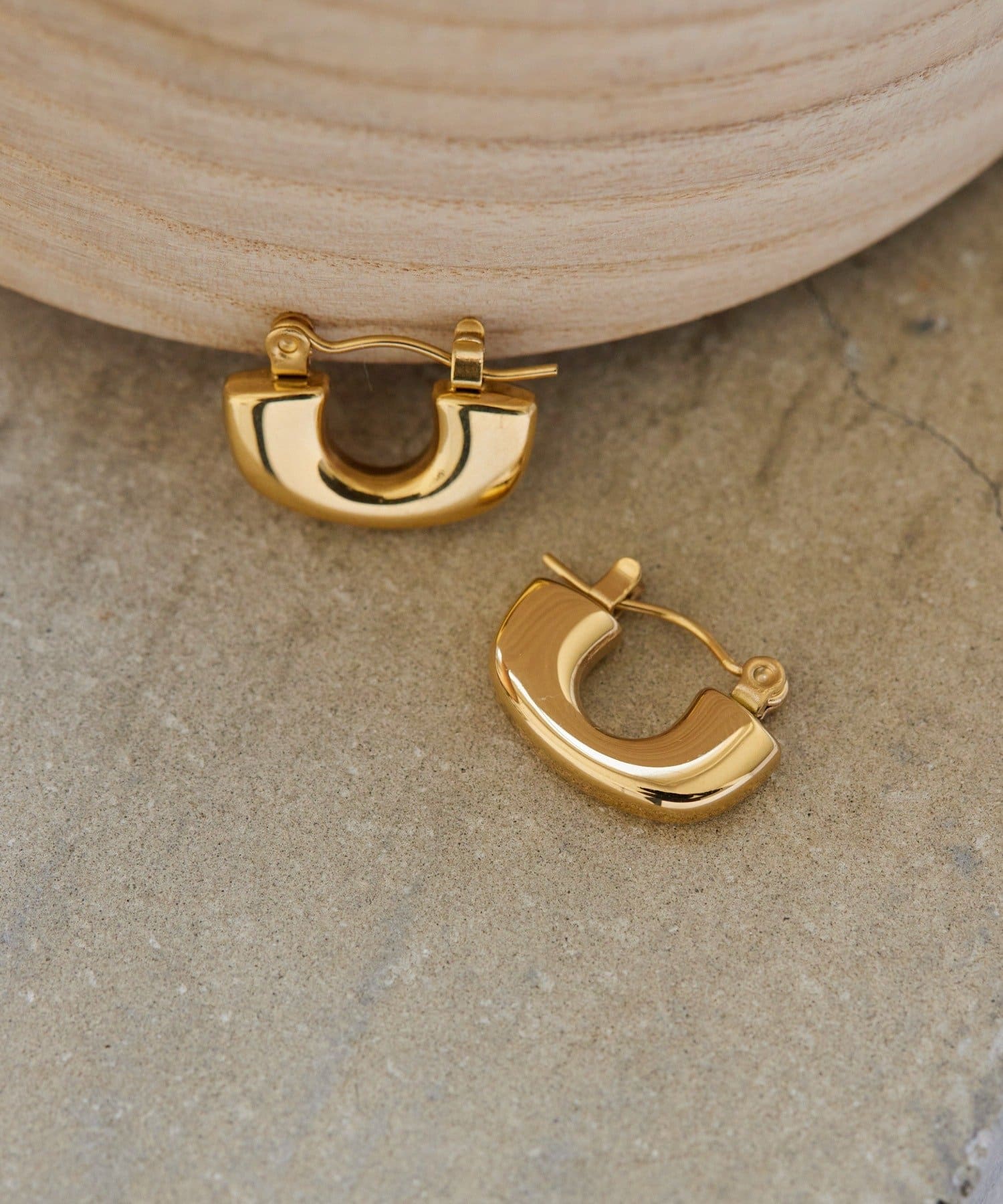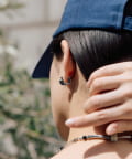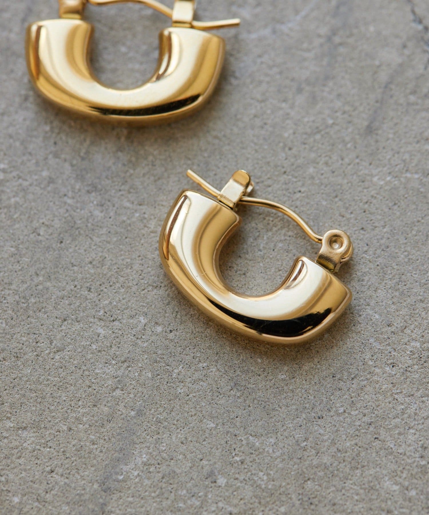 少し変わったフープの形状は、普段のコーディネートにモダンな印象をプラス。