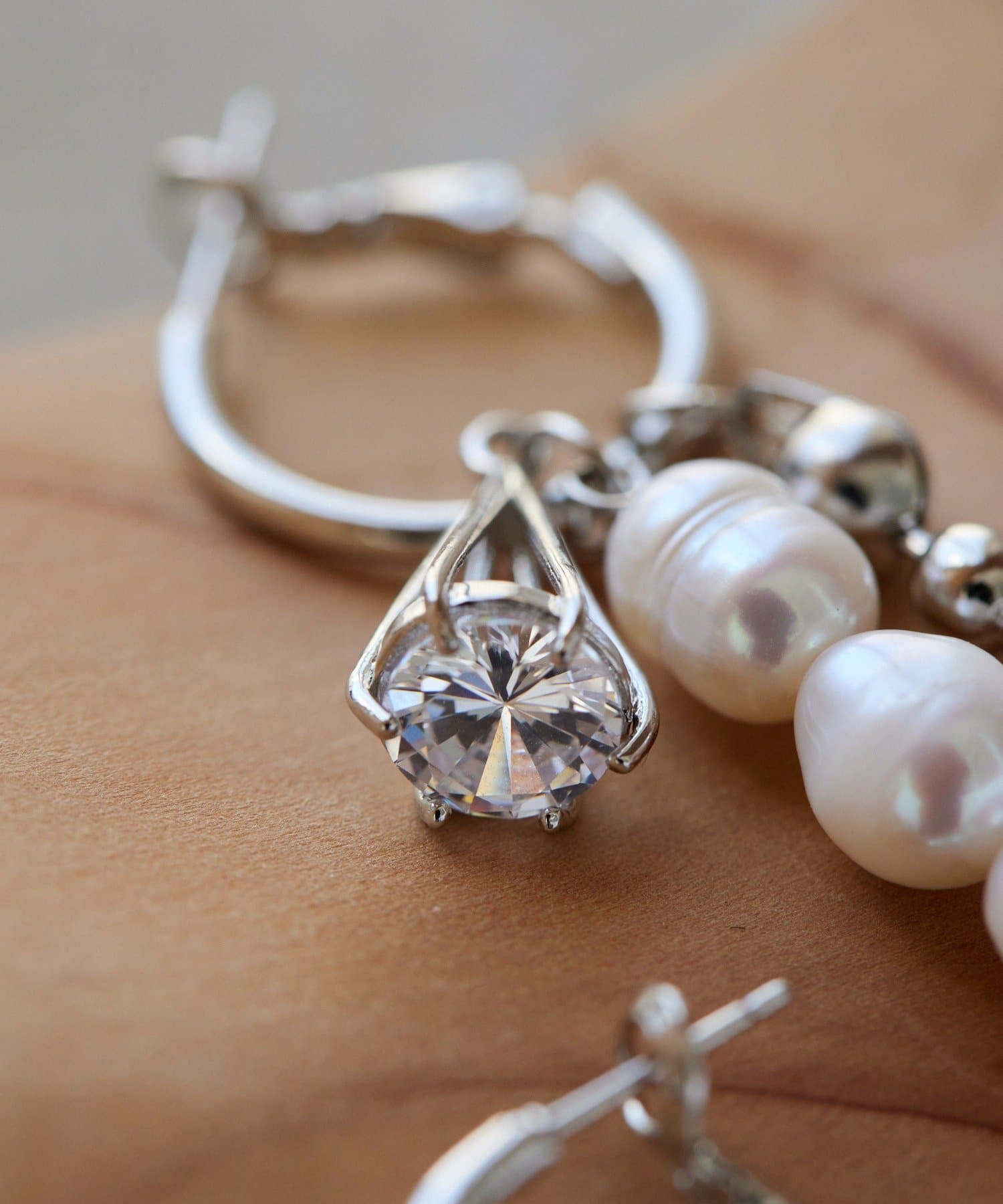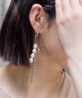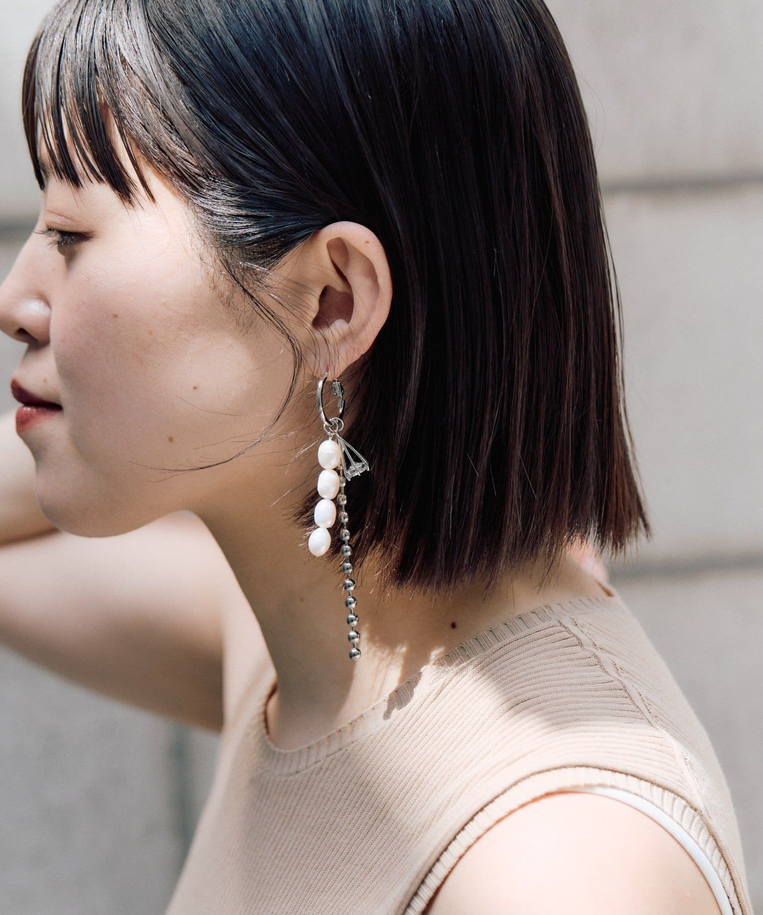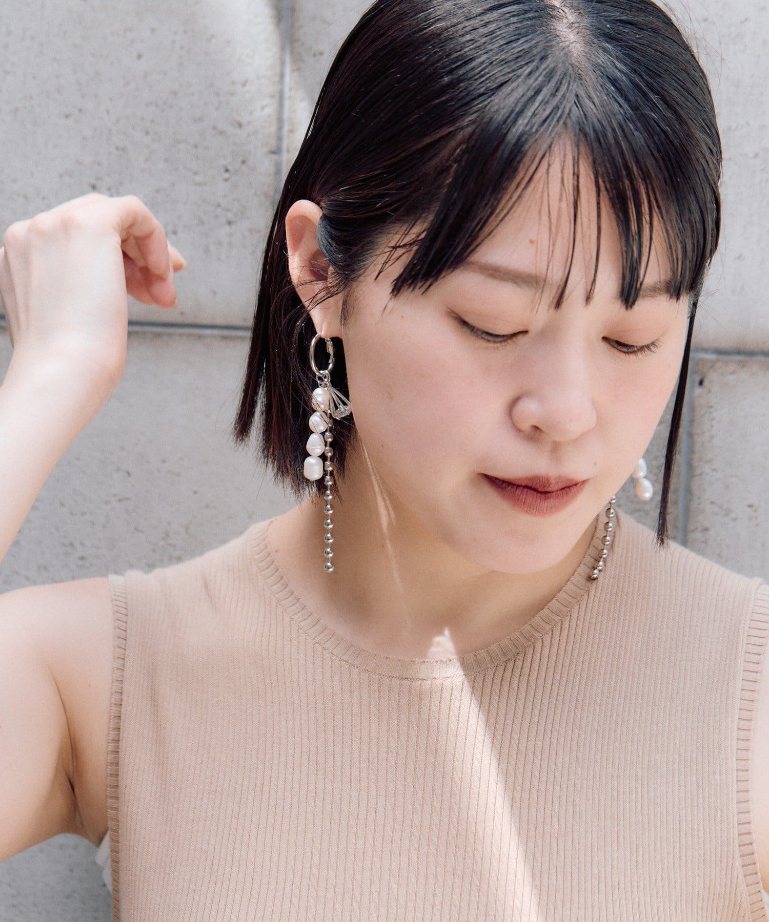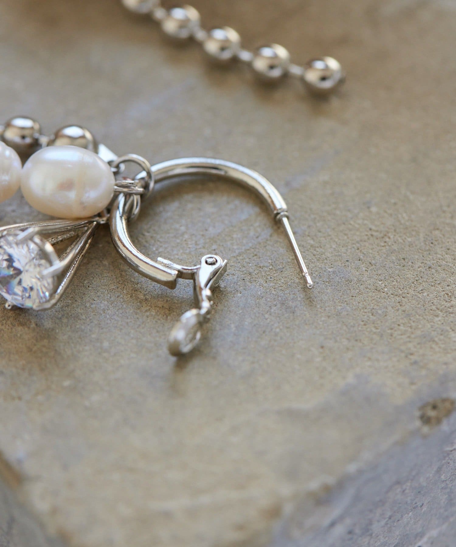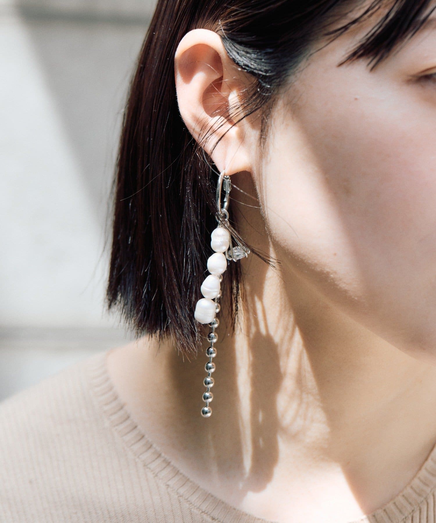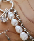 淡水パールの優しい光沢と、クリスタルのクリアな輝き、そしてクールなボールチェーン。
