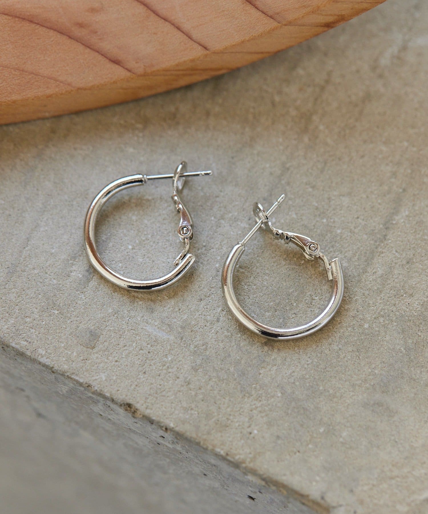 すべてが組み合わさり、不思議な魅力を放つフープピアスです。