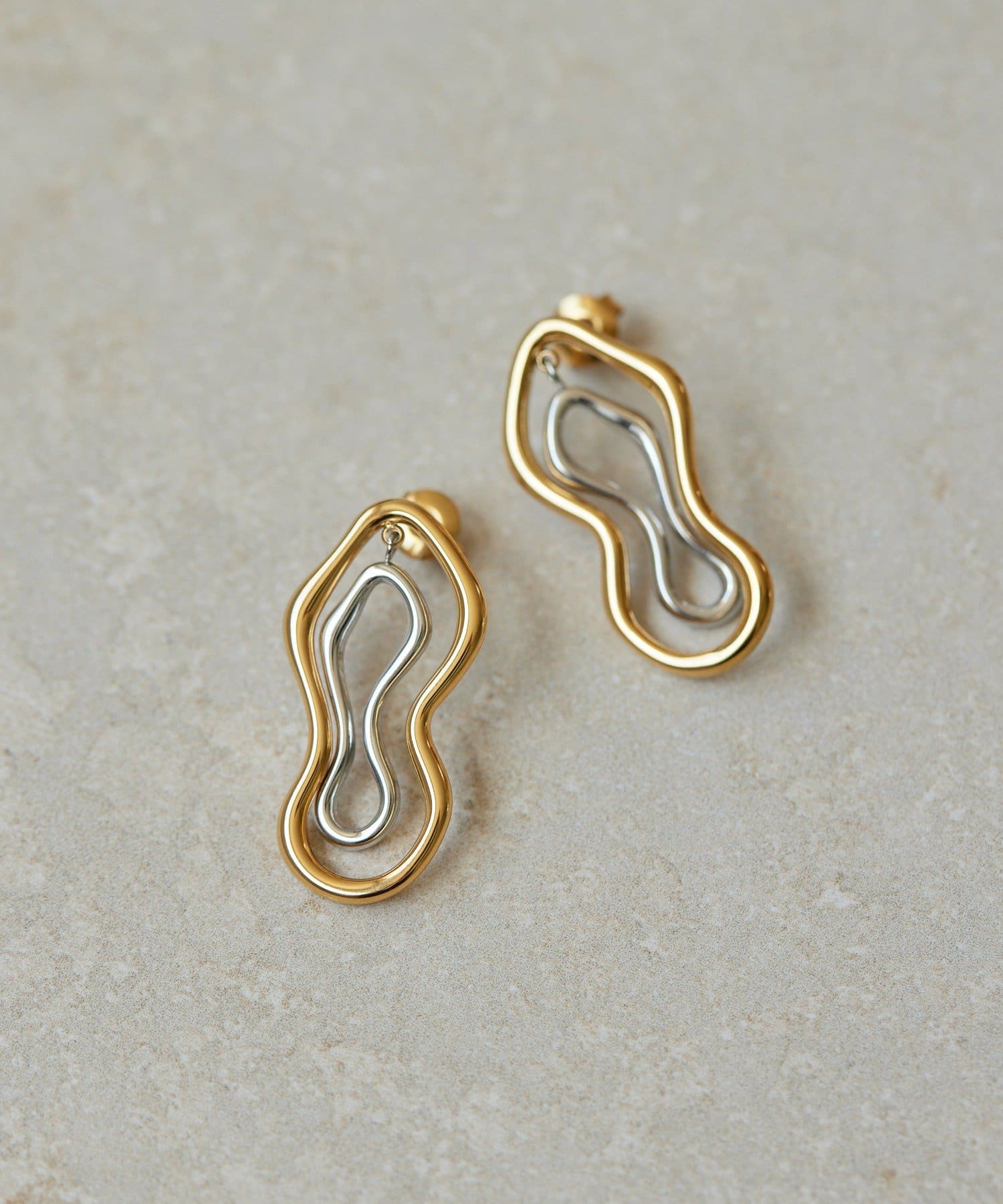 ・不思議な形状が目を引く、バイカラーのピアス