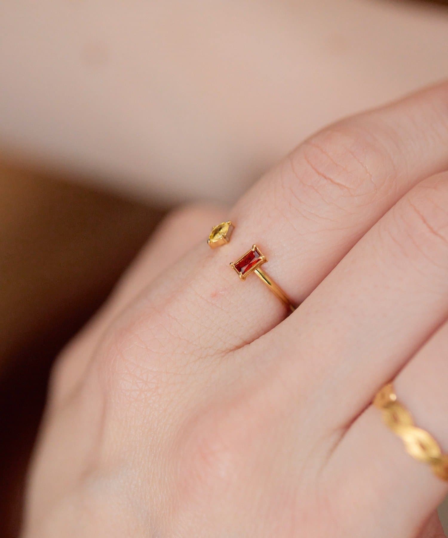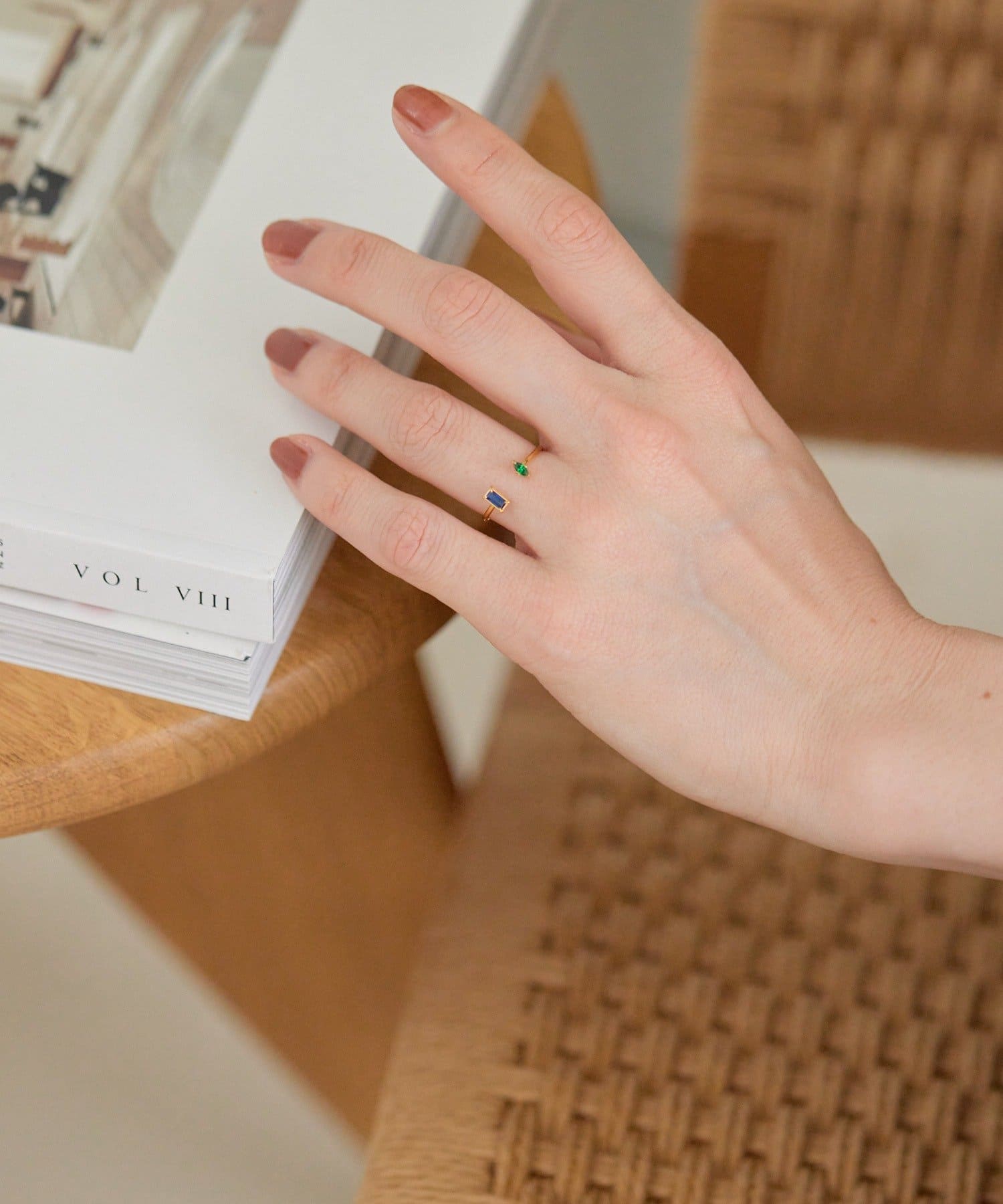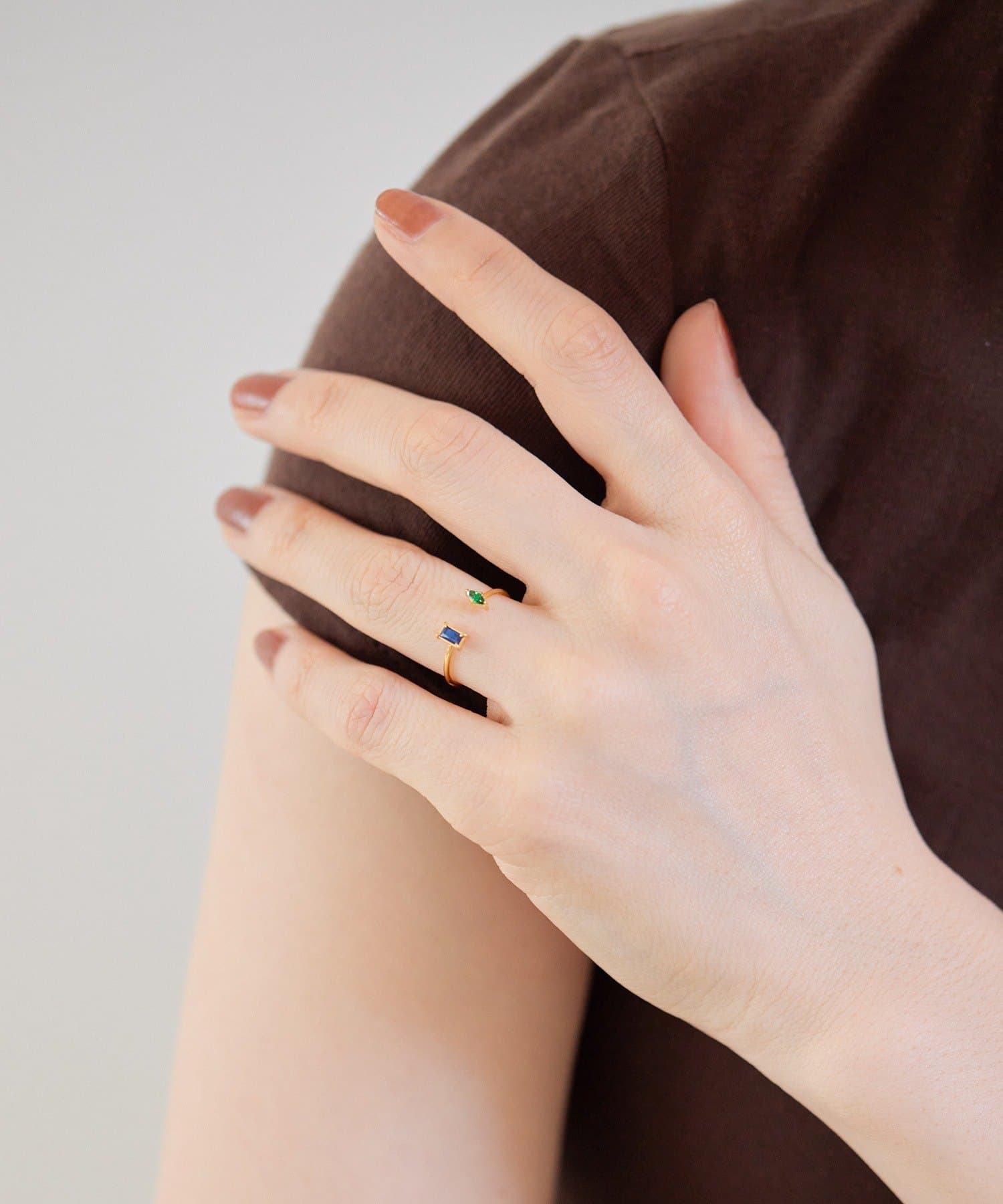 左右で異なる色と形のカラージルコニアが、手元に遊び心をプラスします。
