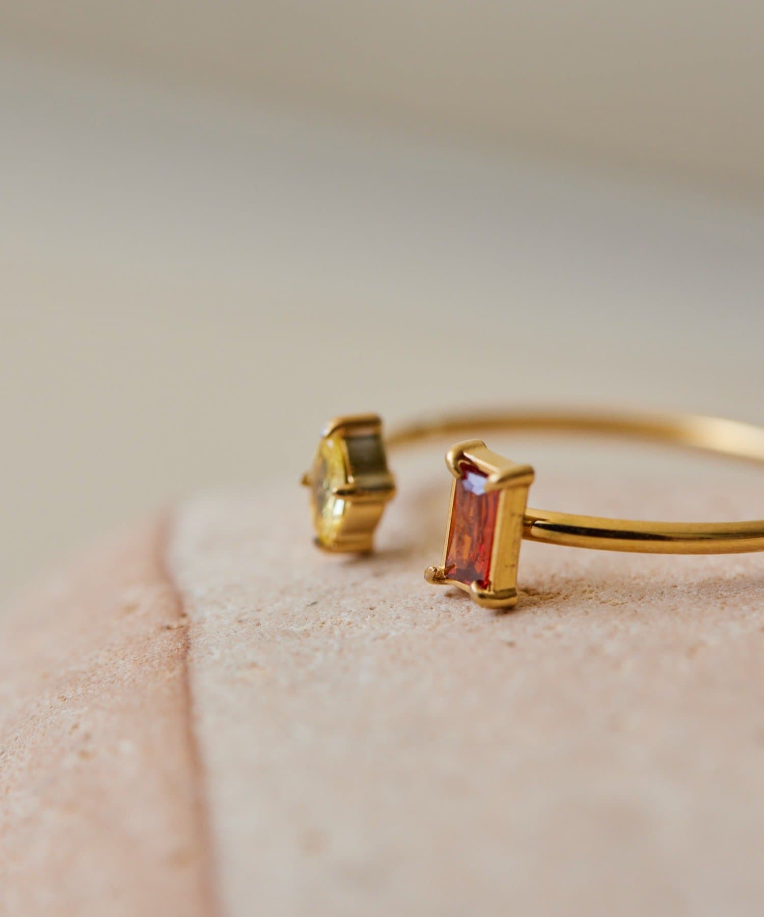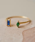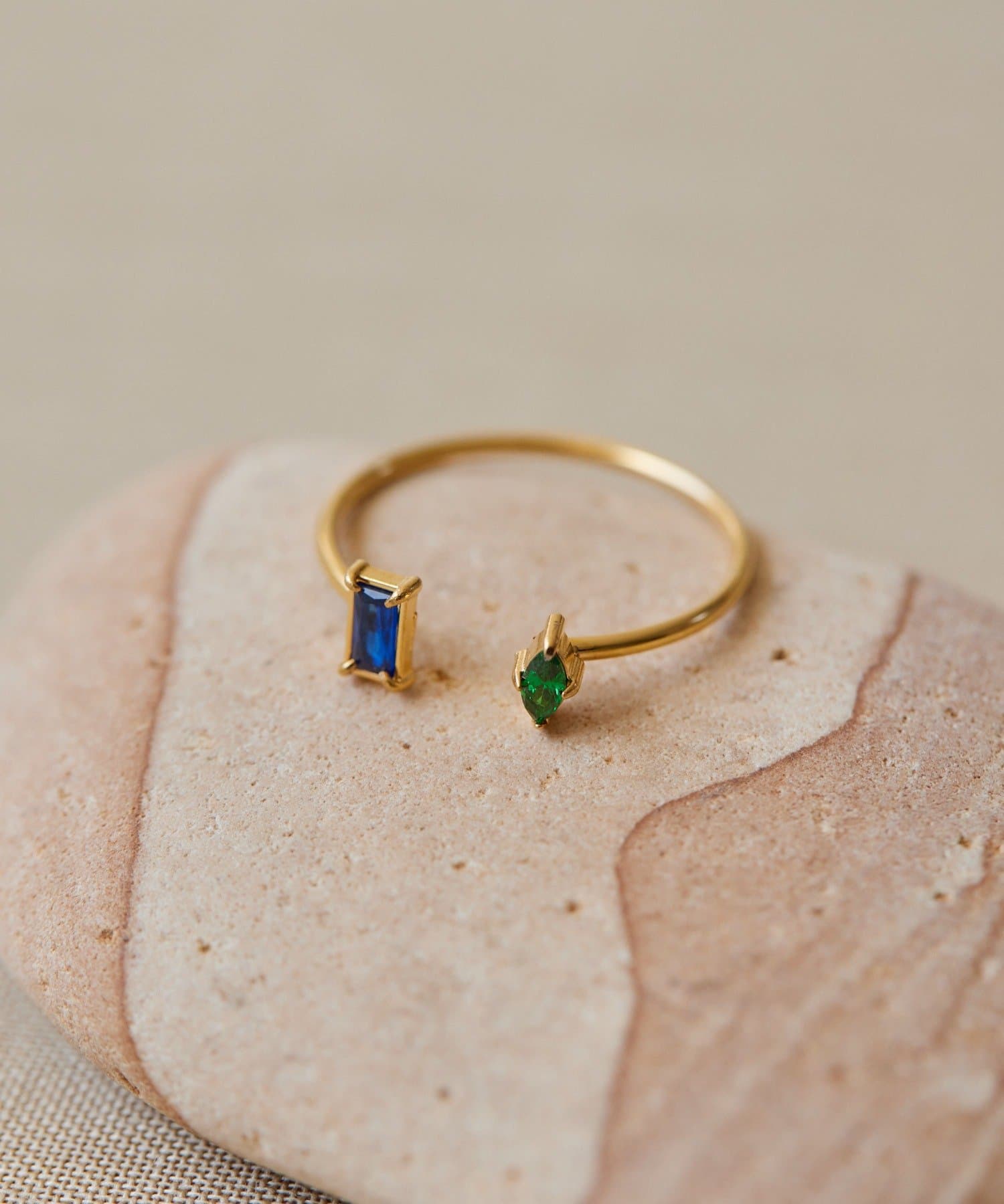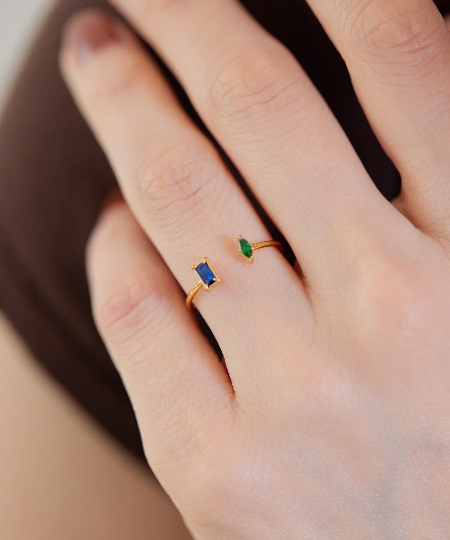 左右で異なる色と形のカラージルコニアが、手元に遊び心をプラスします。