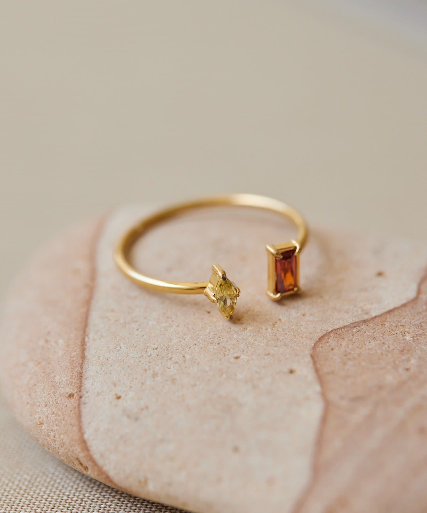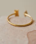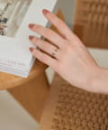 カジュアルからモードまで、幅広いスタイルに合わせやすい、個性的なリングです。