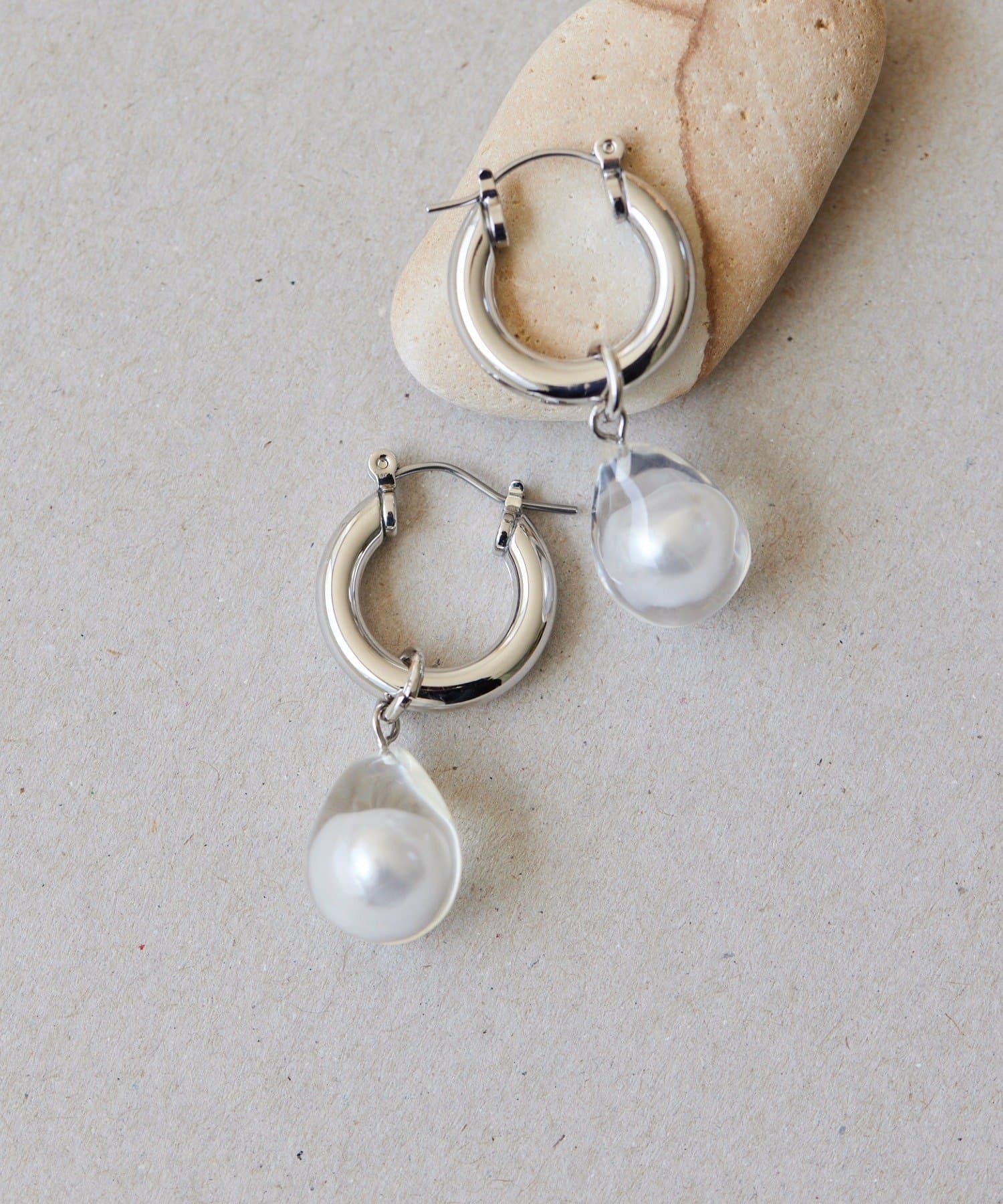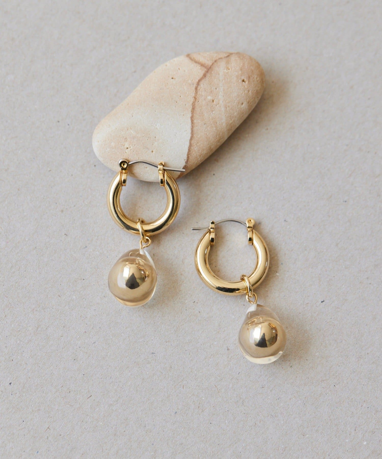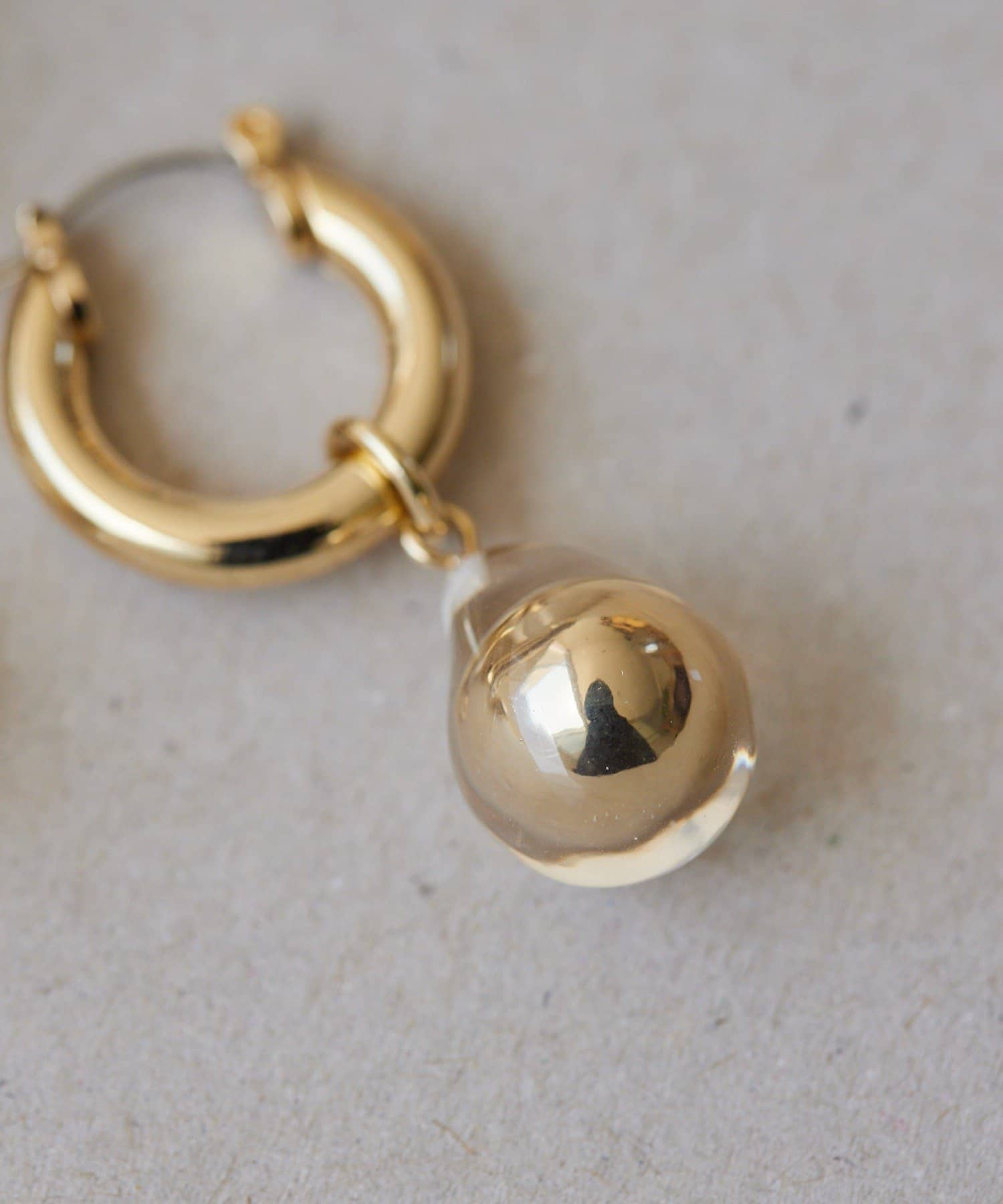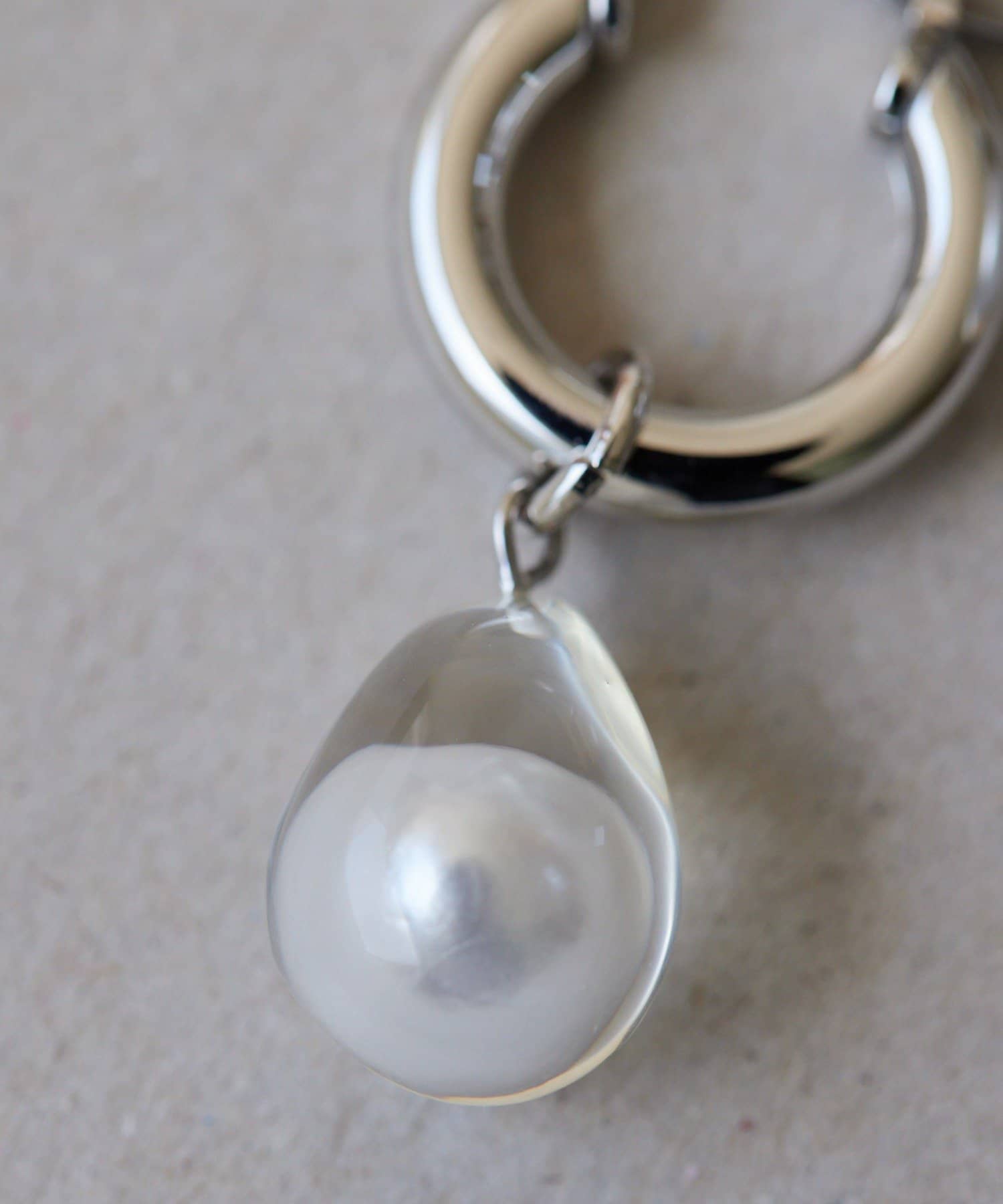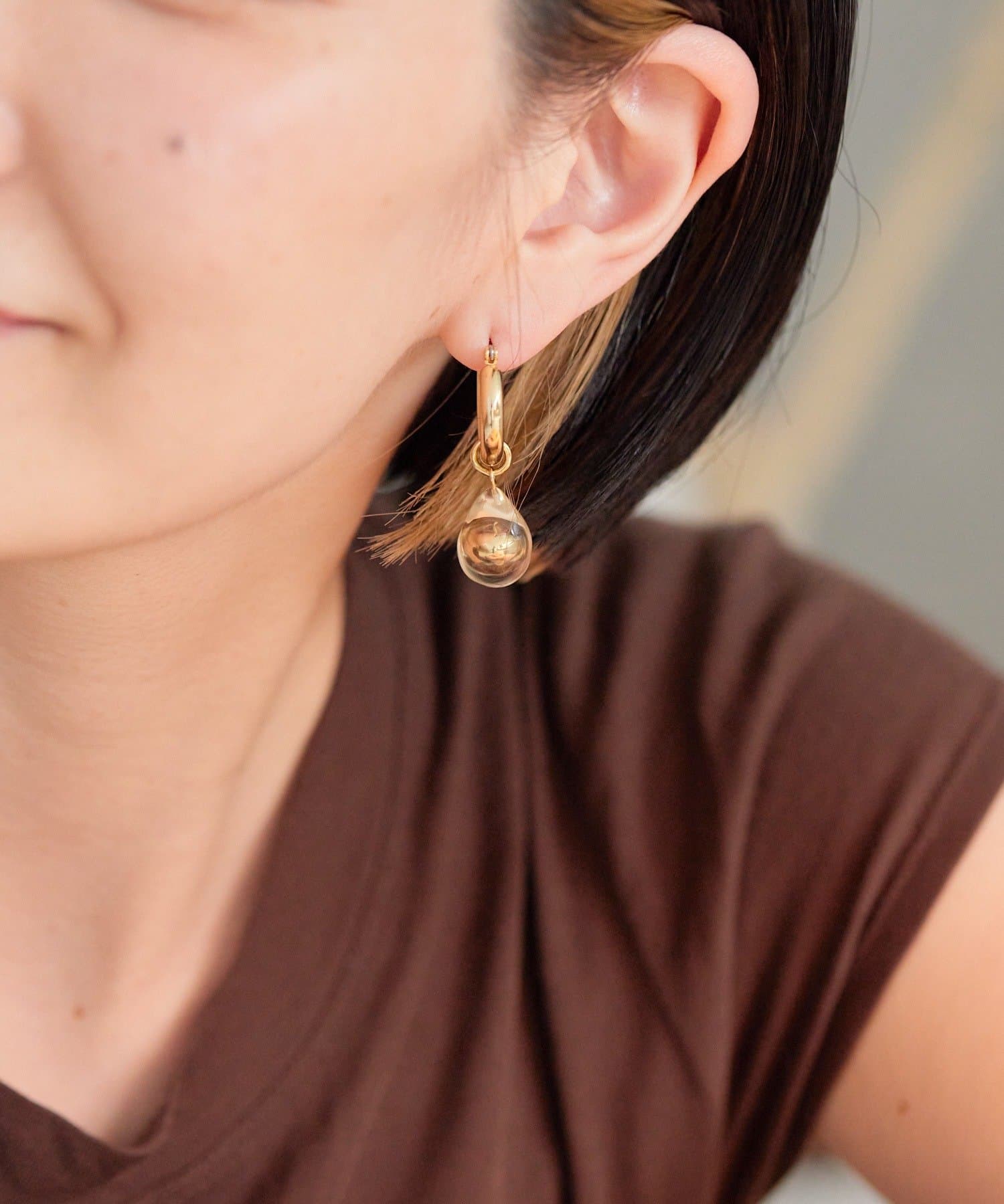 ・透明樹脂に封入したボールが涼し気に揺れるフープピアス