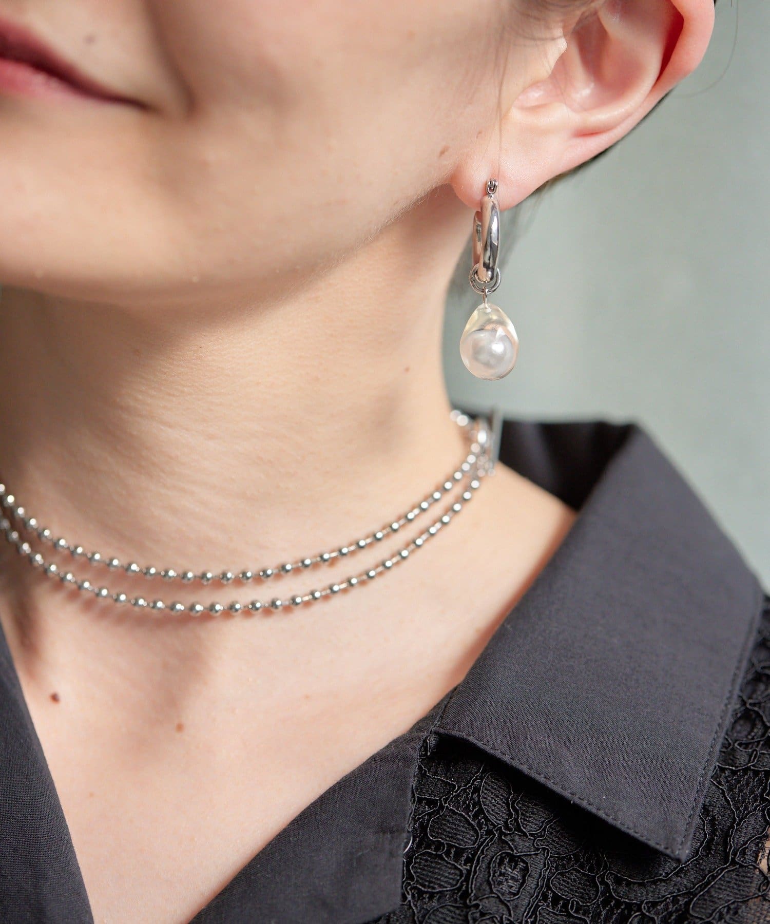 耳元で涼しげに揺れる、インサイドボールフープピアス。