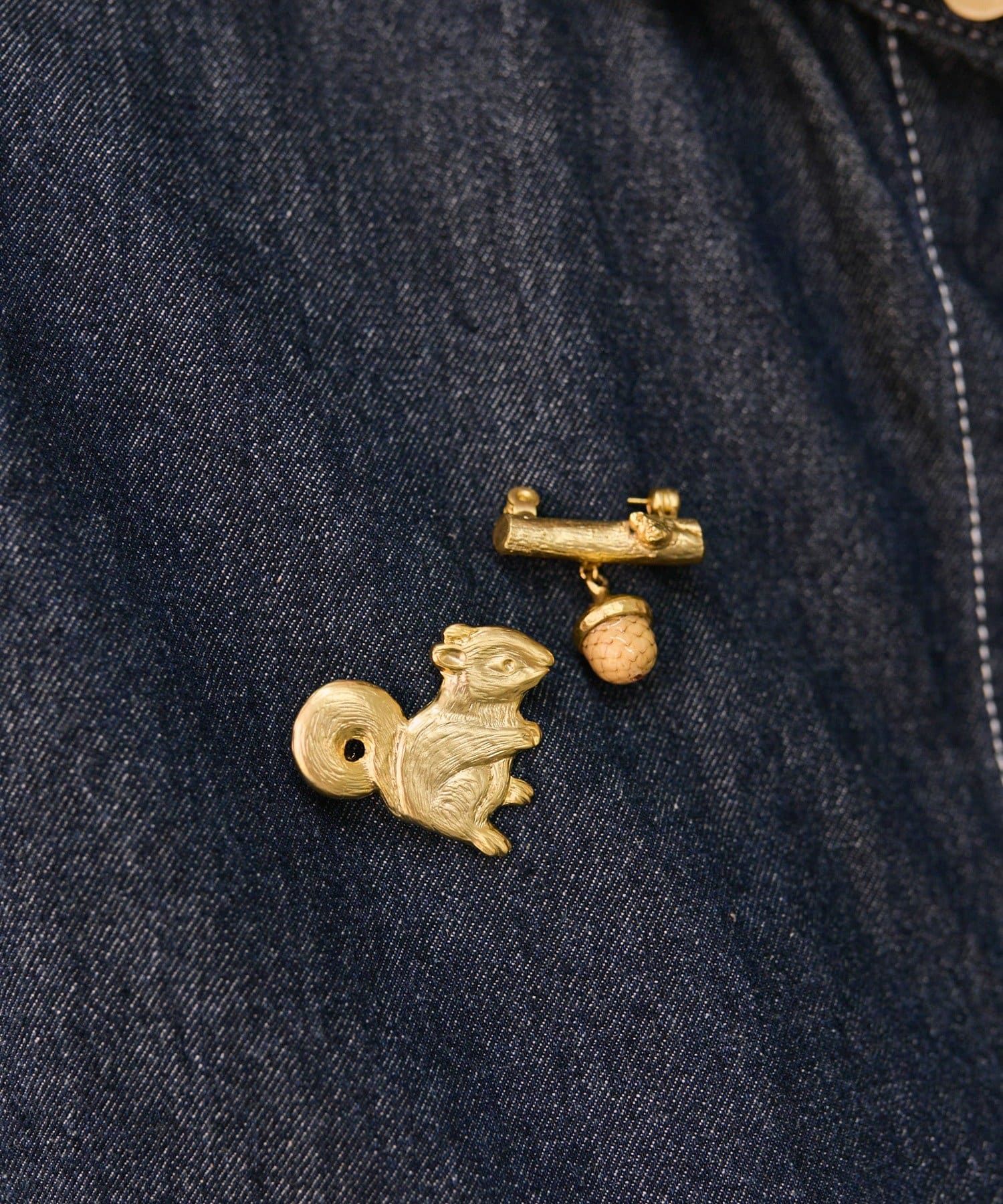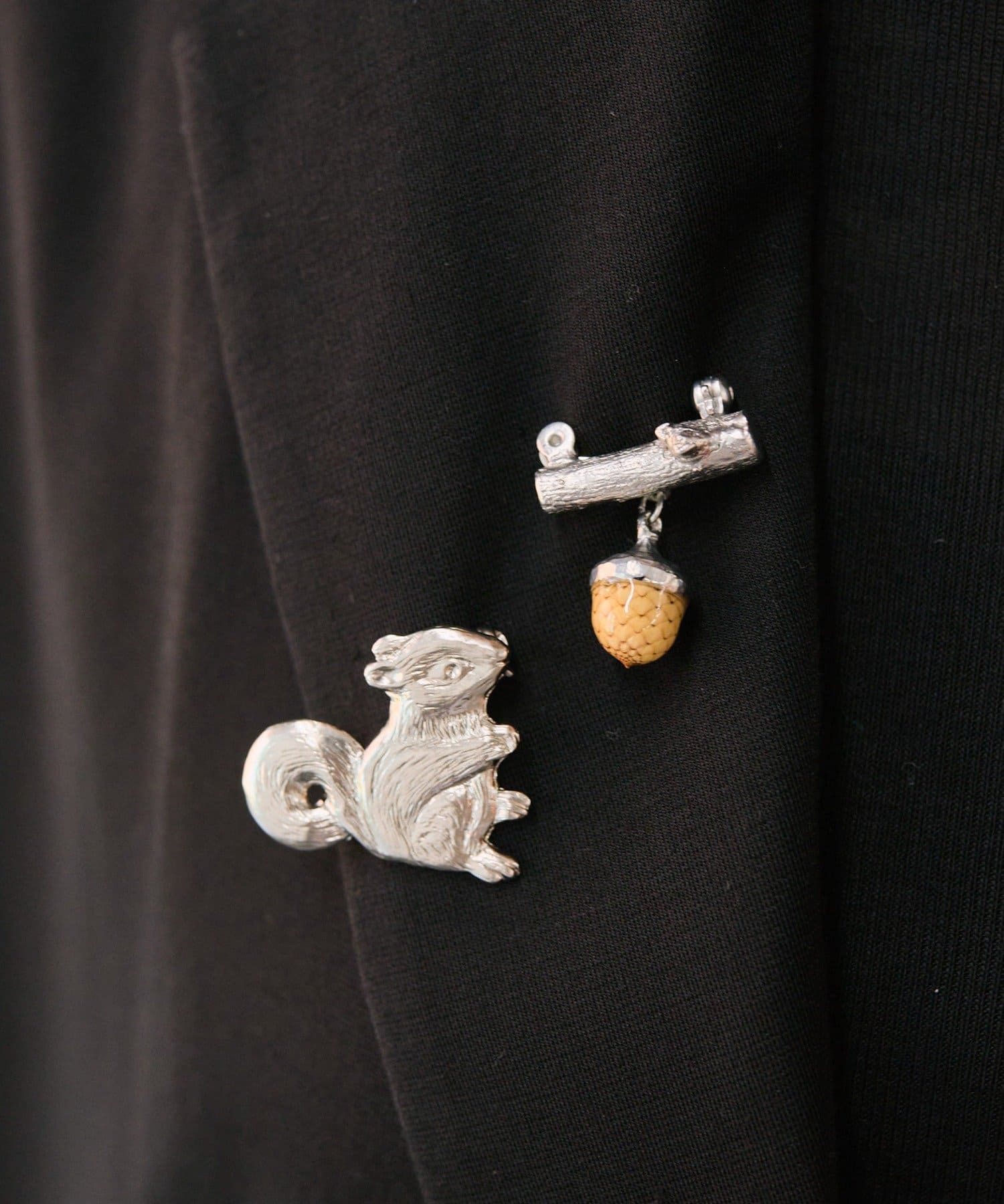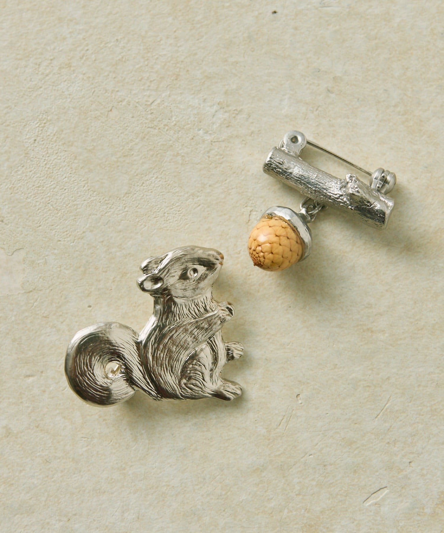 【ear PAPILLONNER】リスとどんぐりブローチ