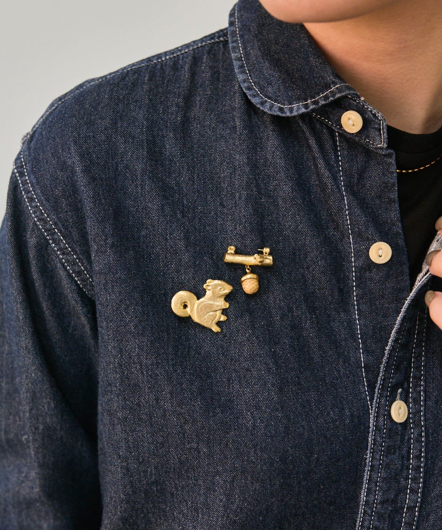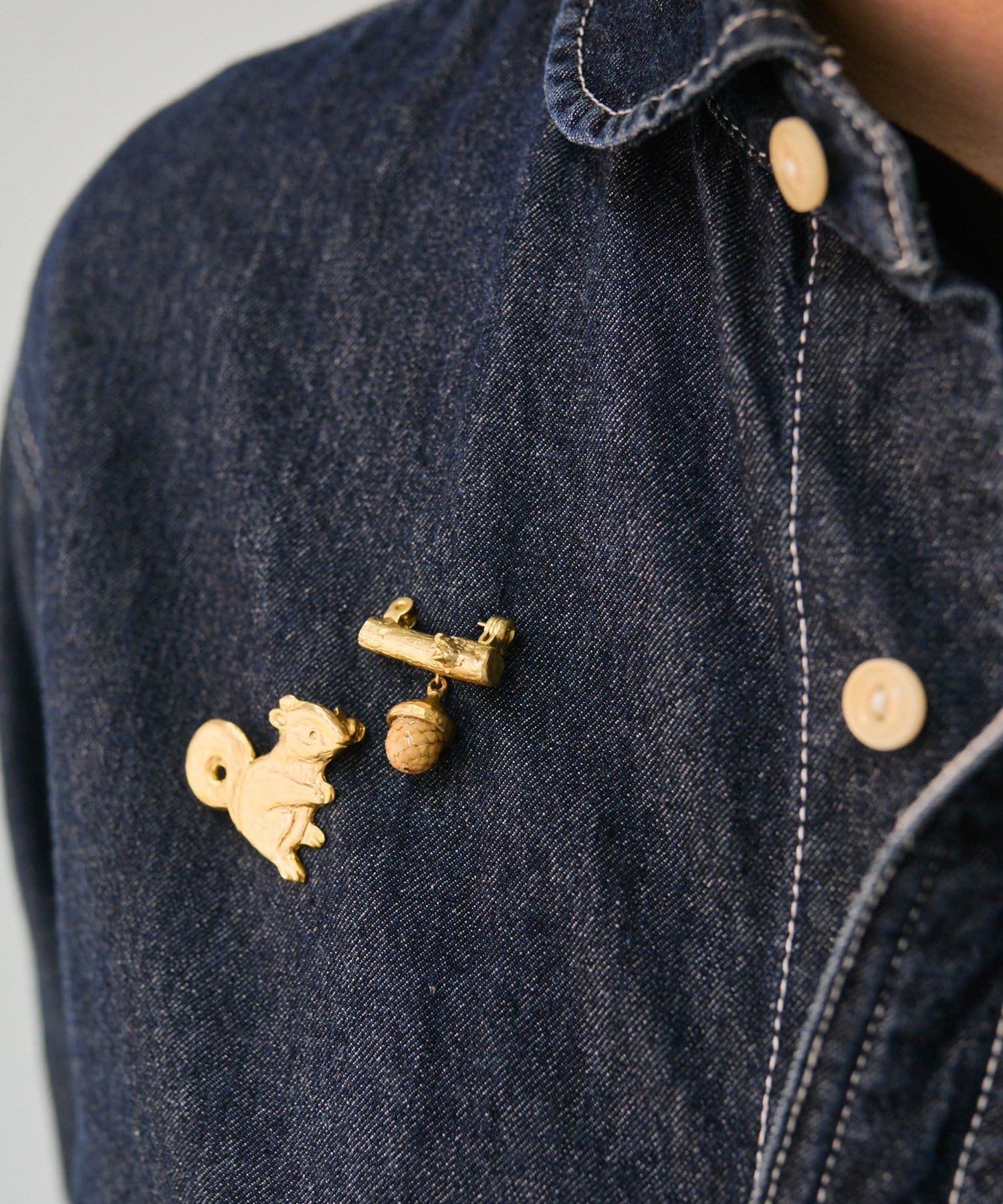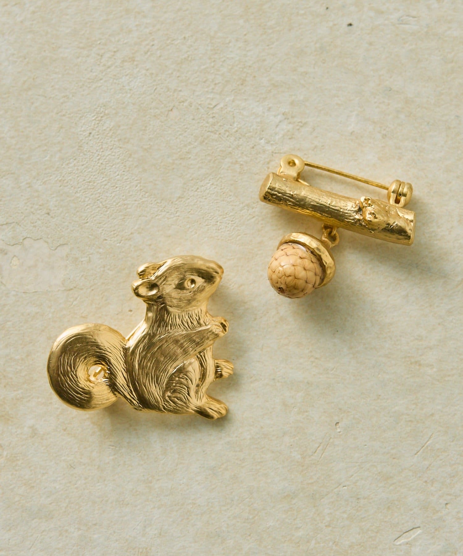 【ear PAPILLONNER】リスとどんぐりブローチ
