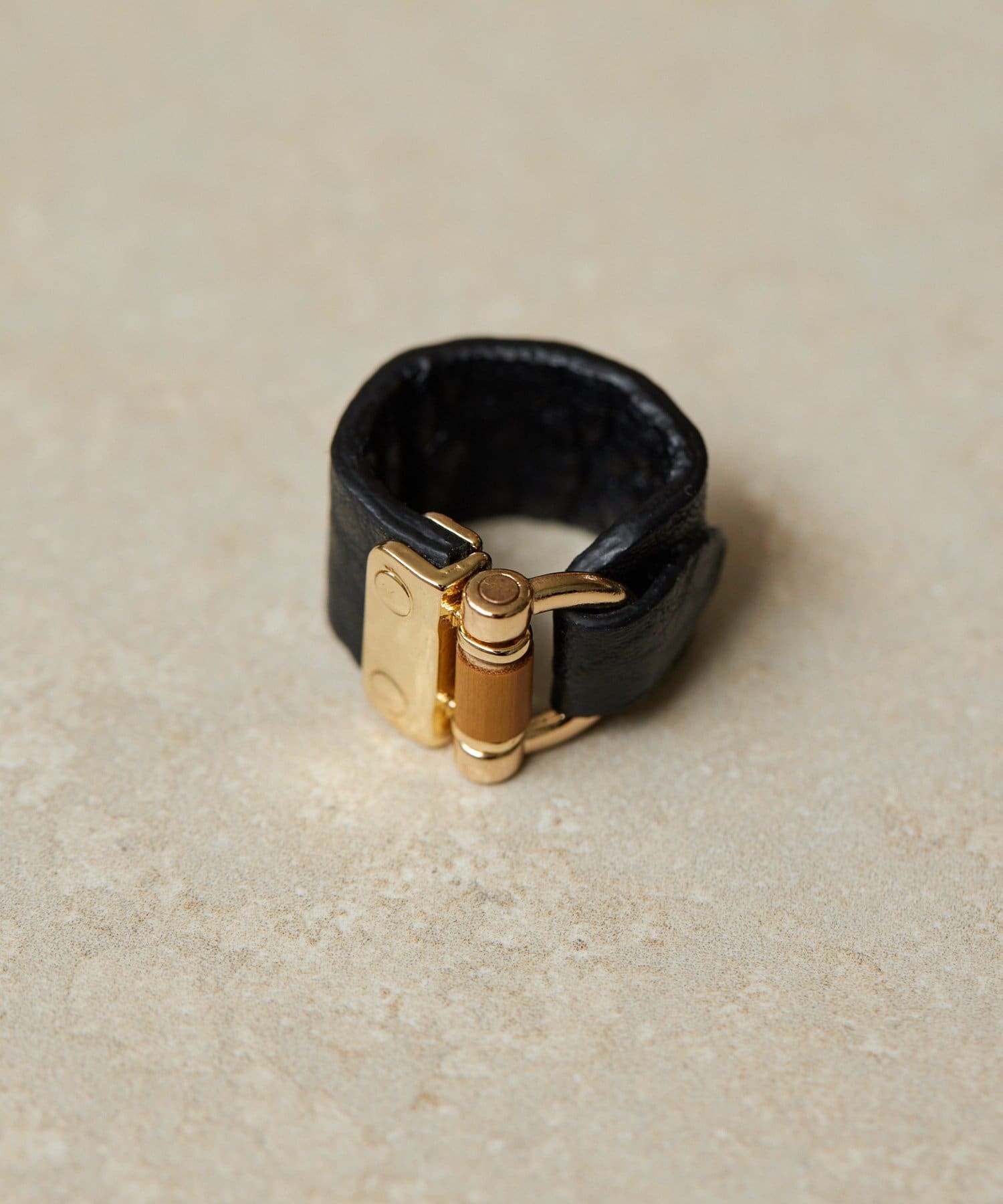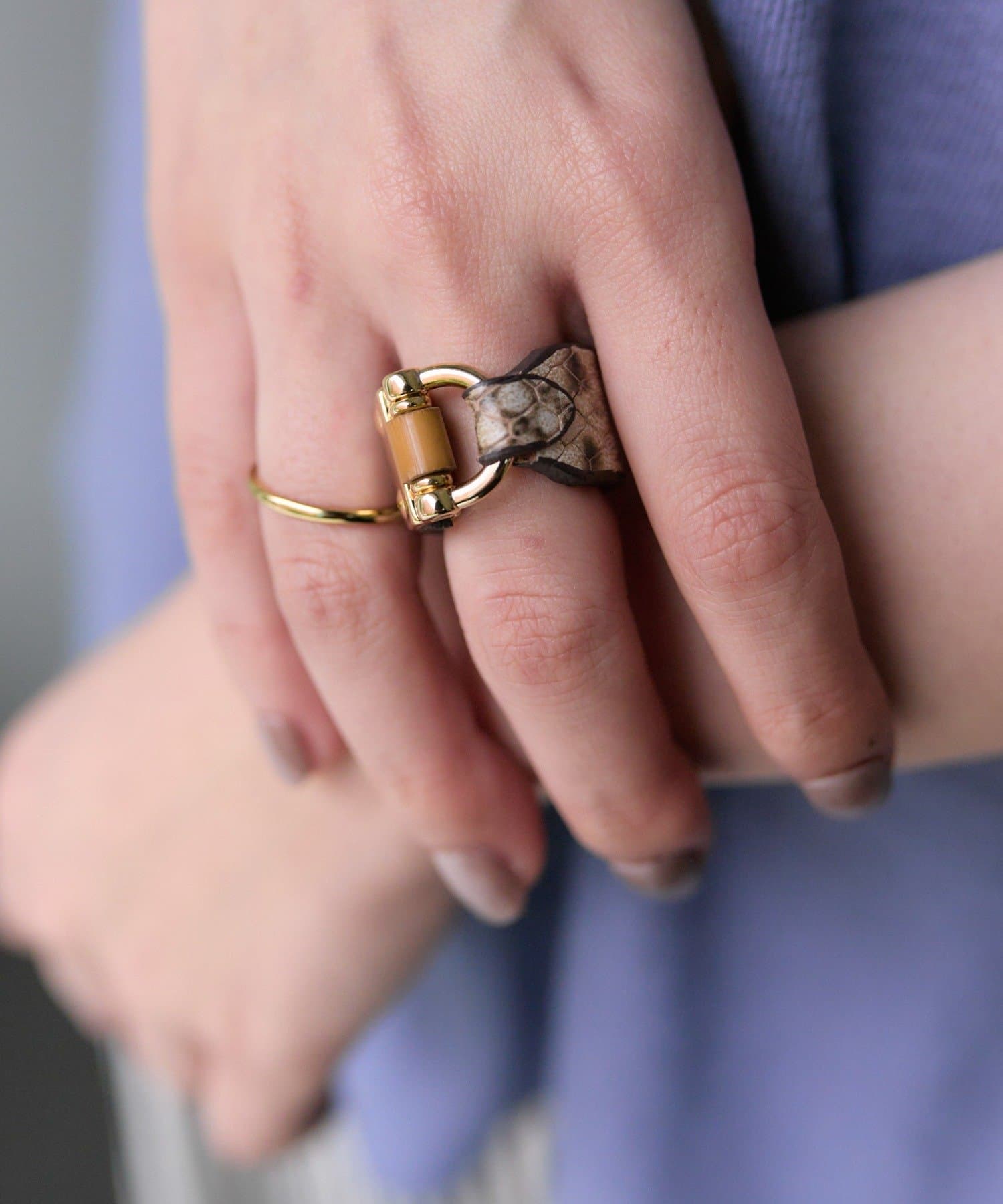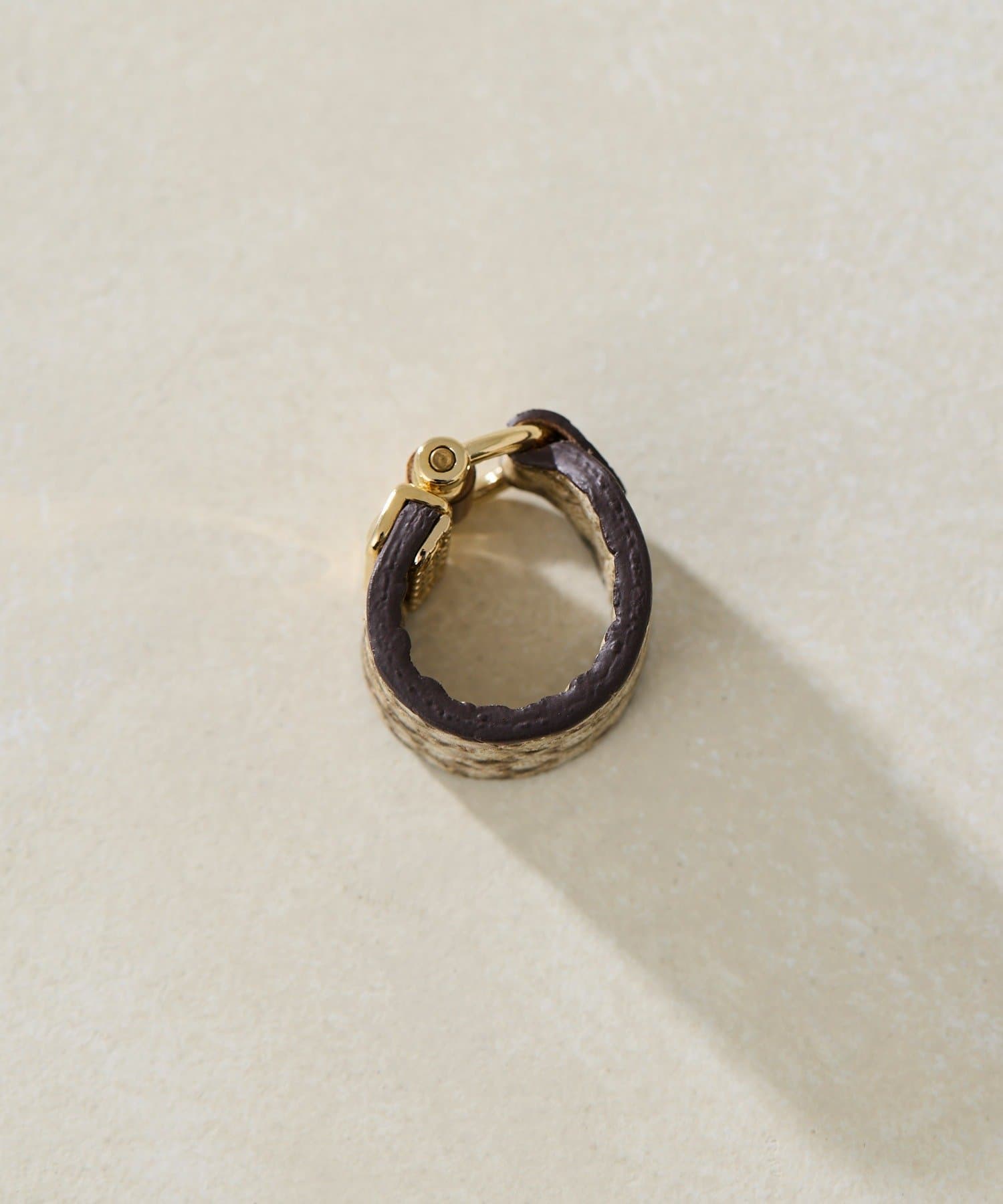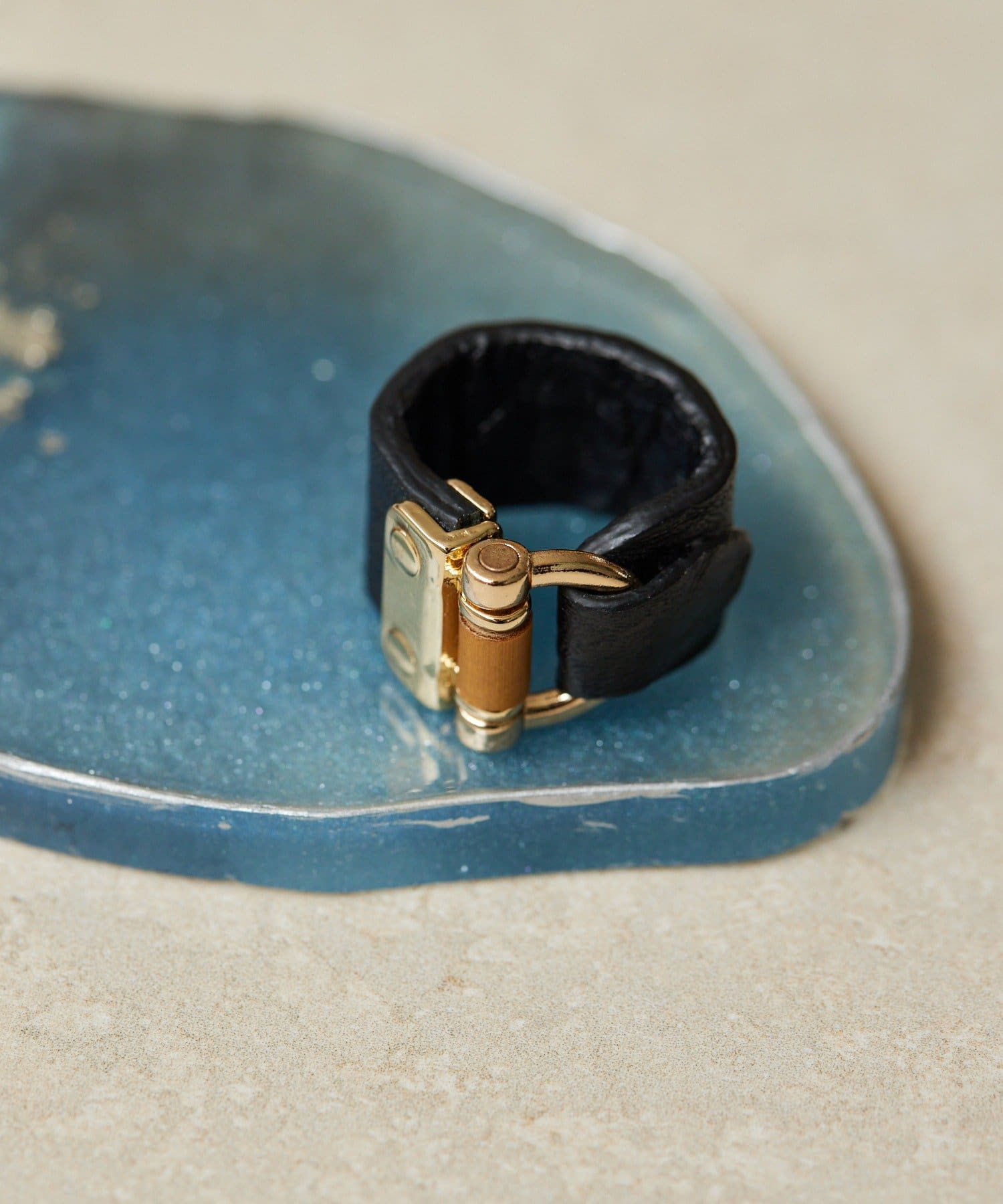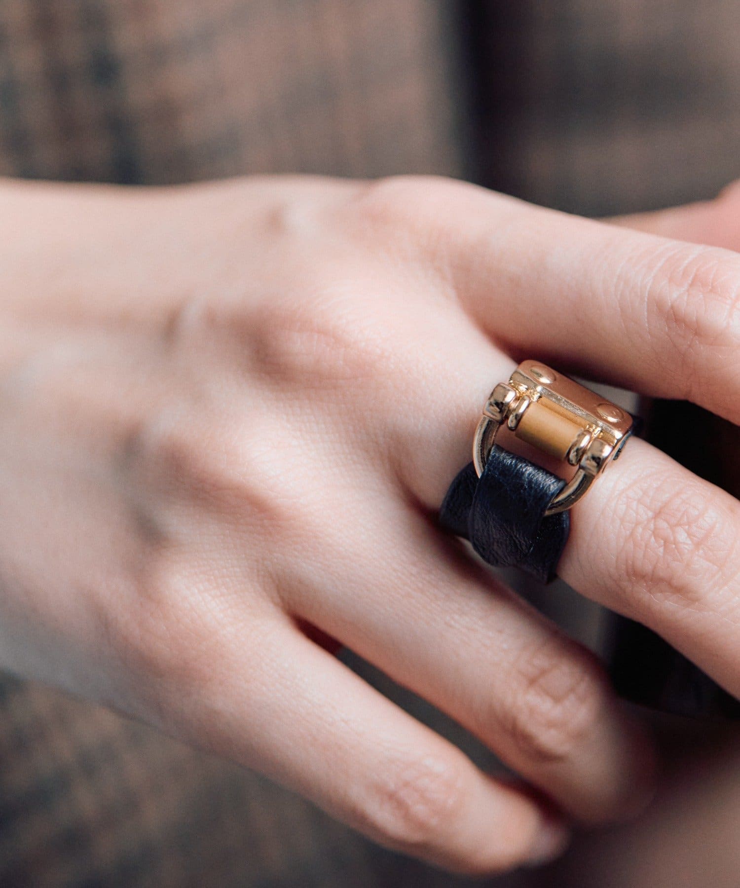 まるで小さなベルトを指に巻いたような、遊び心あふれるリング。