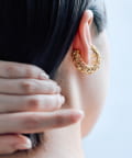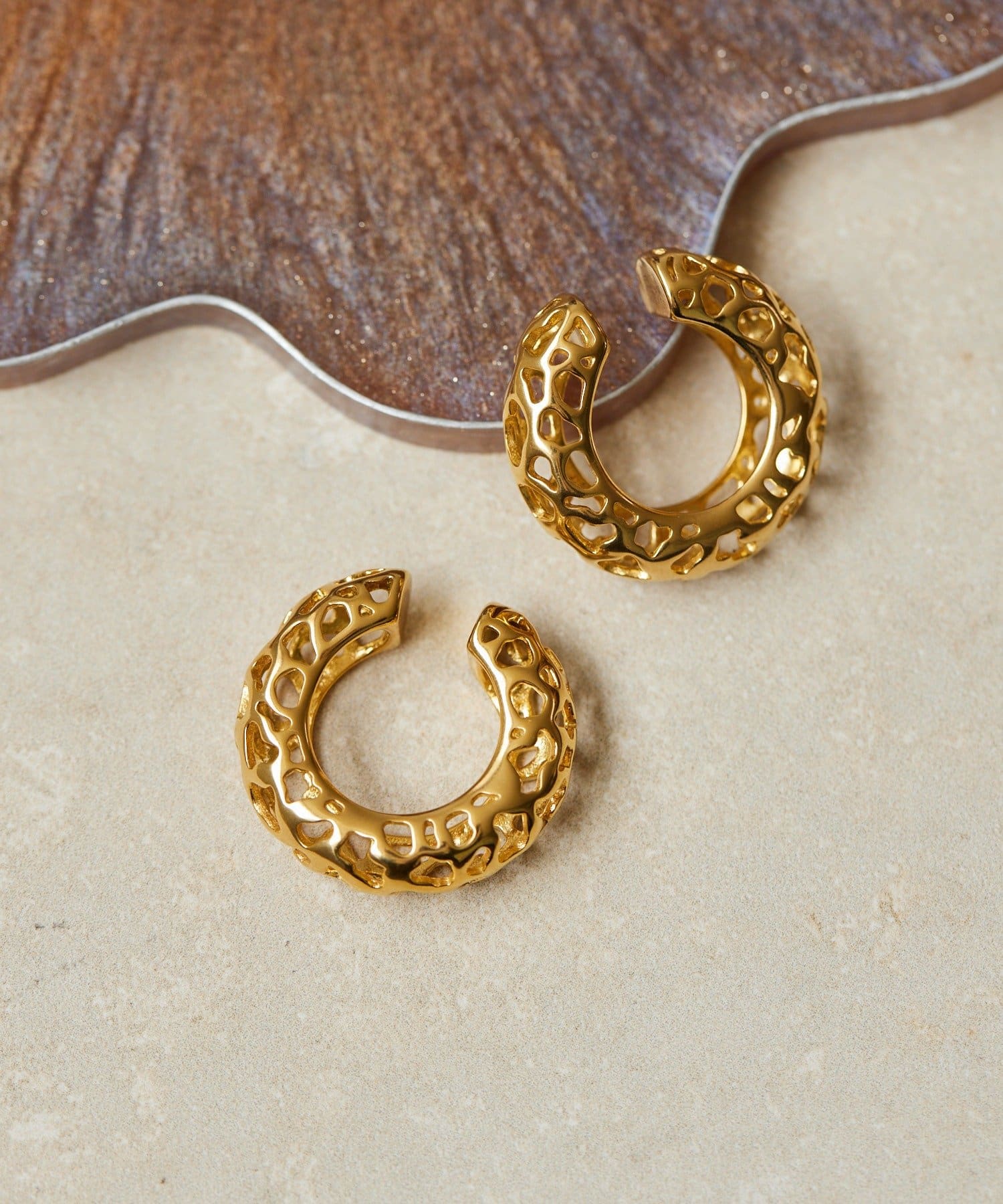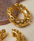 ・動物の柄のような透かし模様が特徴的なペアフープイヤーカフ
