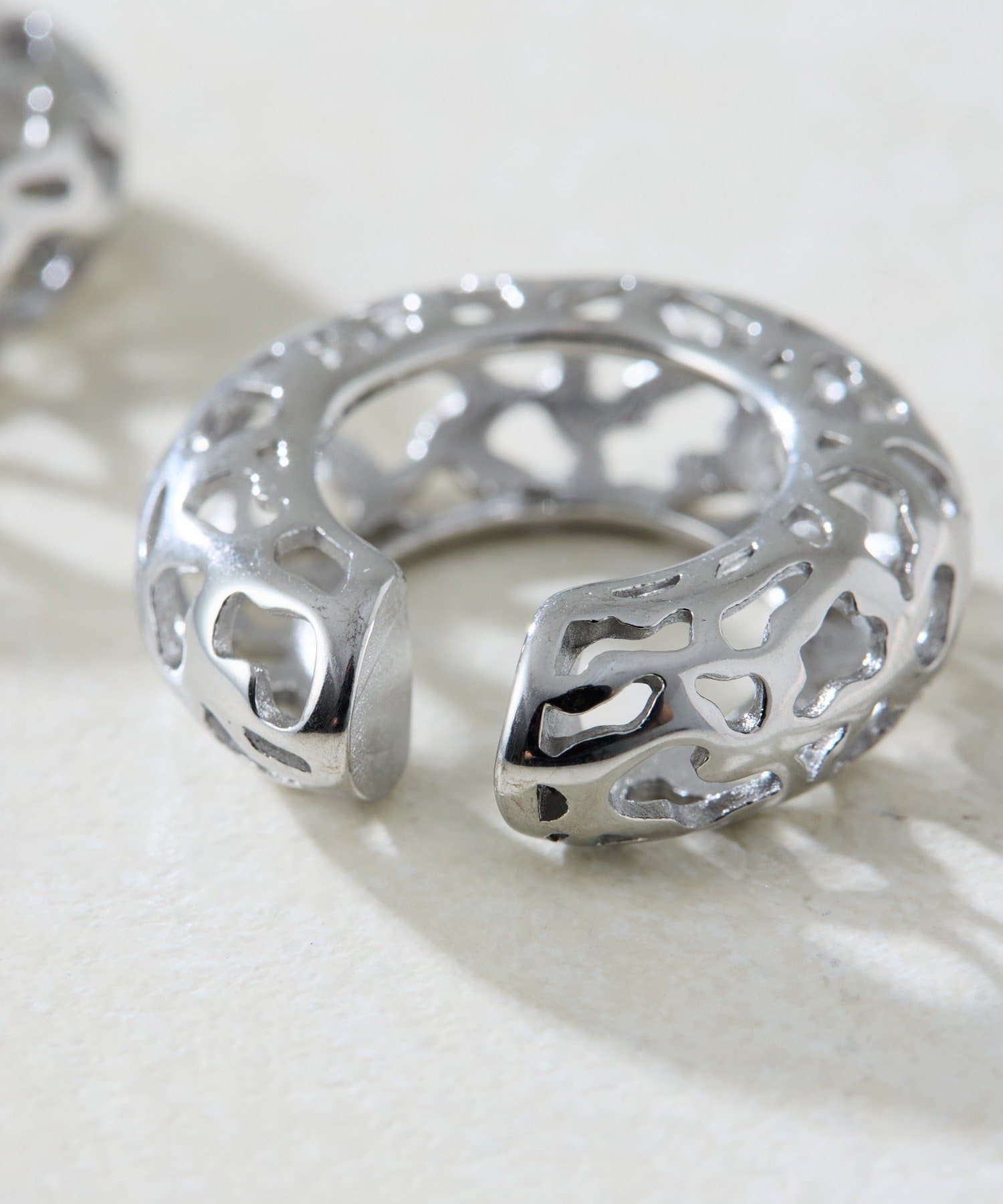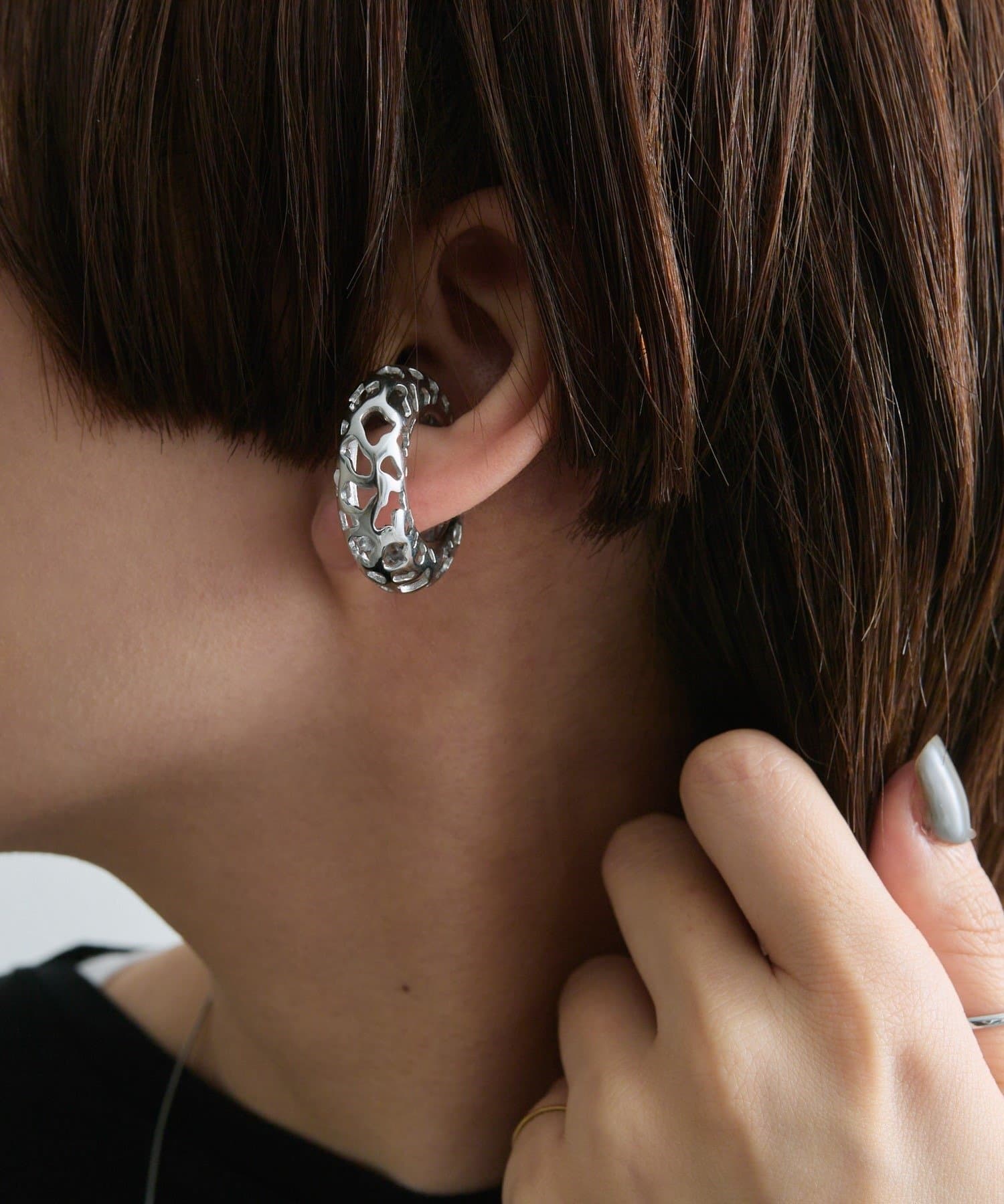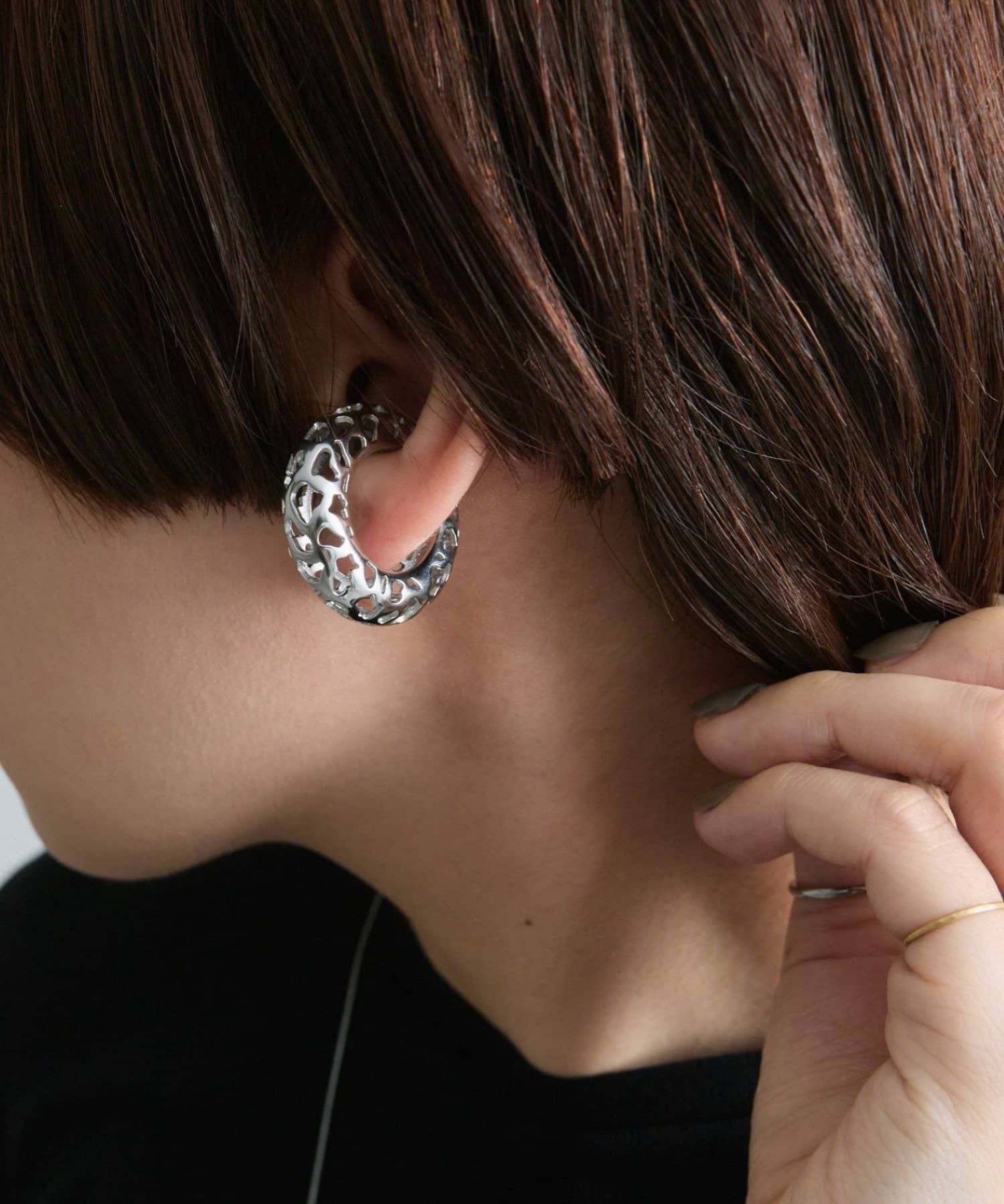 • ear PAPILLONNER(イア パピヨネ) 《金属アレルギー対応/ステンレス》すかし柄BIGフープイヤーカフ