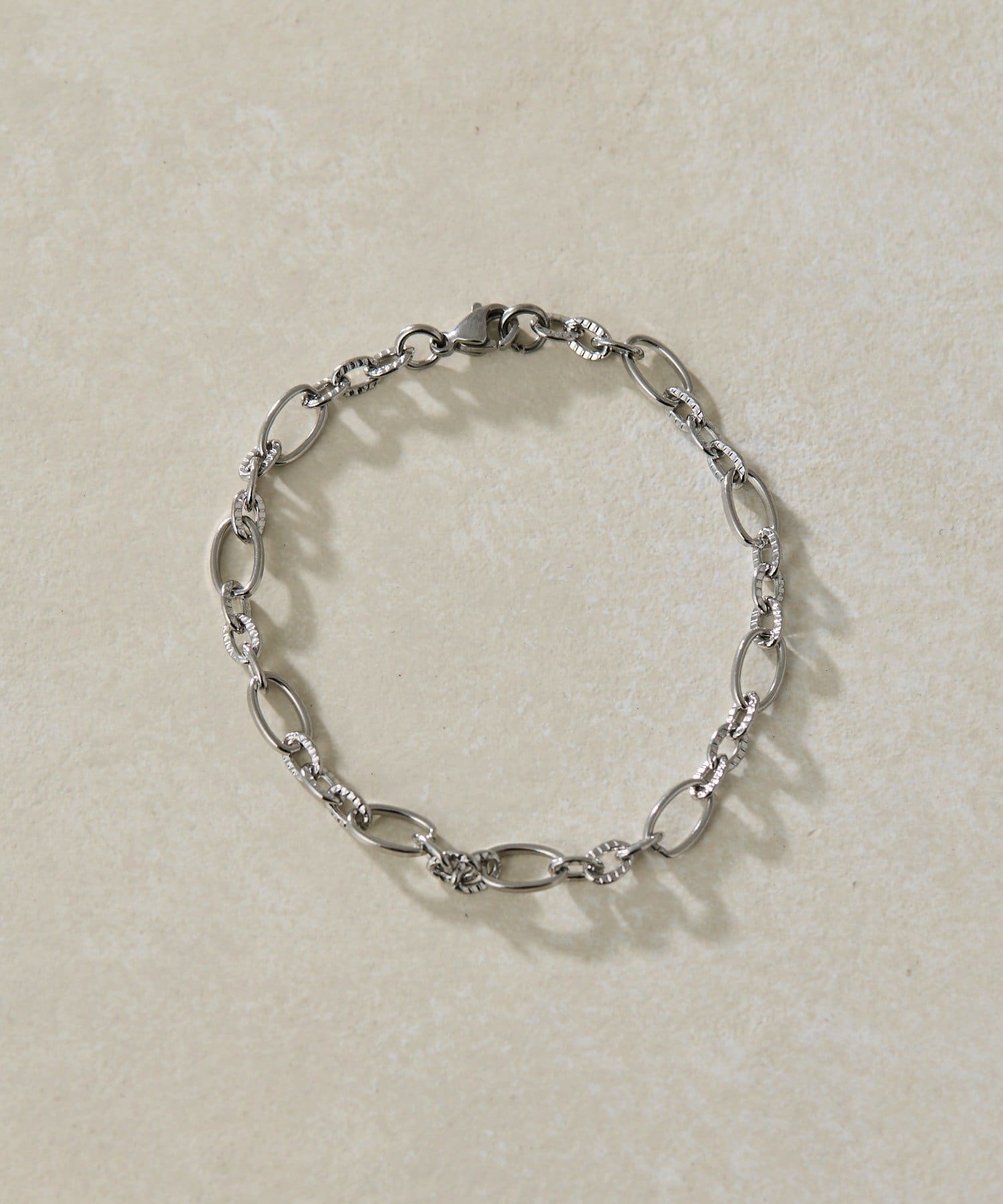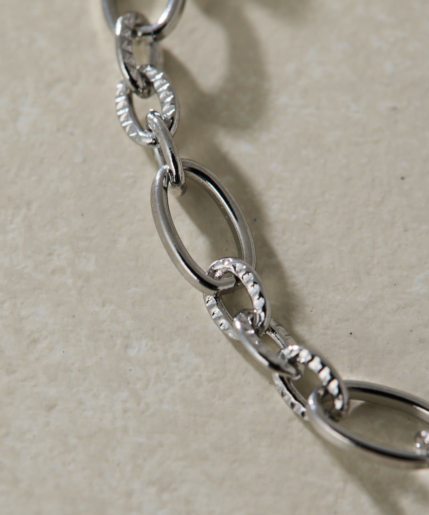 大小のコマが連なるデザインチェーンは、光を反射してキラキラと上品に輝きます。